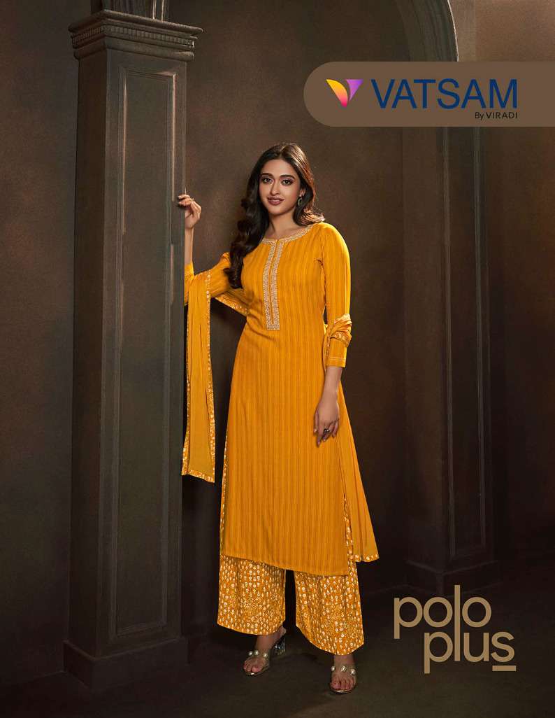 polo plus by vatsam viradi vinay fashion self pattern readymade plazo style salwar kameez