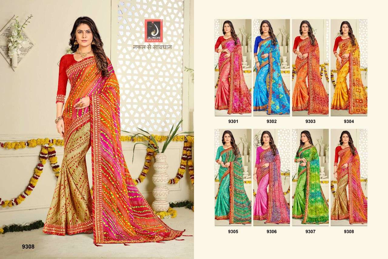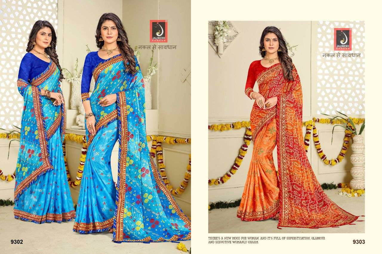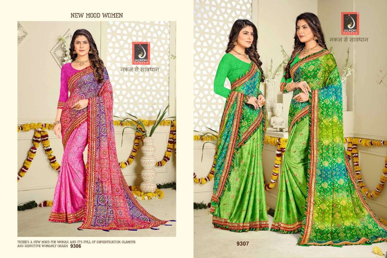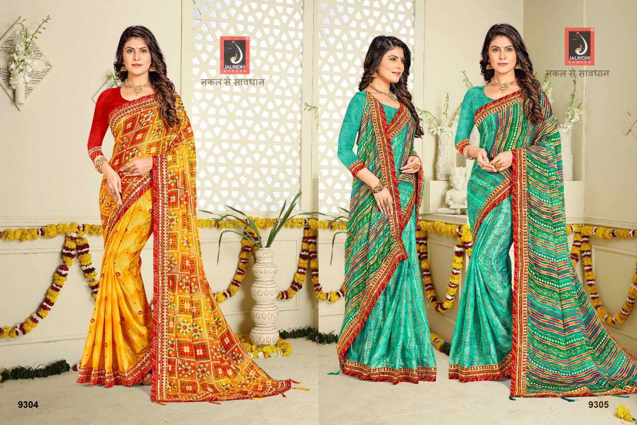 pooja by jalnidhi moss chiffon designer bandhej sarees