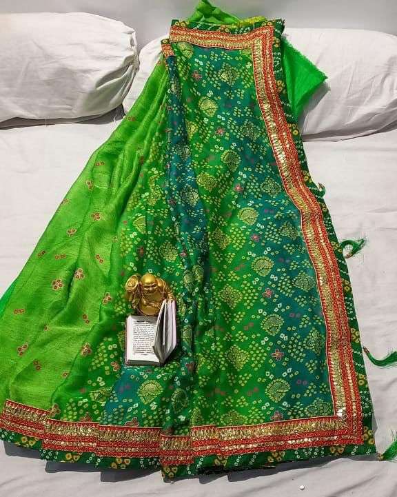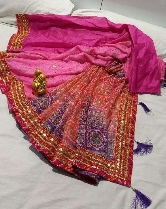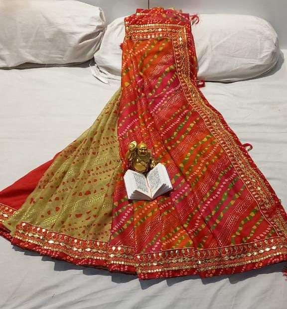 FANCY WITHOUT JOINT HALF-2 BANDHANI PRINT CATALOGUE WITH WORK BORDER AND MILL FOIL NAME - POOJA RATE - 750/- per pcs . |