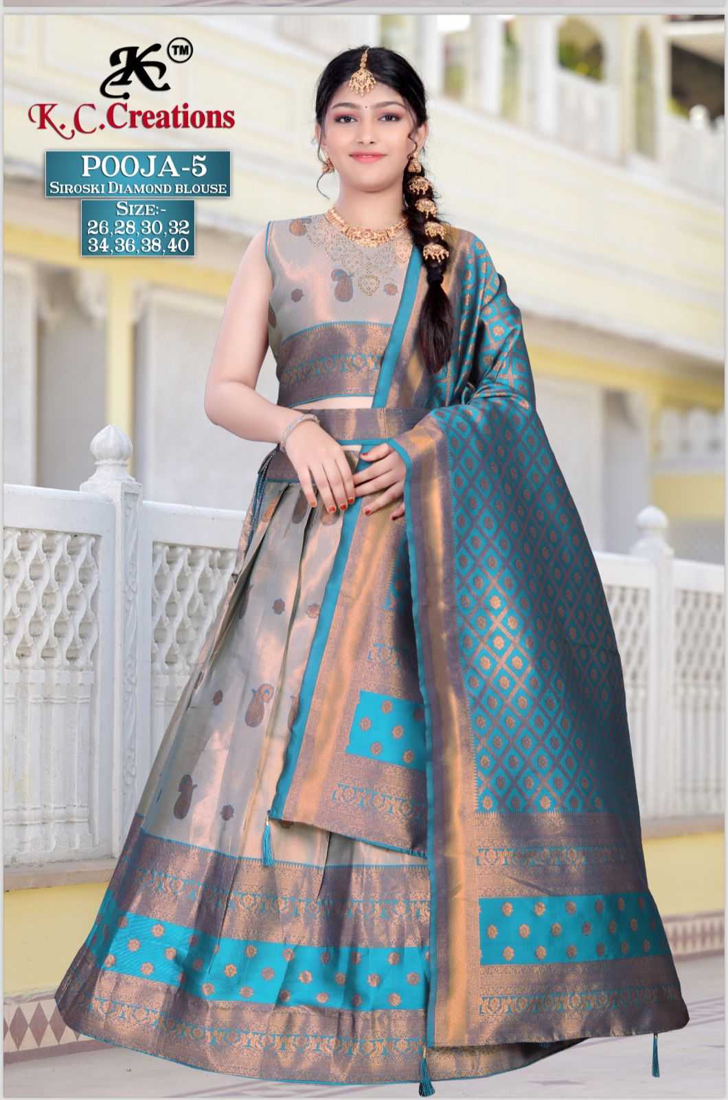 pooja vol 5 by k c creation occasion wear fancy silk kids wear readymade lehenga