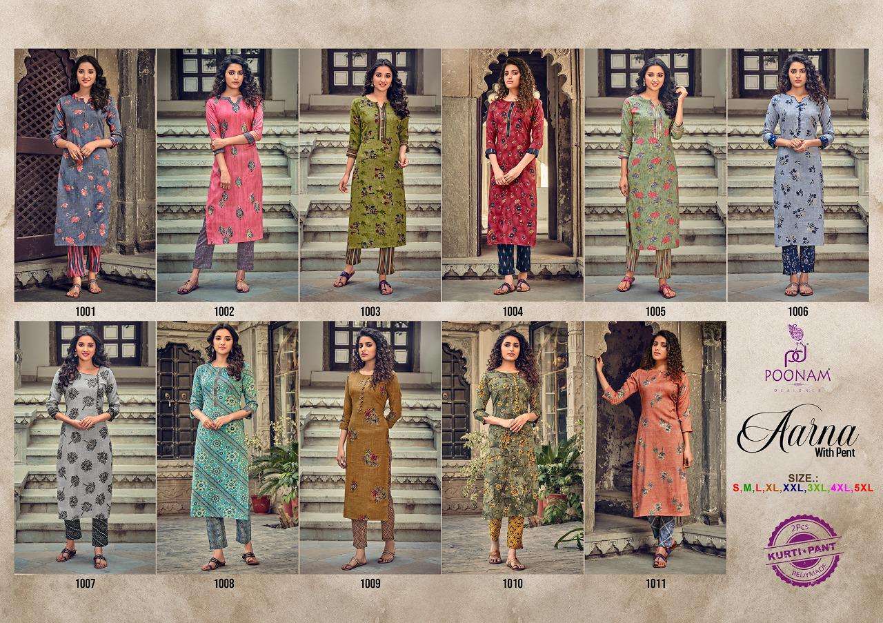 Poonam designer® â (Smit creation) We are louching Our New Kurti with Pant Catlog.                  Aarna       (With pant)                 Kurti - Pure Rayon slub       with capsul print.                Pant - Pure Rayon slub         With capsul print.                              Size           S,M,L,Xl, xxl, 3xl, 4xl,5xl Concept :- Kurti with pant.                 599/- Premium quality product |