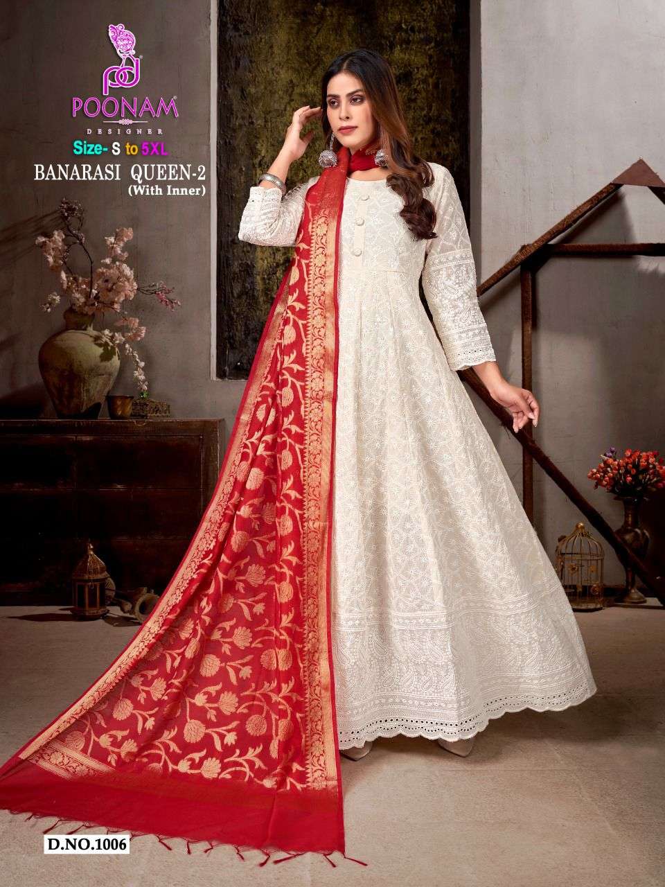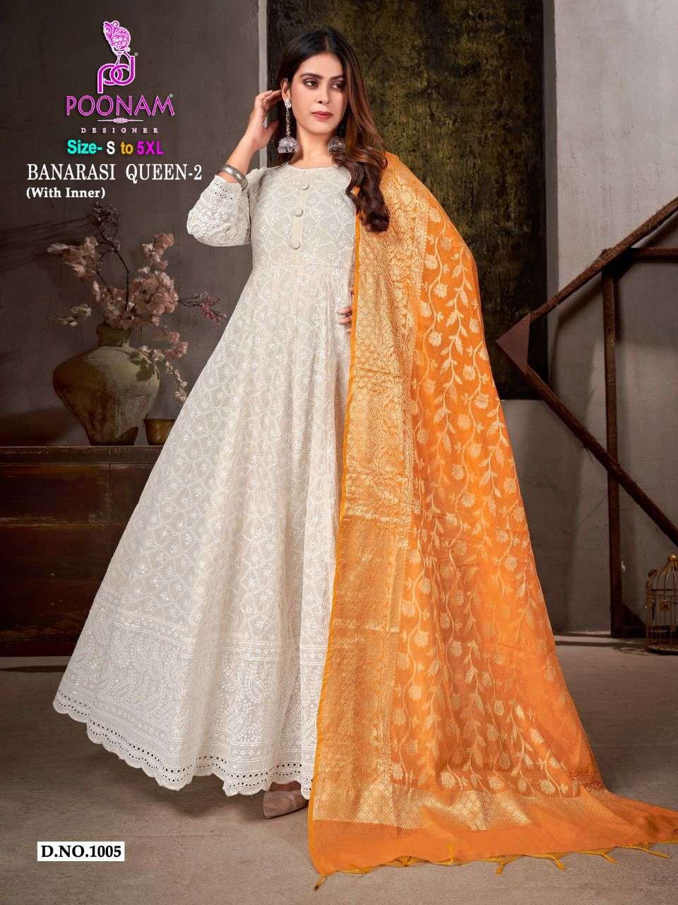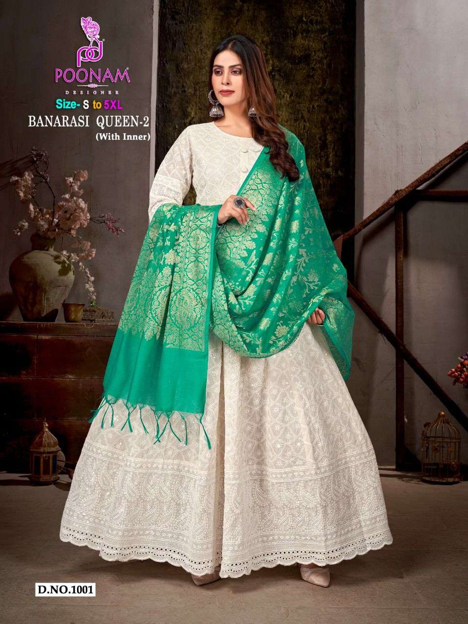 poonam banarasi queen vol 2 chikan work white gown with dupatta exports best shipping rate