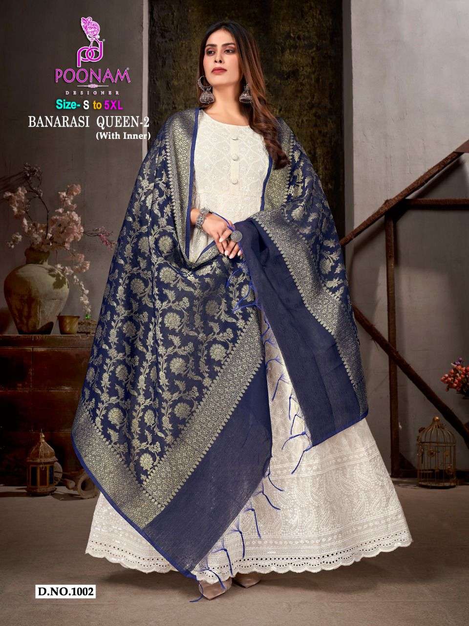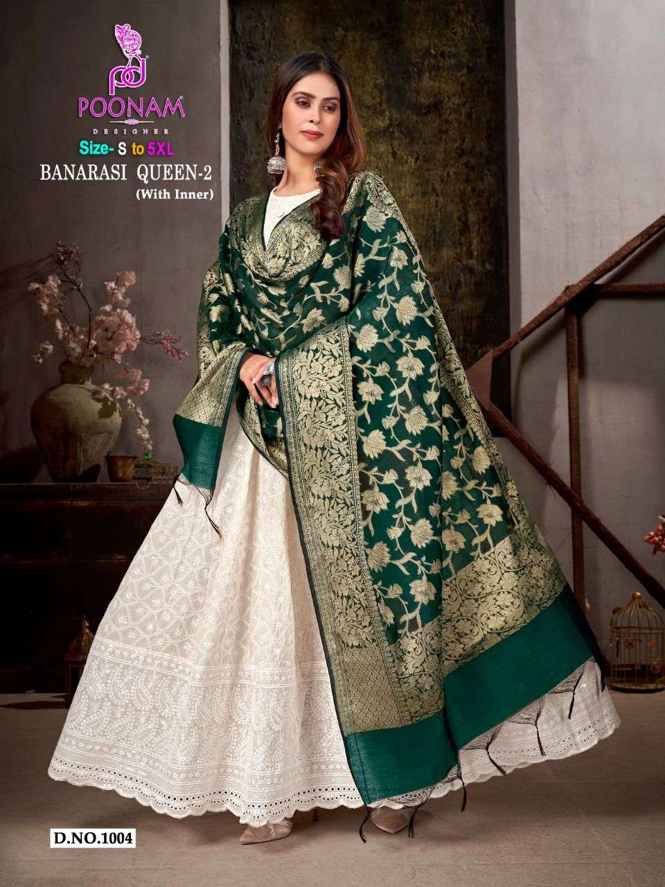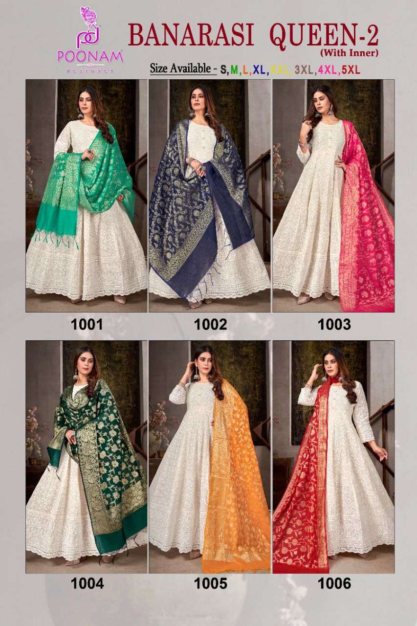 poonam banarasi queen vol 2 chikan work white gown with dupatta exports best shipping rate