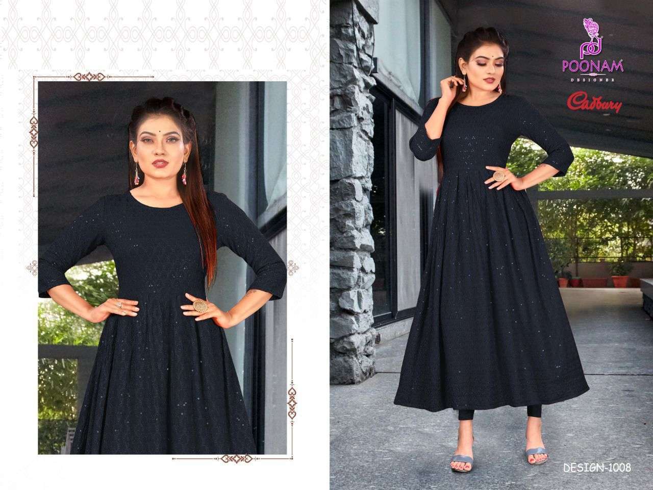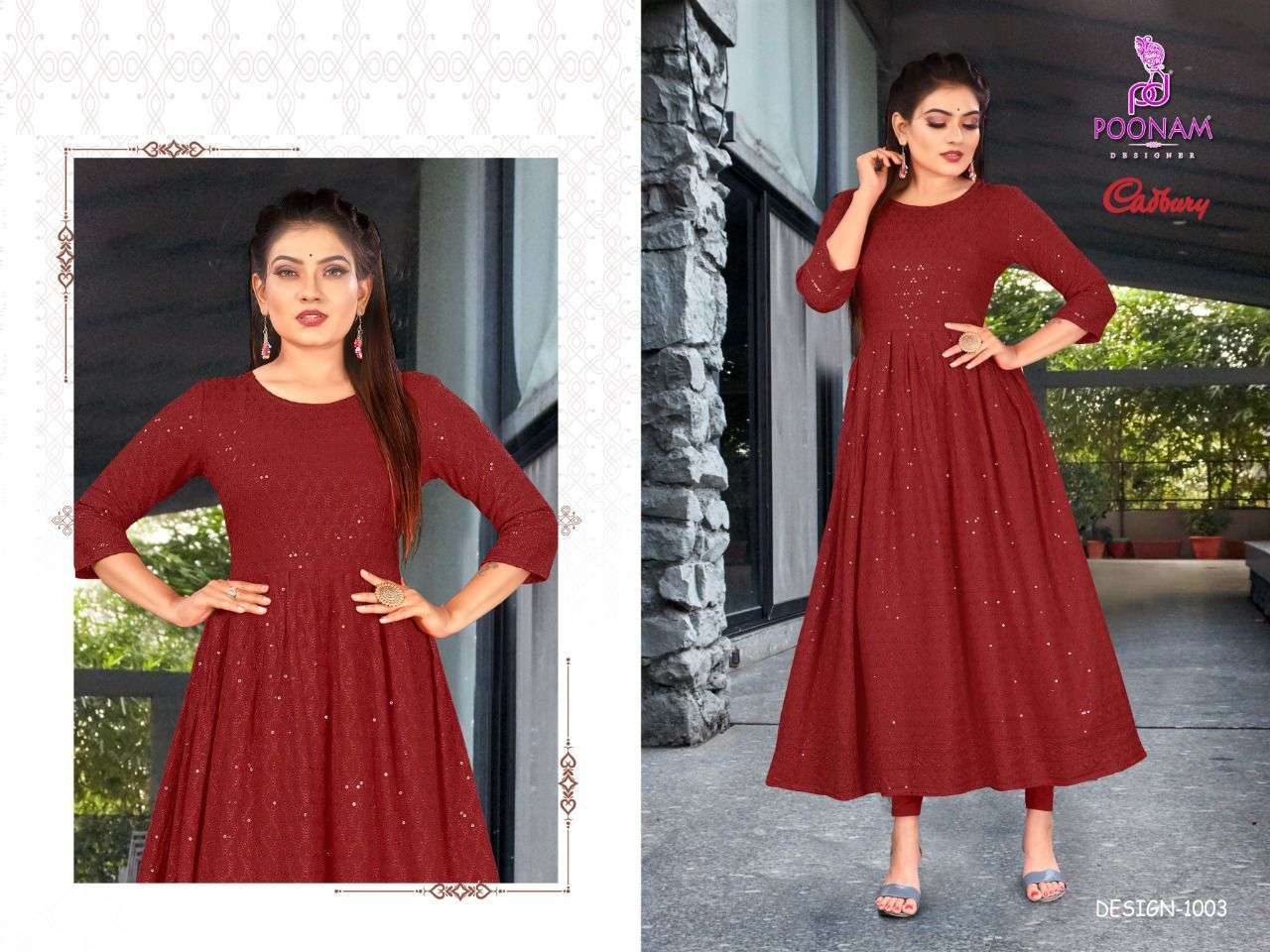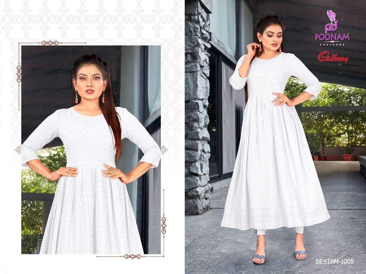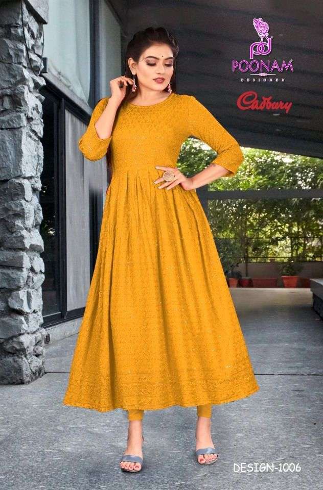 poonam cadbury rayon lucknowi work designer gown collection