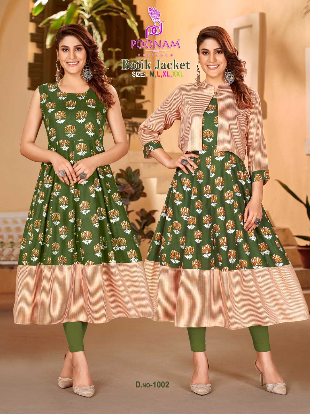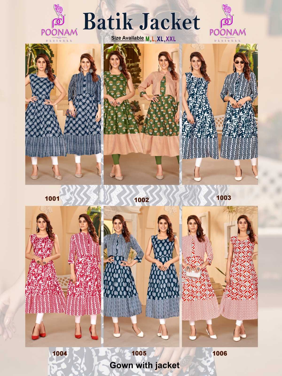 poonam designer launch batik jacket beautiful stitch long rayon gown with jacket