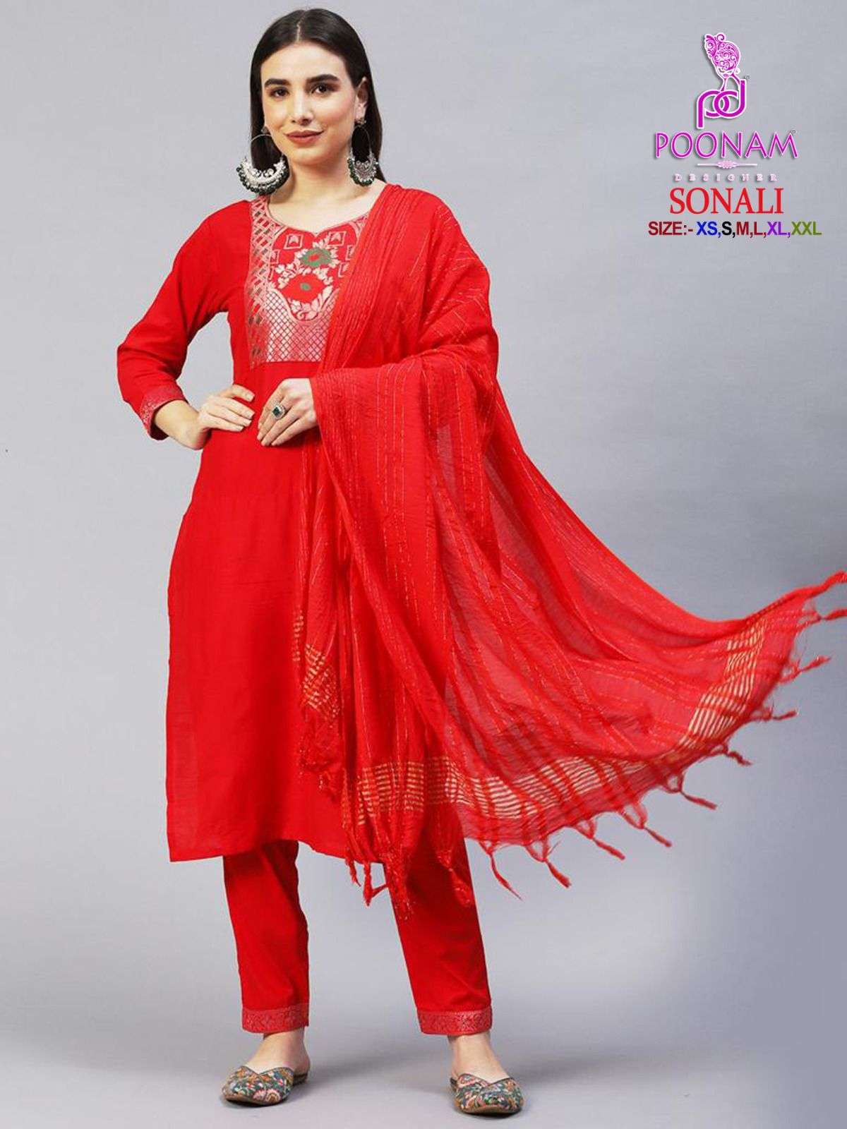 poonam designer present sonali minakari banarasi jacquard kurti with pant and dupatta
