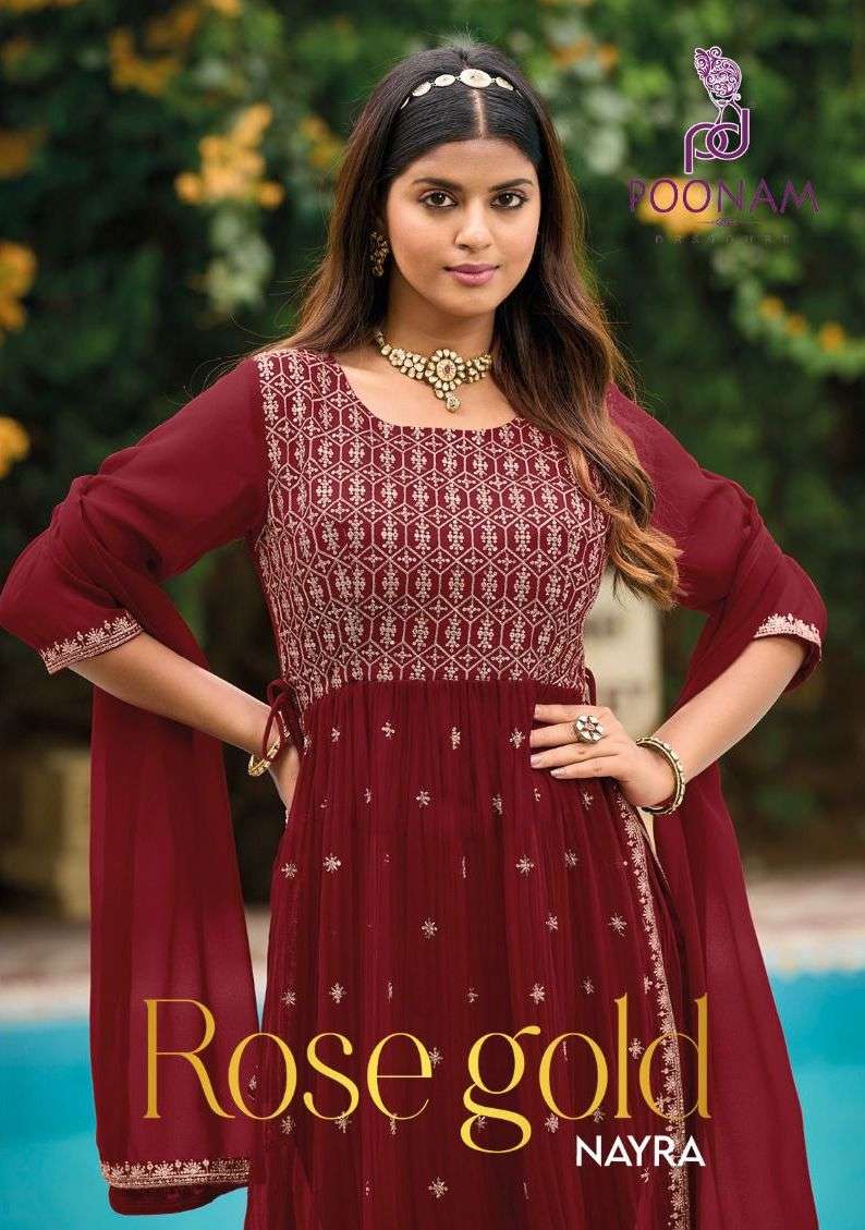 poonam designer rose gold fancy nayra cut kurti with sharara and dupatta