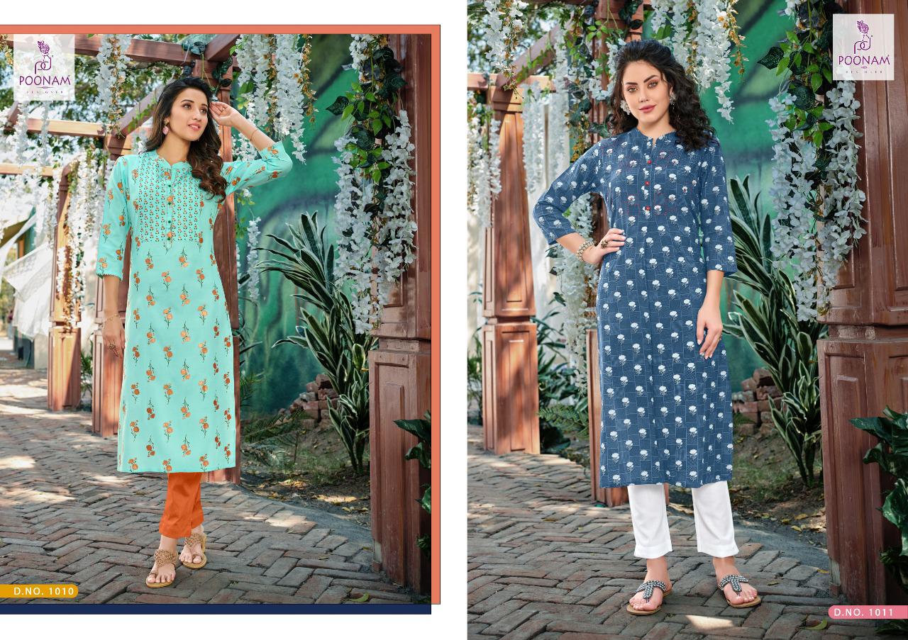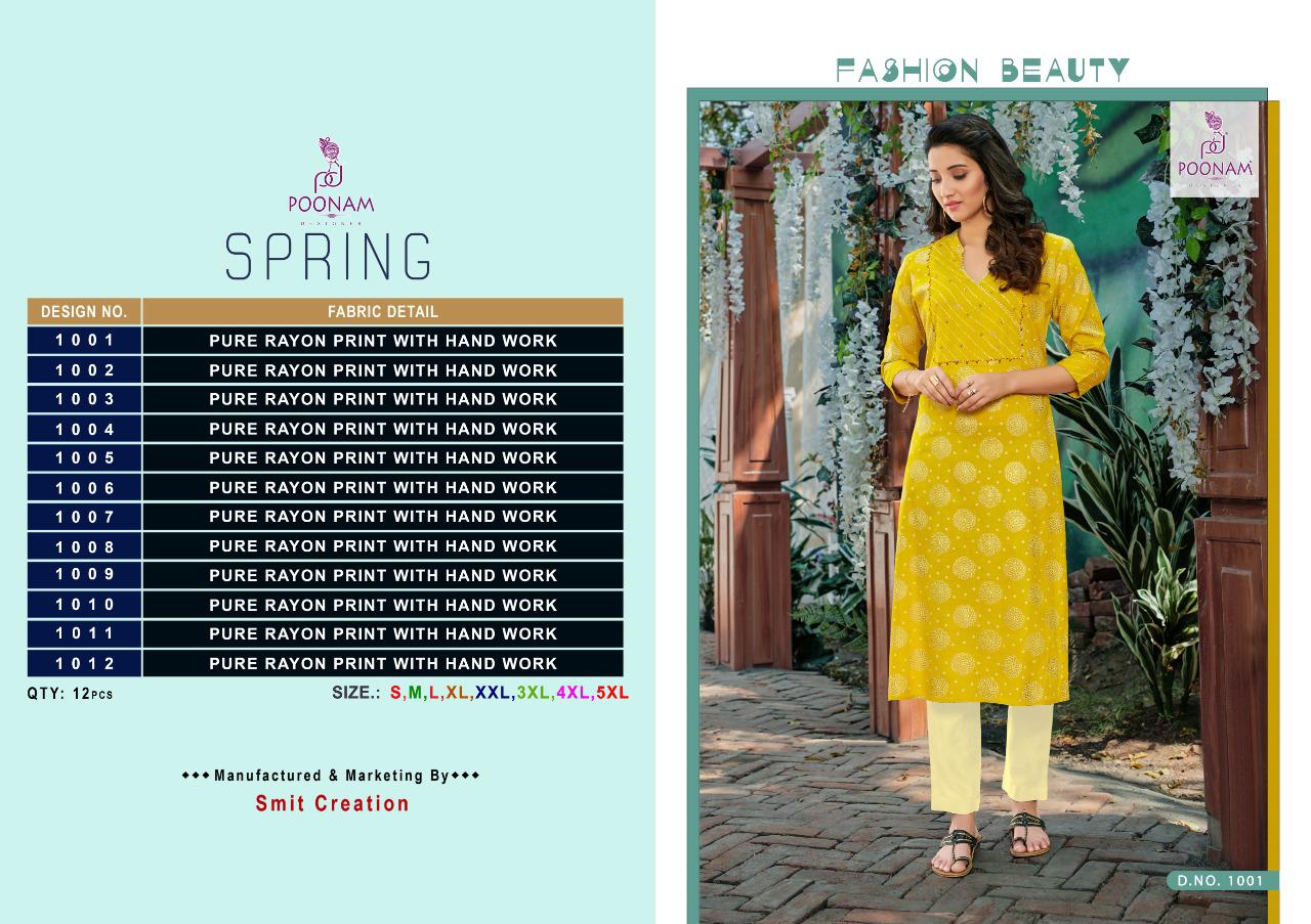 Poonam Designer Spring Rayon Print With Handwork Casual Wear Charming Kurti
