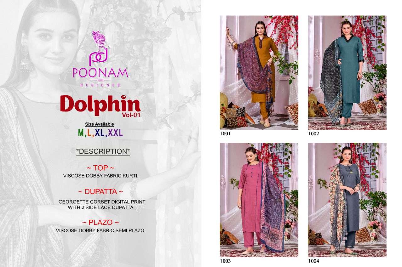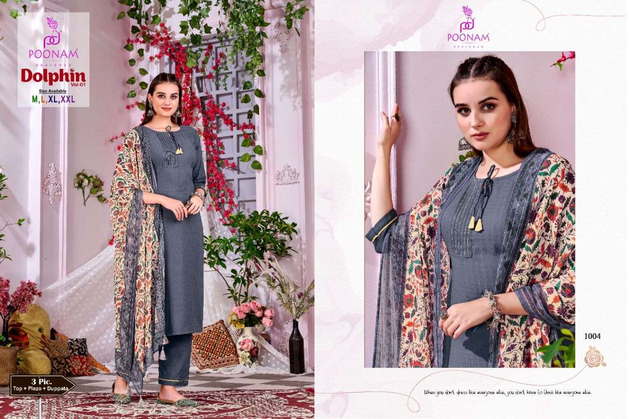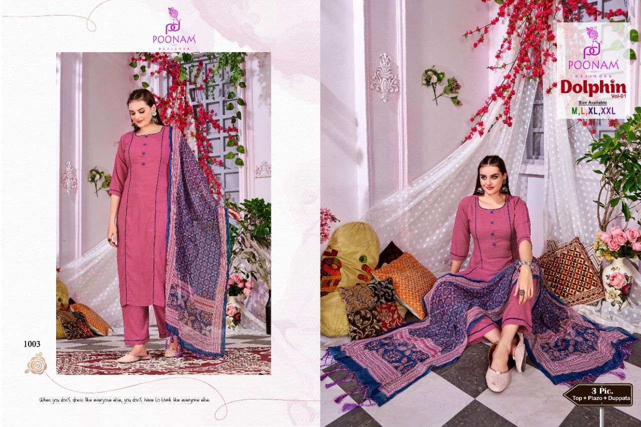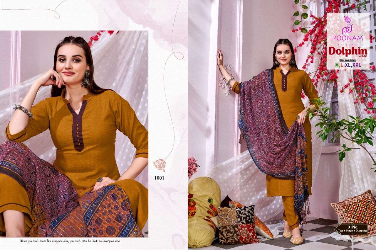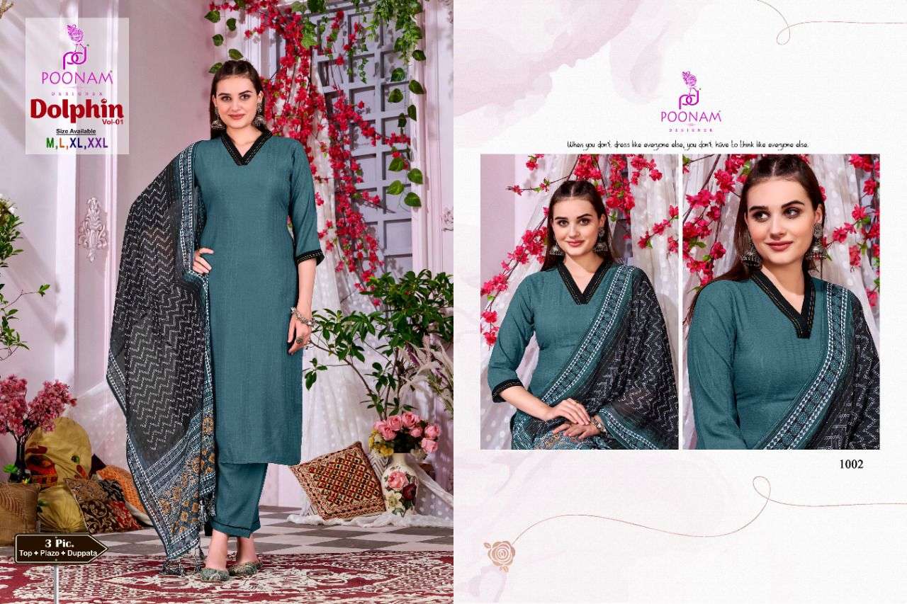 poonam dolphin vol 1 kurti plazzo with dupatta set at best rate