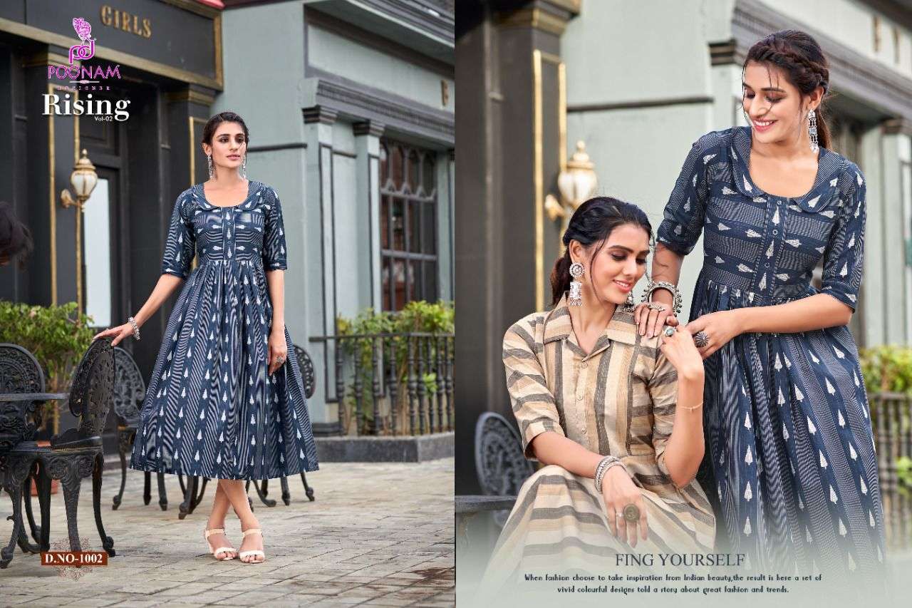 poonam rising vol 2 cotton flair style gown kurti collection
