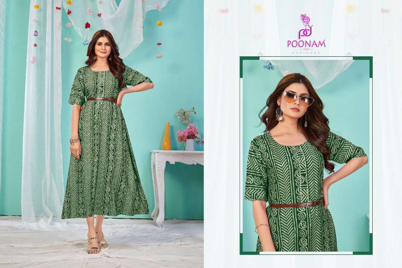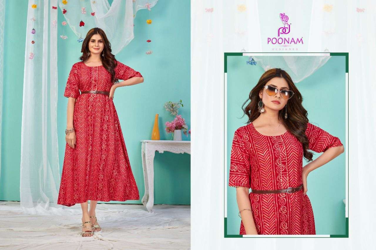poonam sugar bawl rayon bandhani gown collection