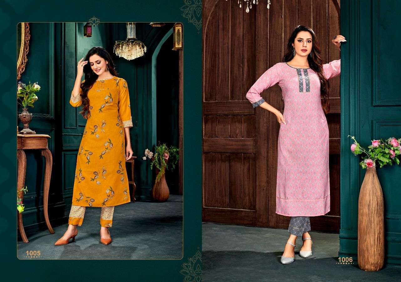 poonam tadap rayon kurti with pant set wholesaler