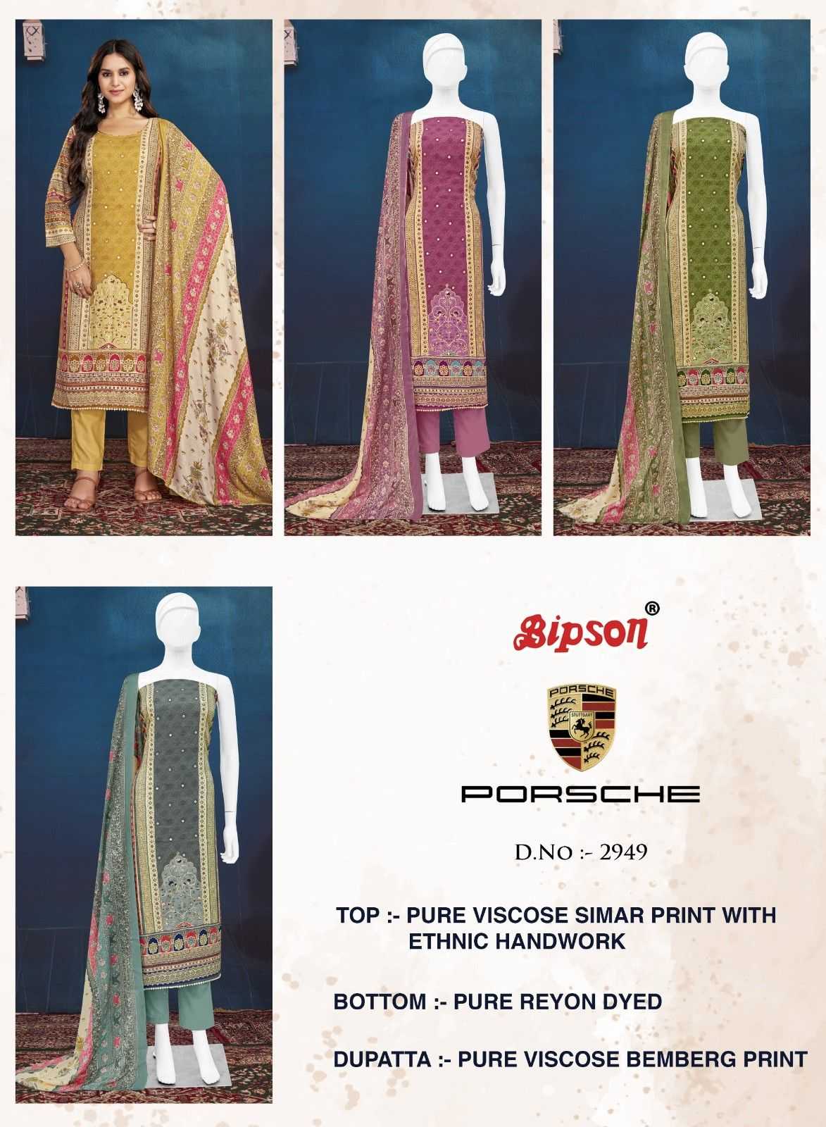 Bipson Fashion Presents Latest Collection Launched on 09-11-2024. Presenting Beautiful collection of 4 PCS with Unstitched .