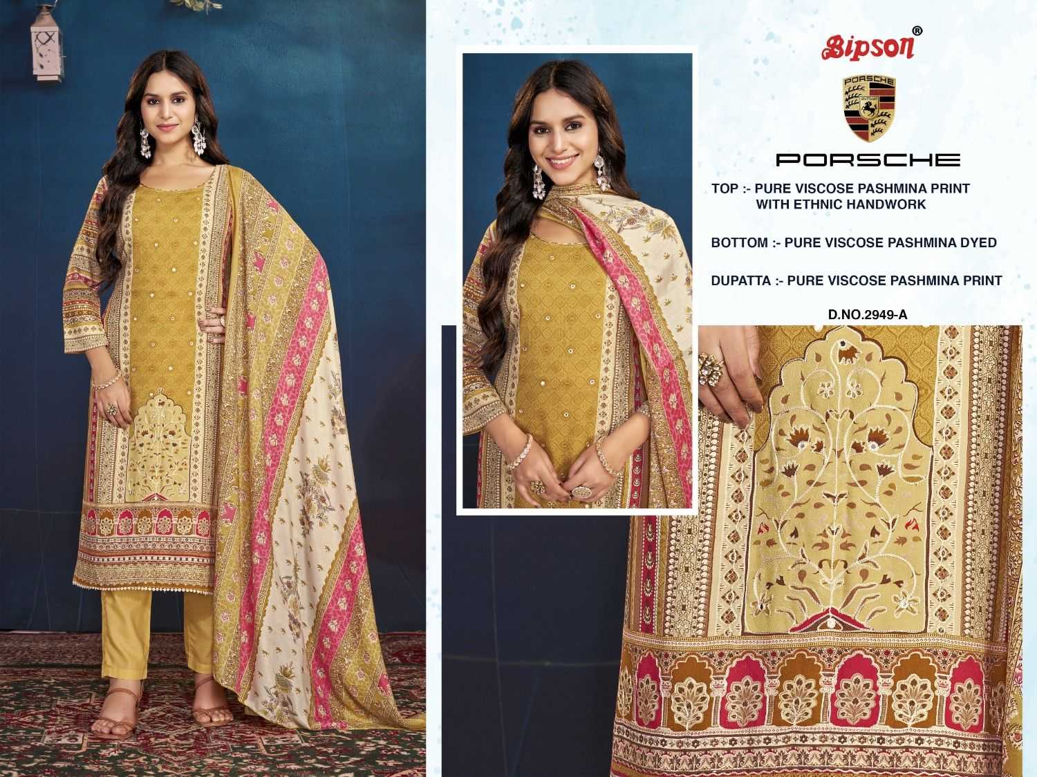 BIPSON PRINTS PVT LTD TOP :- Pure Viscose Pashmina Print With Ethnic Handwork . @ 875 /- |