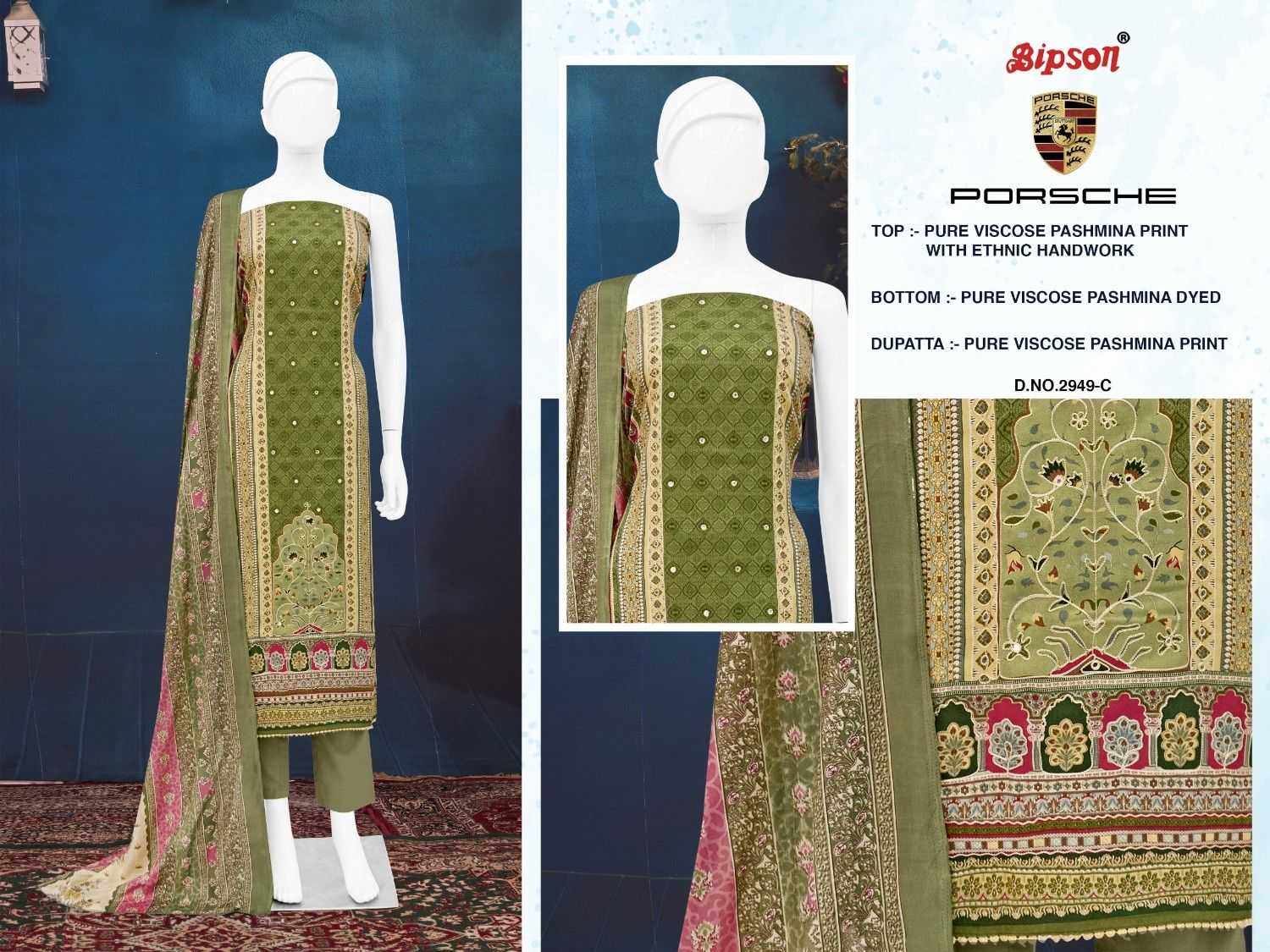 porsche 2949 by bipson prints viscose pashmina 3pcs dress