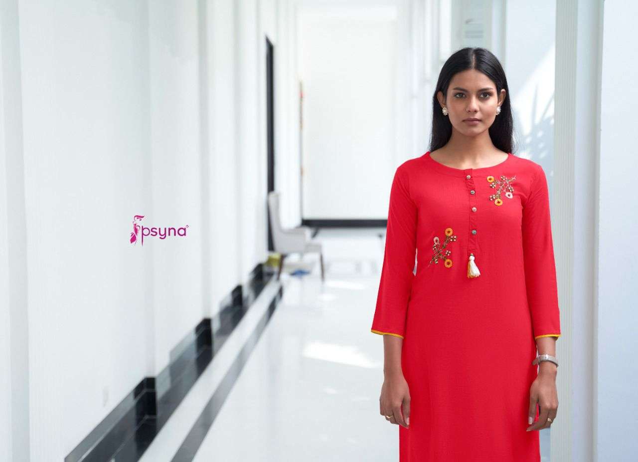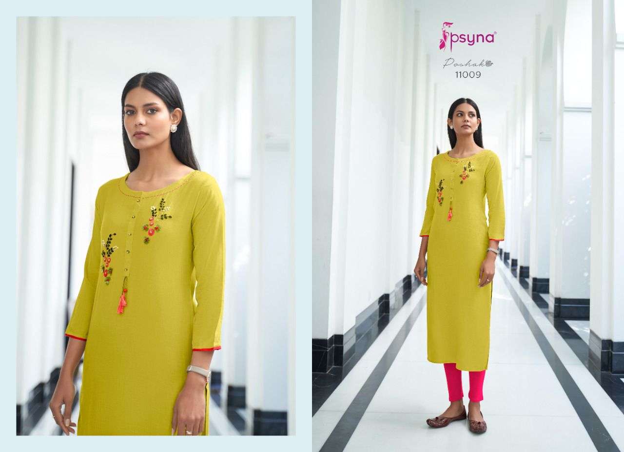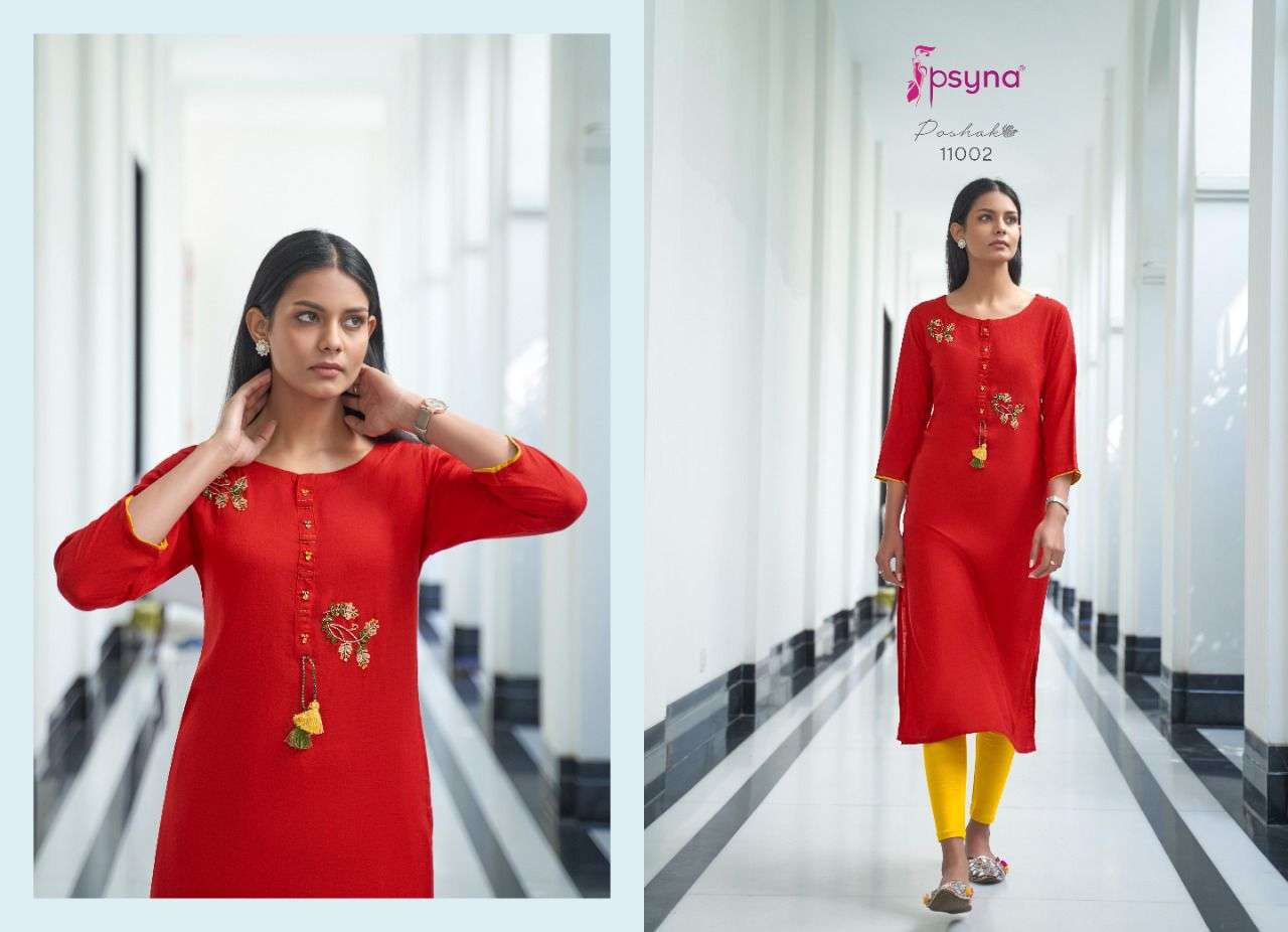 poshak vol 11 by psyna rayon slub handwork fancy kurtis