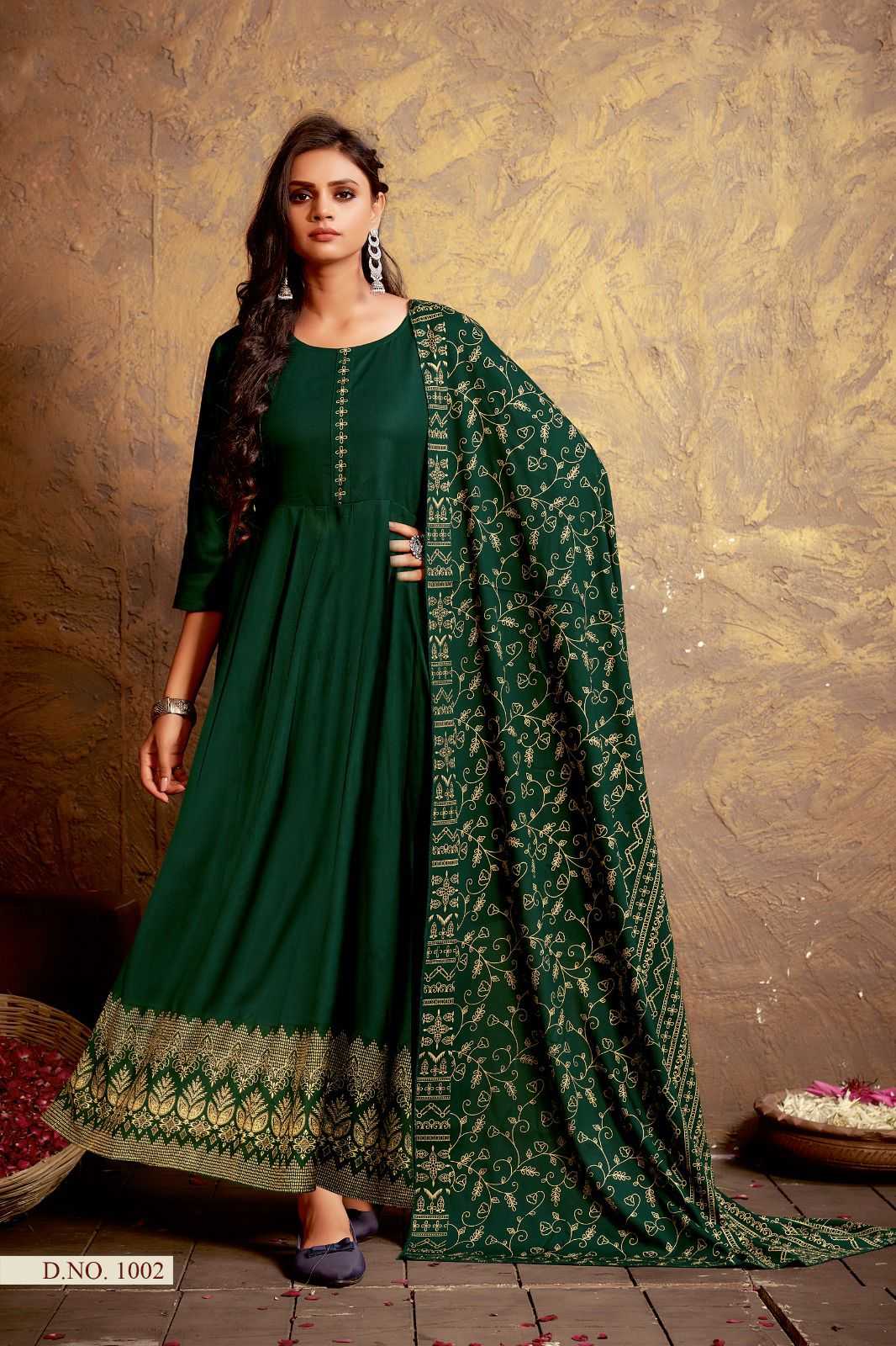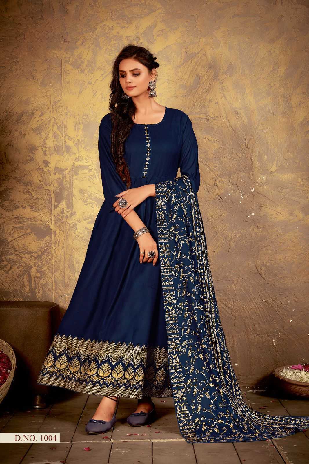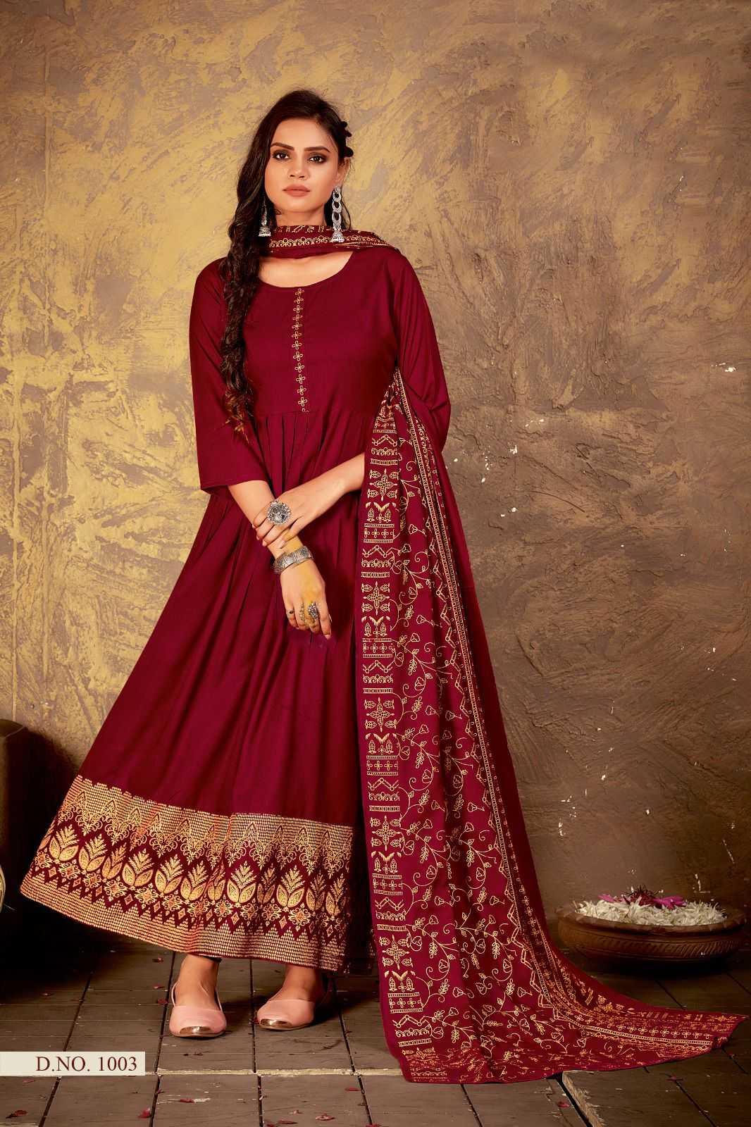 Pr 1001-1006 fullstitch traditional long kurti with dupatta set