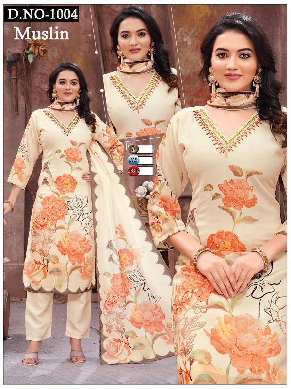 pr 1004 & 1006 heavy handwork stylish combo muslin readymade 3pcs dress