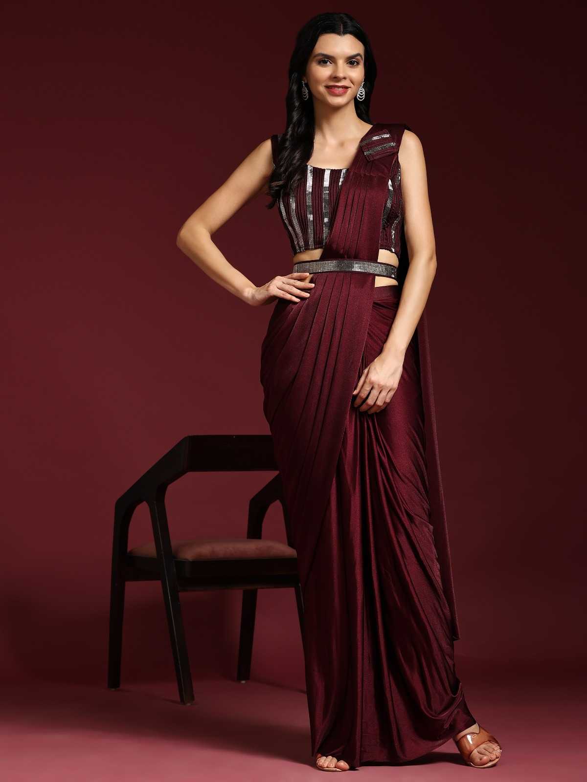 READYMADE SAREES DESIGN NO 101106 SAREE IMPORTED FABRIC AND BELT SIZE 36(READY) 6 COLOURS AVAILABLE RATE 1895+5%(GST) |