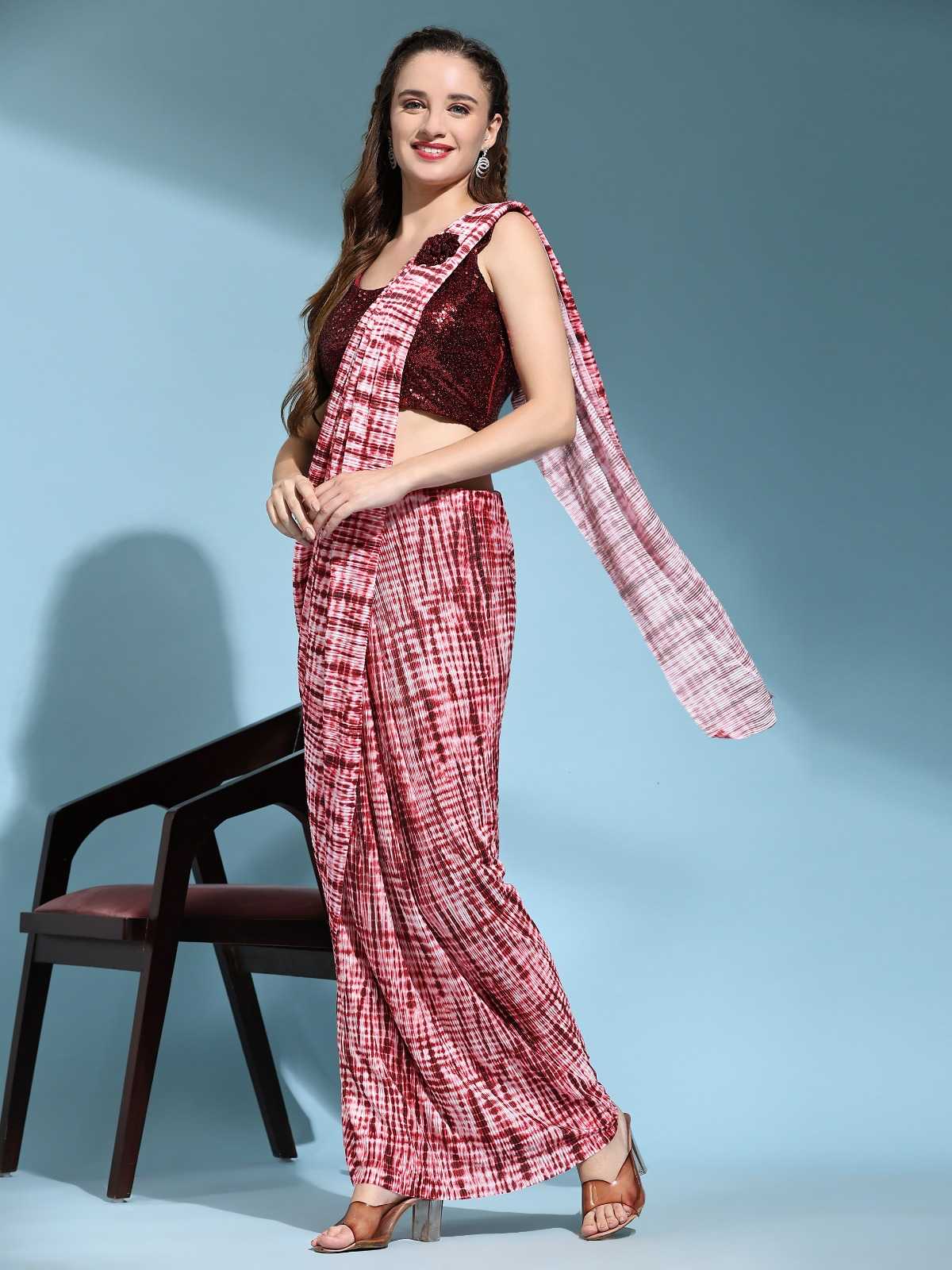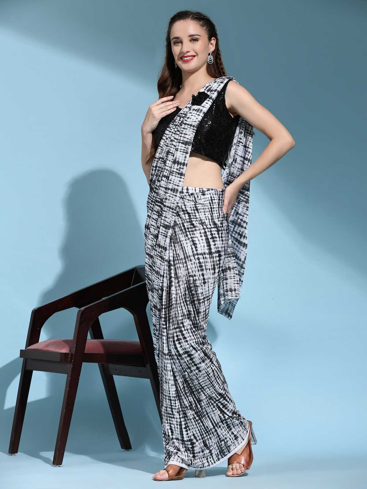 READY TO WEAR SAREE DESIGN NO 101107 BLOUSE SEQUIN WORK SAREE IMPORTED CRUSH FABRIC SIZE 36(READY) 4 COLOURS AVAILBLE RATE 1325+5% (GST) |