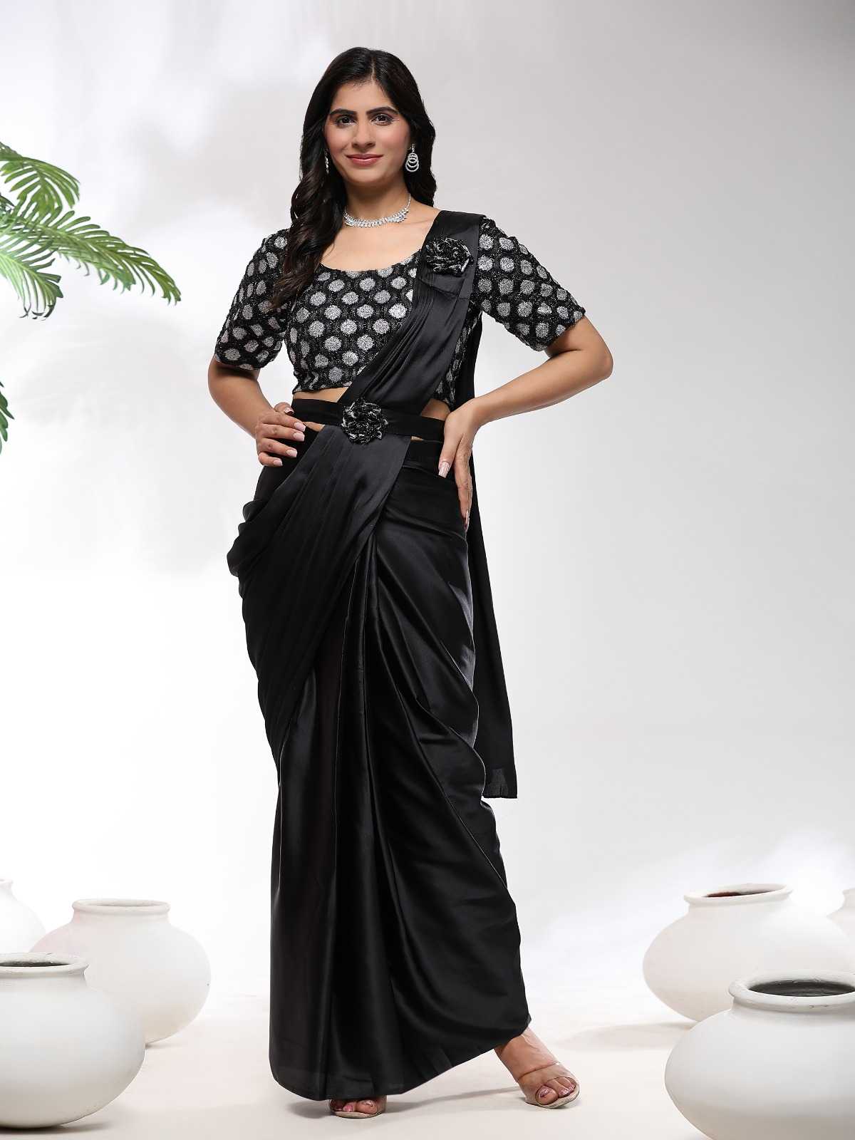 pr 101202 imported satin occasion wear stylish ready to wear sarees exports