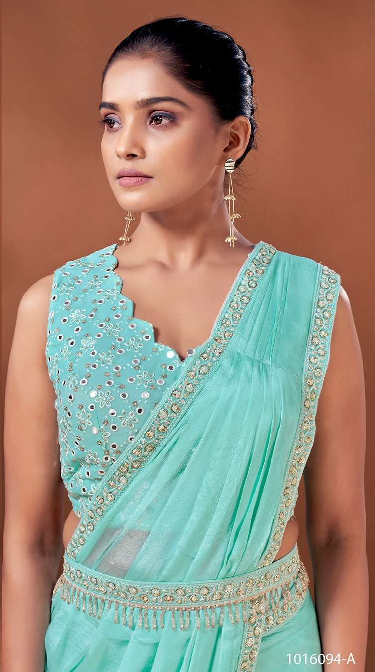 pr 1016094 ready to wear fancy saree with embroidery work designer blouse and amazing belt