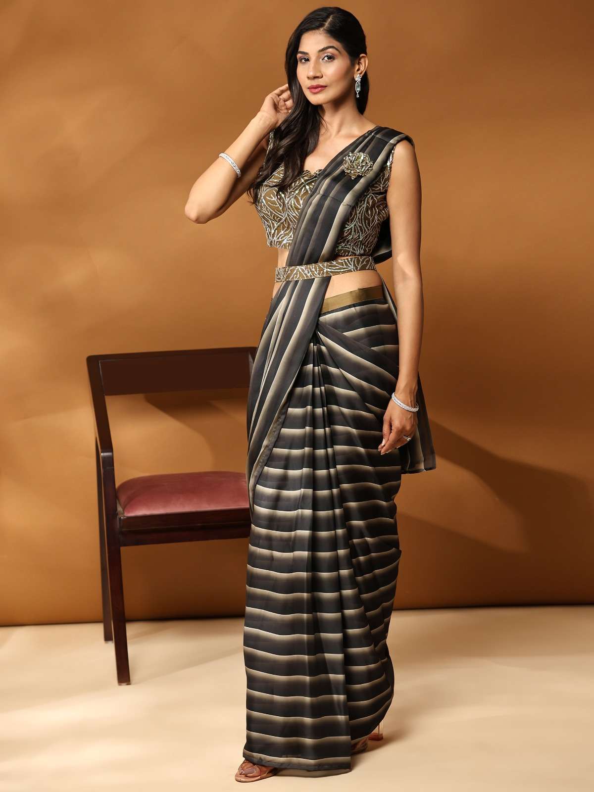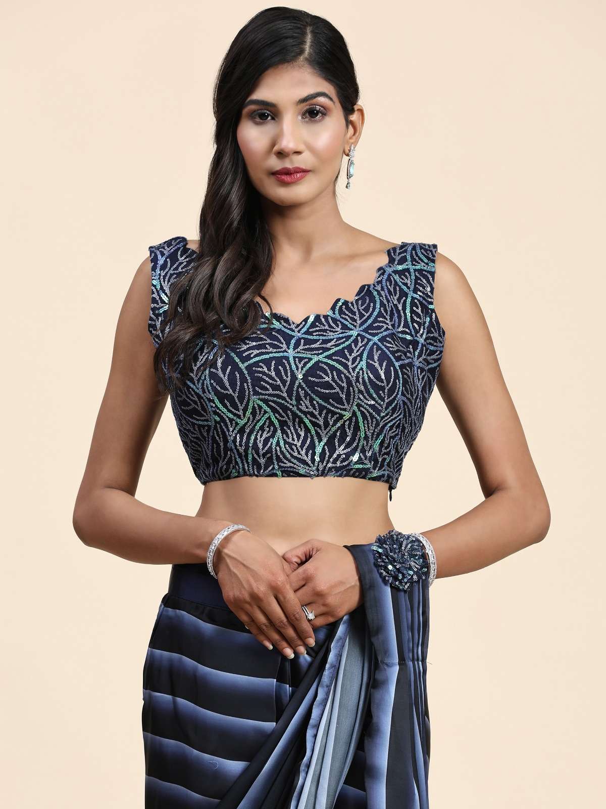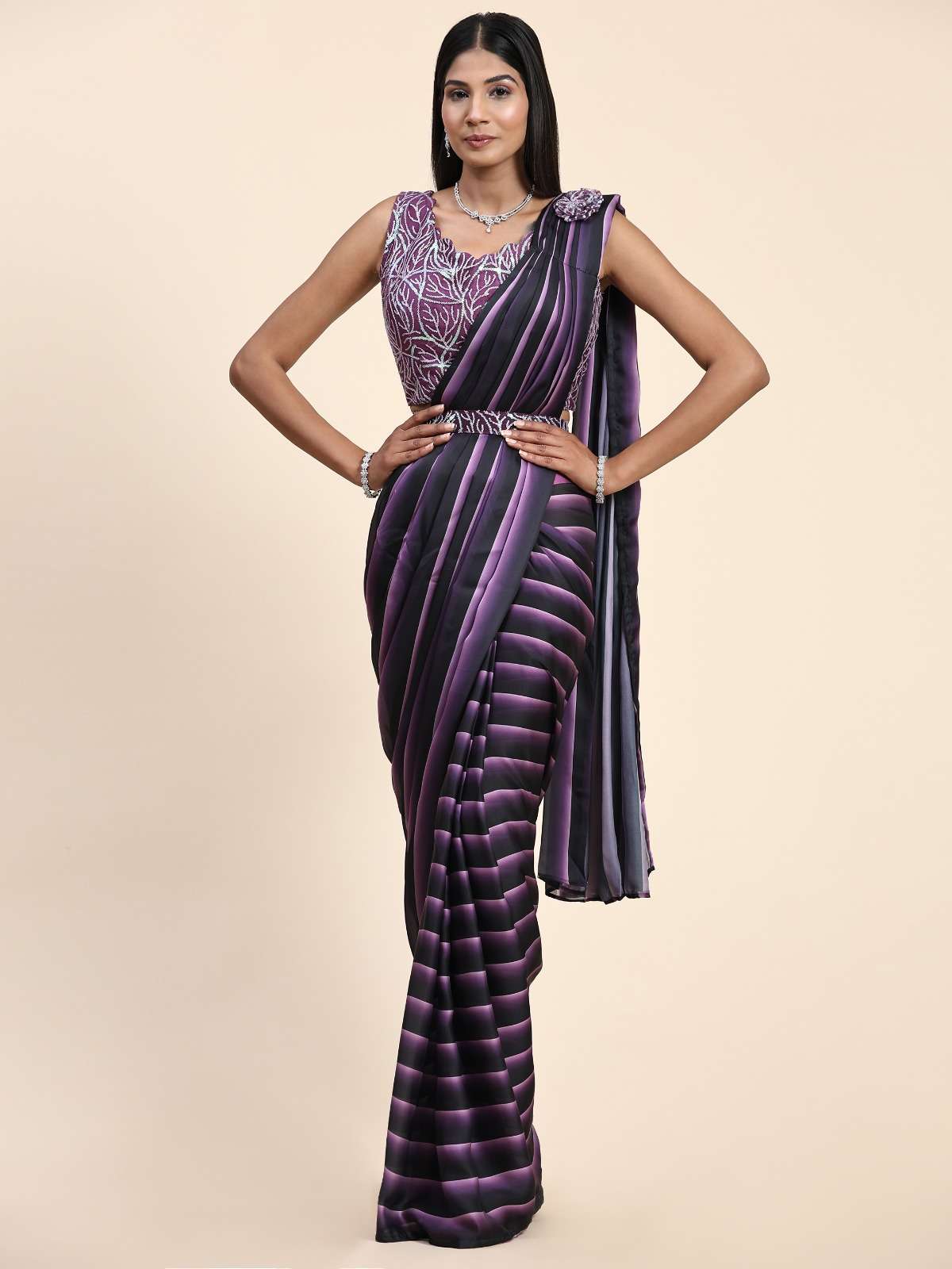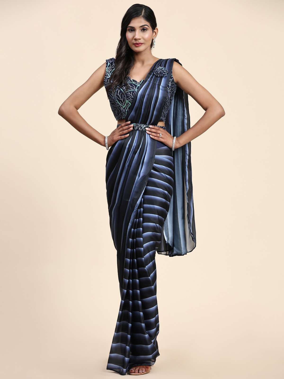 NEW DESIGN ADDED READY TO WEAR SAREE Design No. 1016351 FABRIC - SATIN GEORGETTE BLOUSE -ELEGANT SEQUIN EMBROIDERED DESIGNER BLOUSE SAREE - SATIN GEORGETTE FABRIC WITH PRINT AND SEQUIN EMBROIDERED BELT