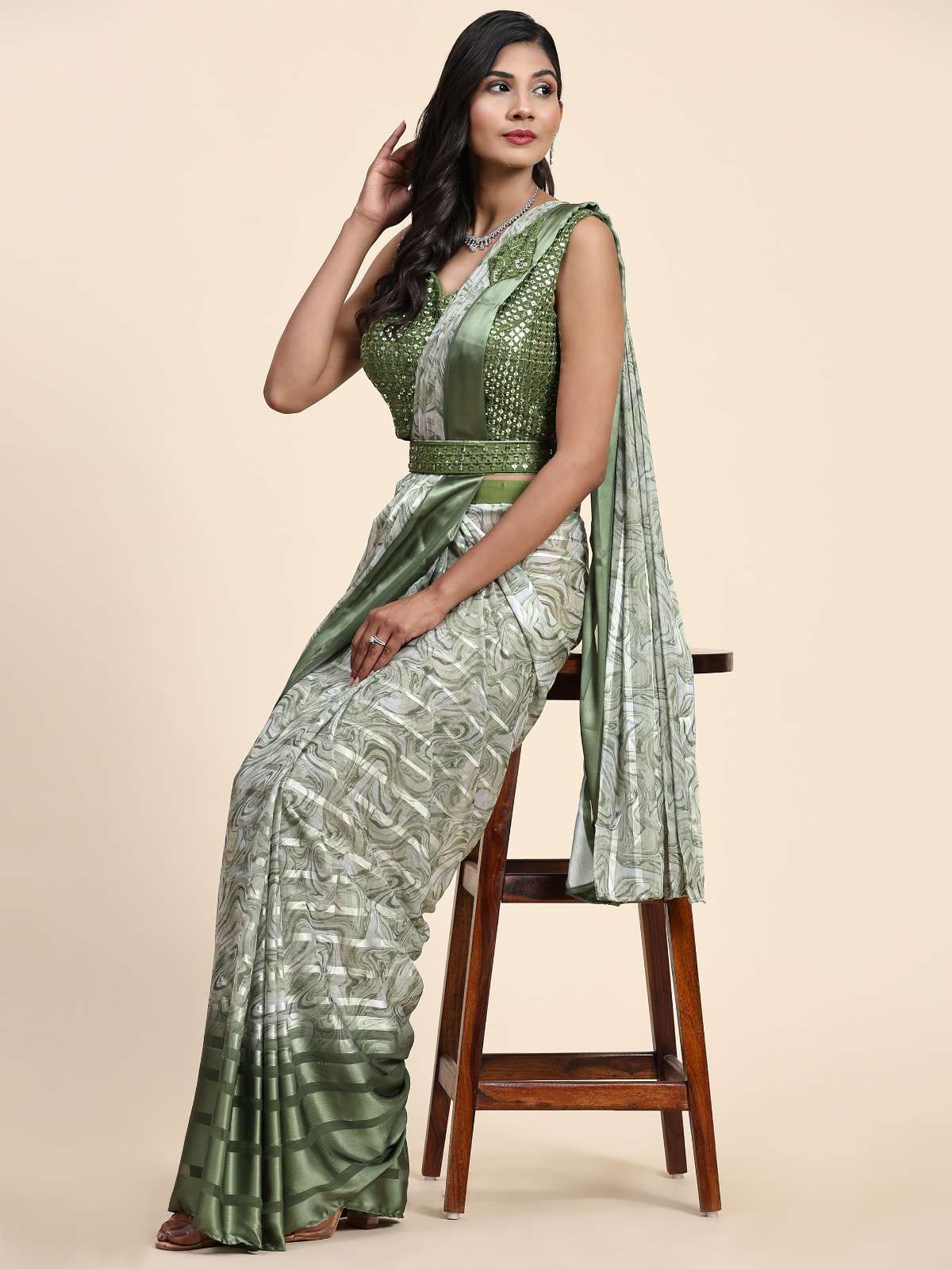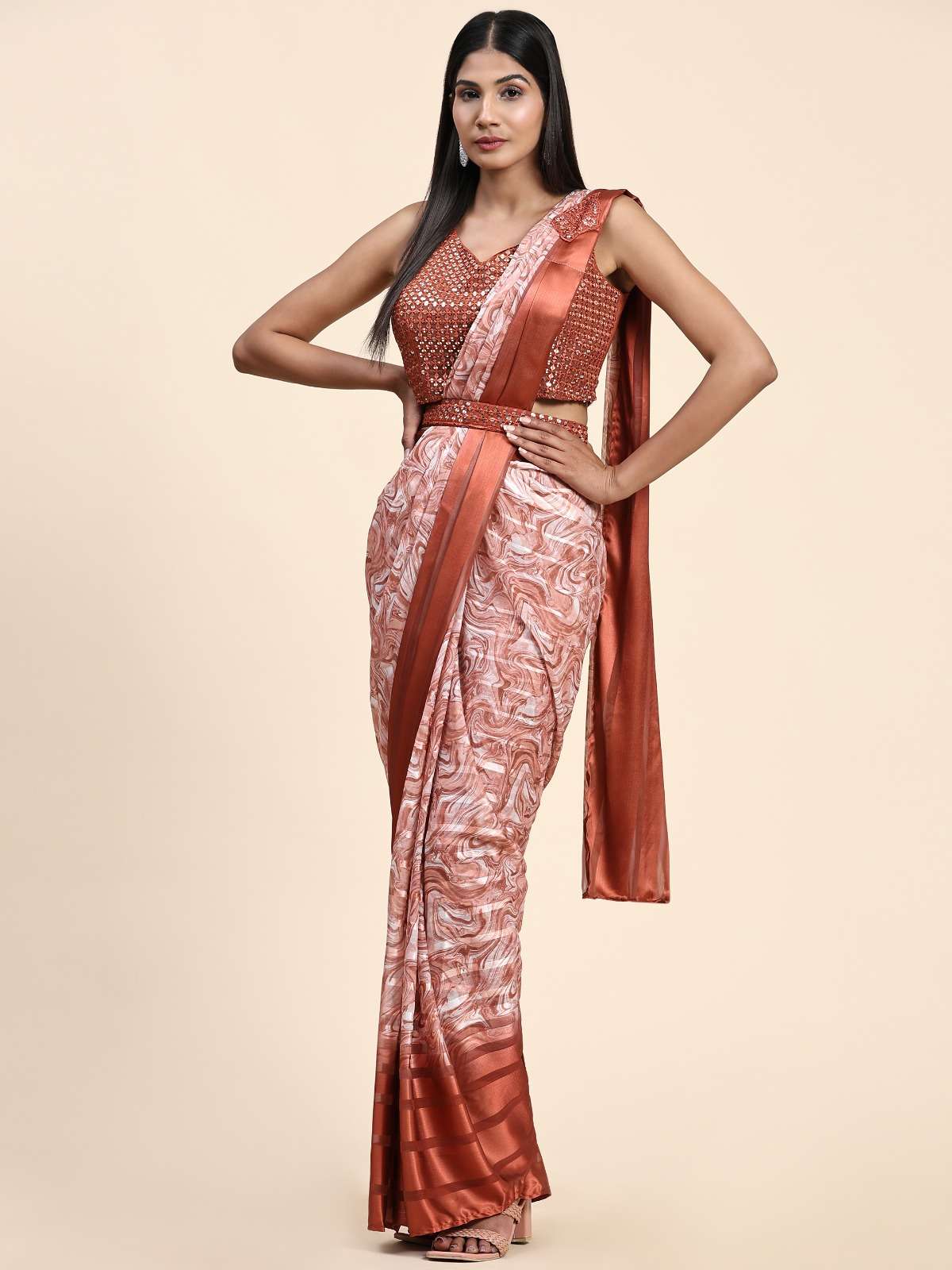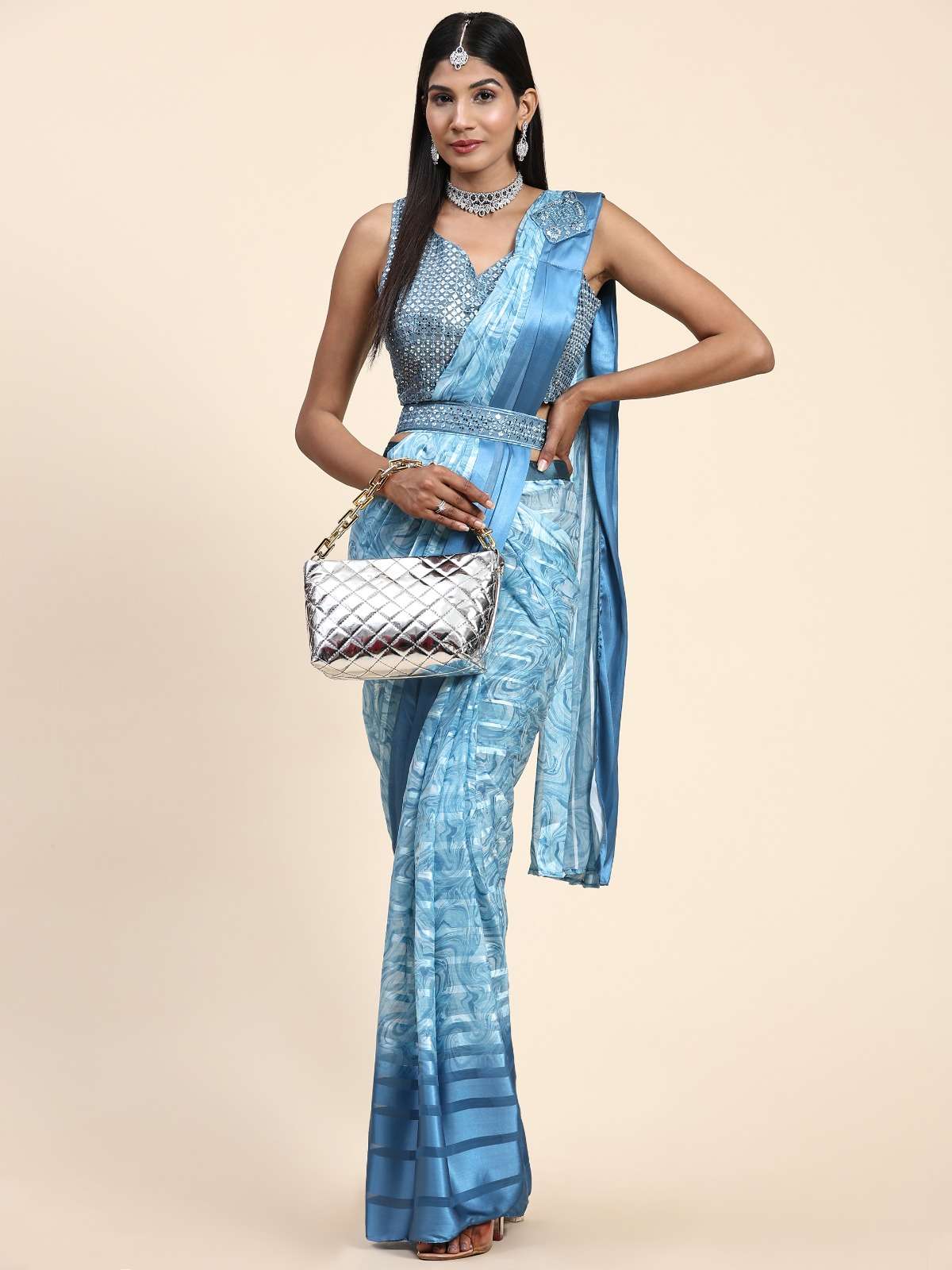 pr 1016353 ready to wear fancy satin silk saree with designer work belt collection