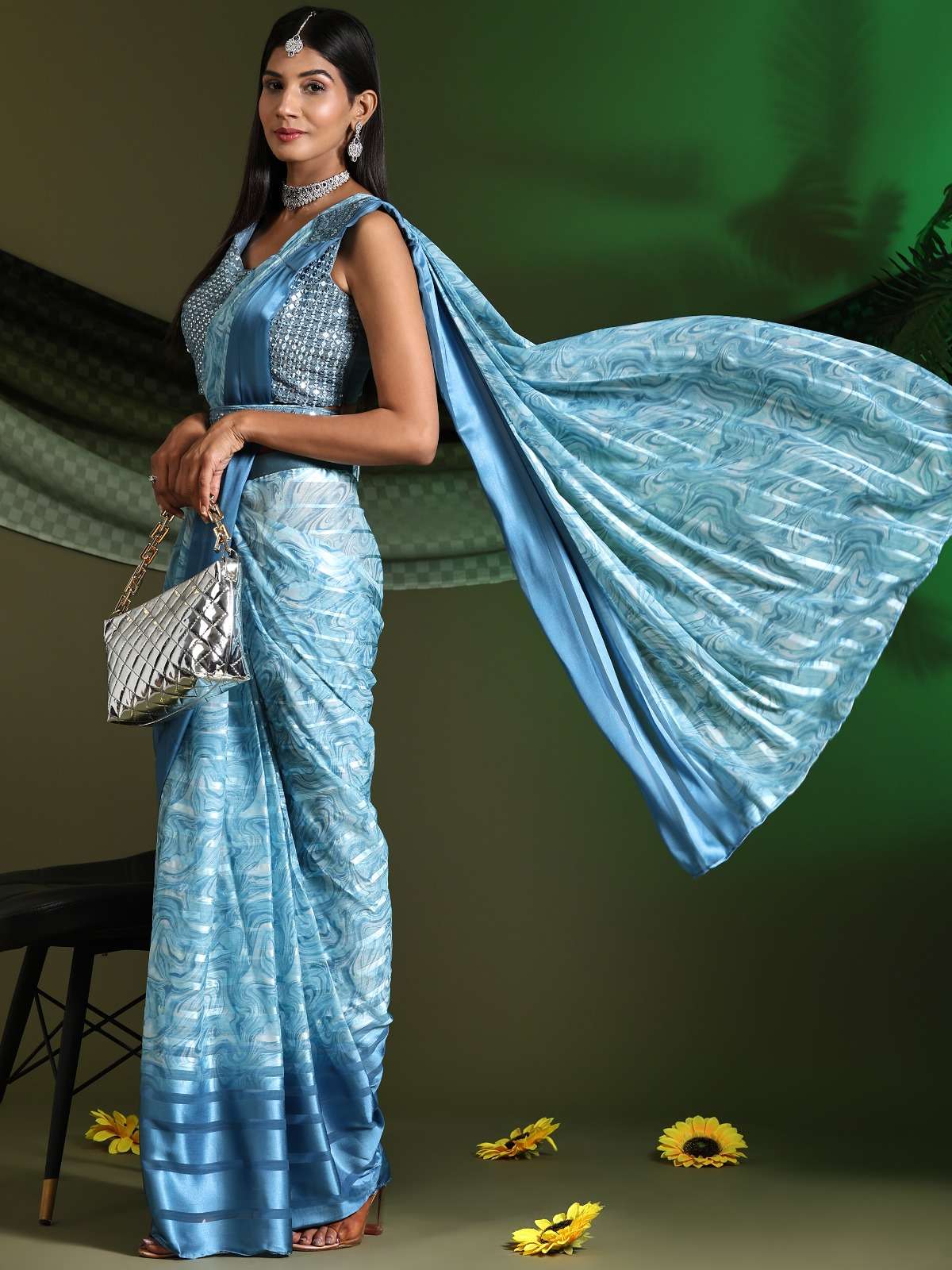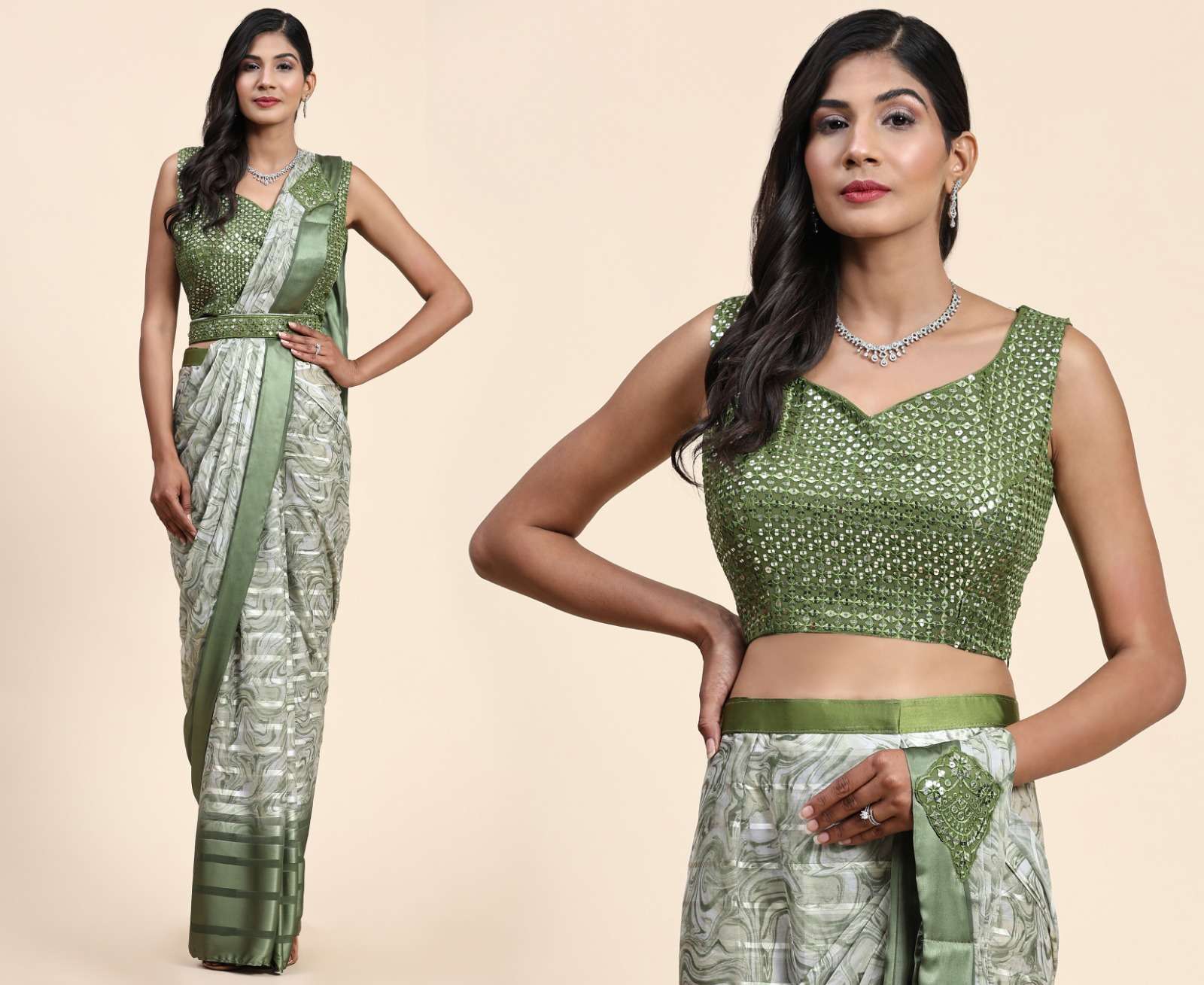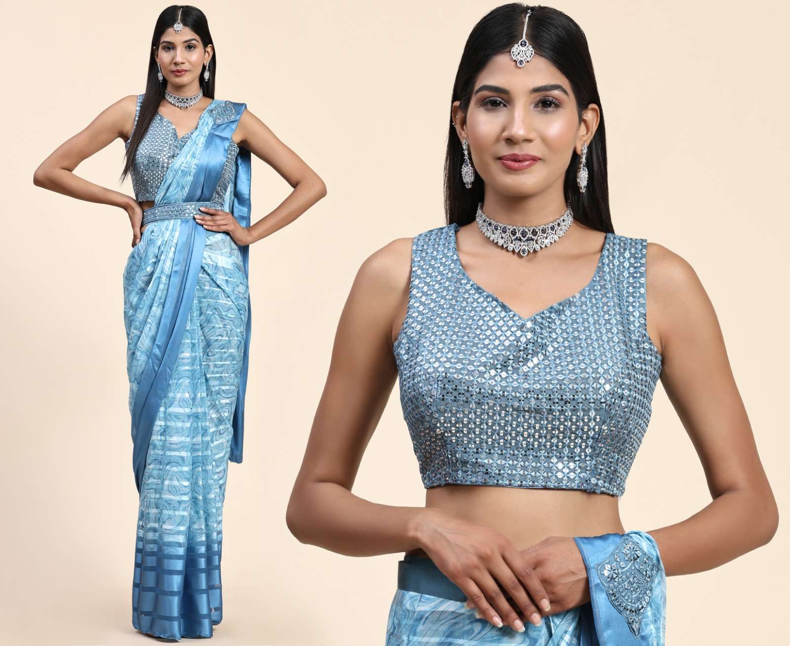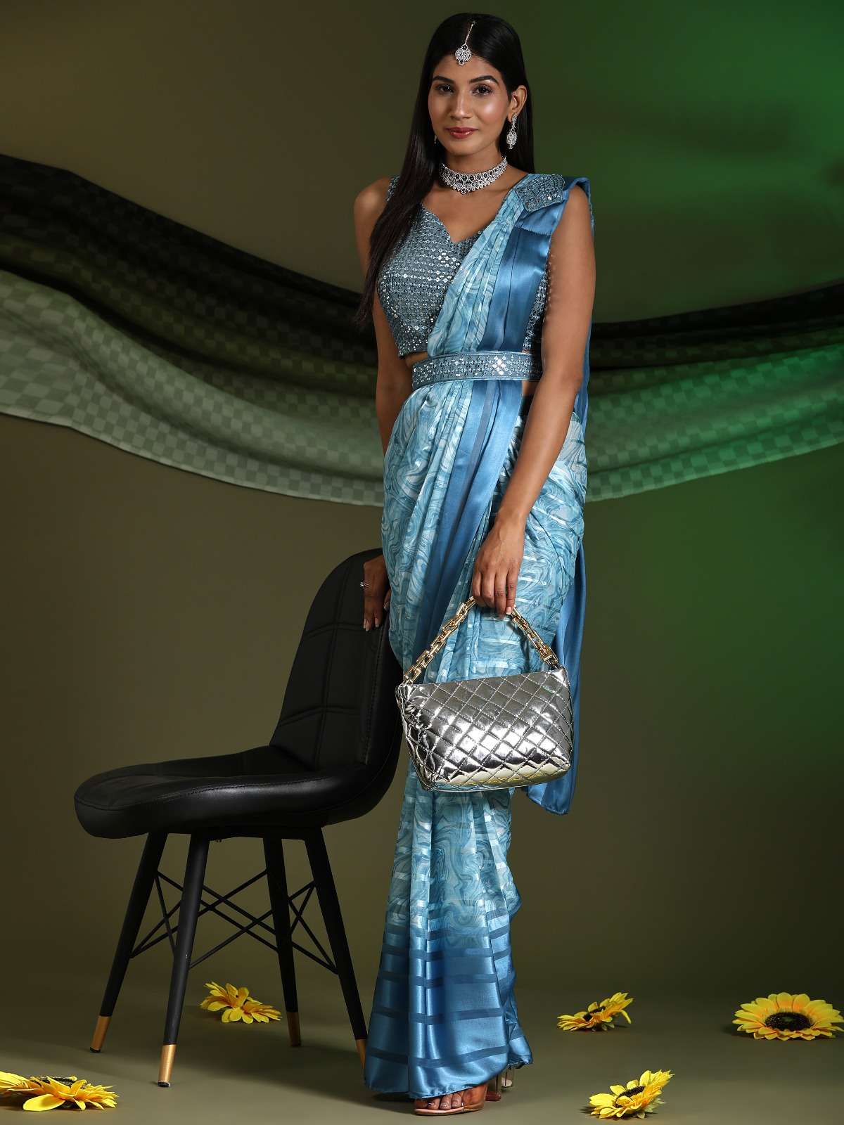 pr 1016353 ready to wear fancy satin silk saree with designer work belt collection
