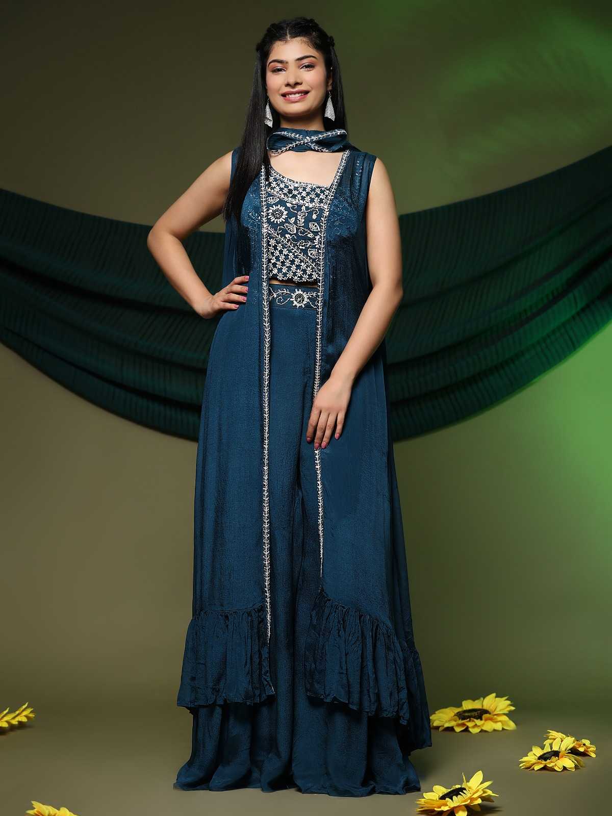 pr 1016375 embroidery readymade chinon crop top with plazzo