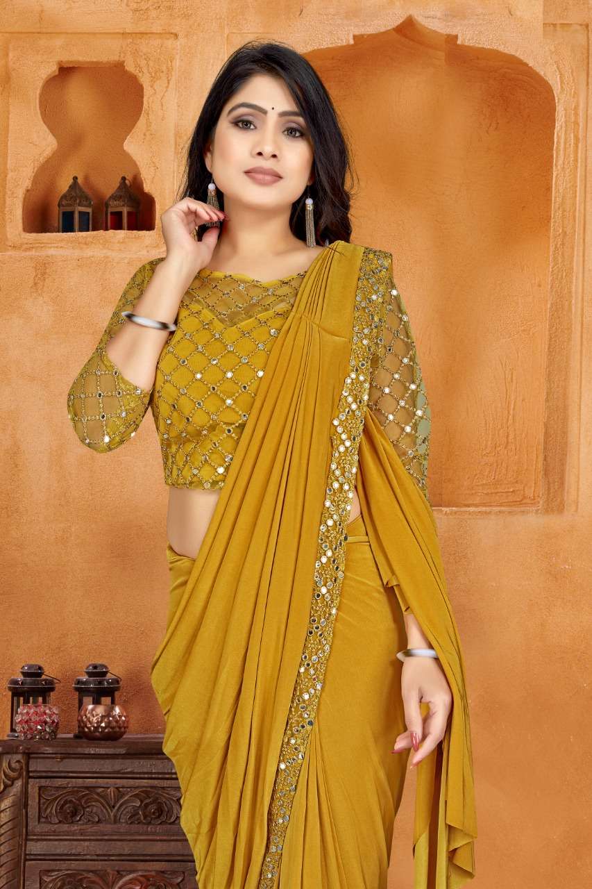 Ready to wear Saree Design No.101879 Fabric- Imported Lycra Fully Stiched Designer saree and Stitched designer Blouse 5 colors available Rate-1575+5 % gst extra |