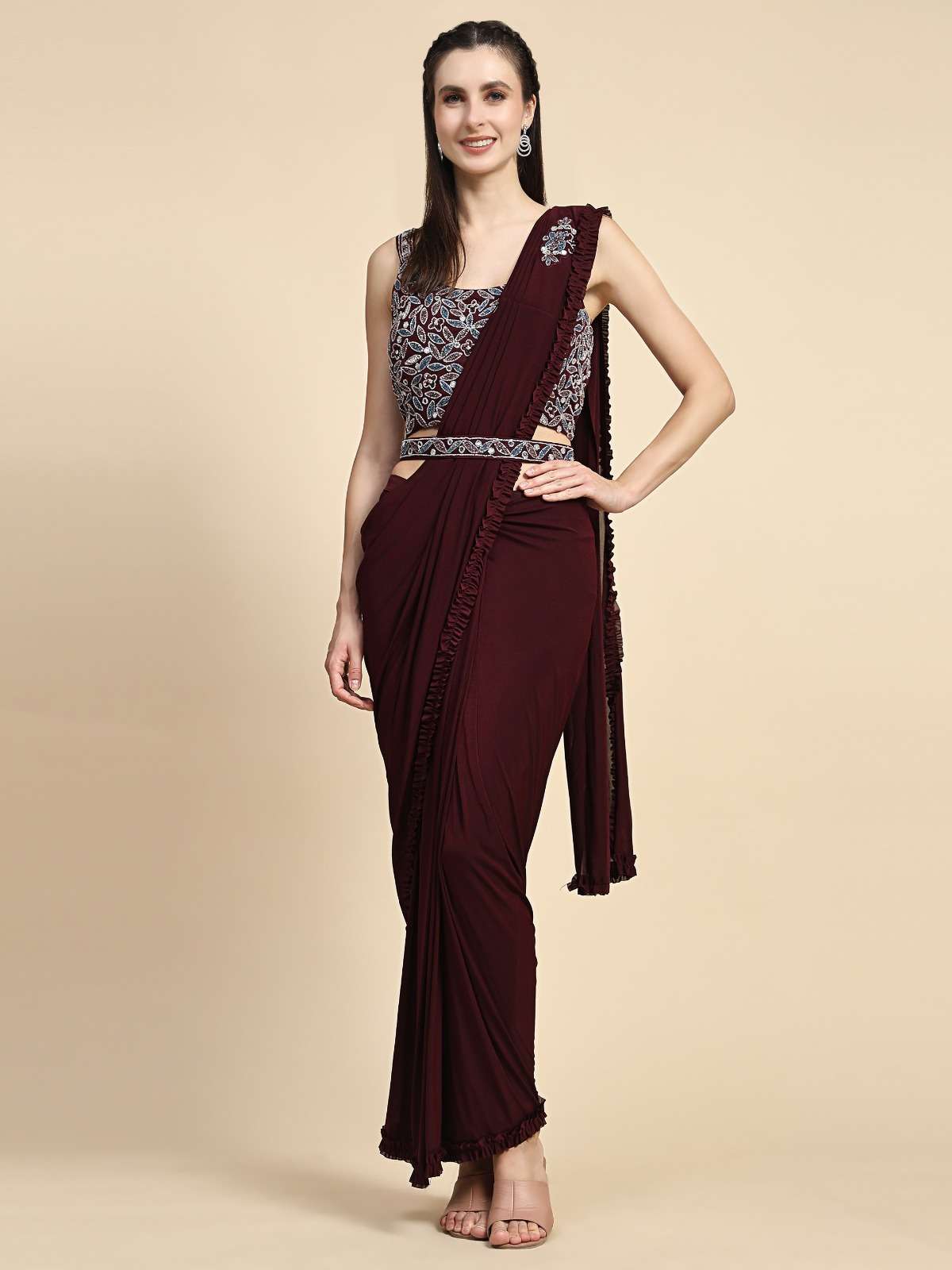 pr 101995 imported handwork belt style ready to wear sarees