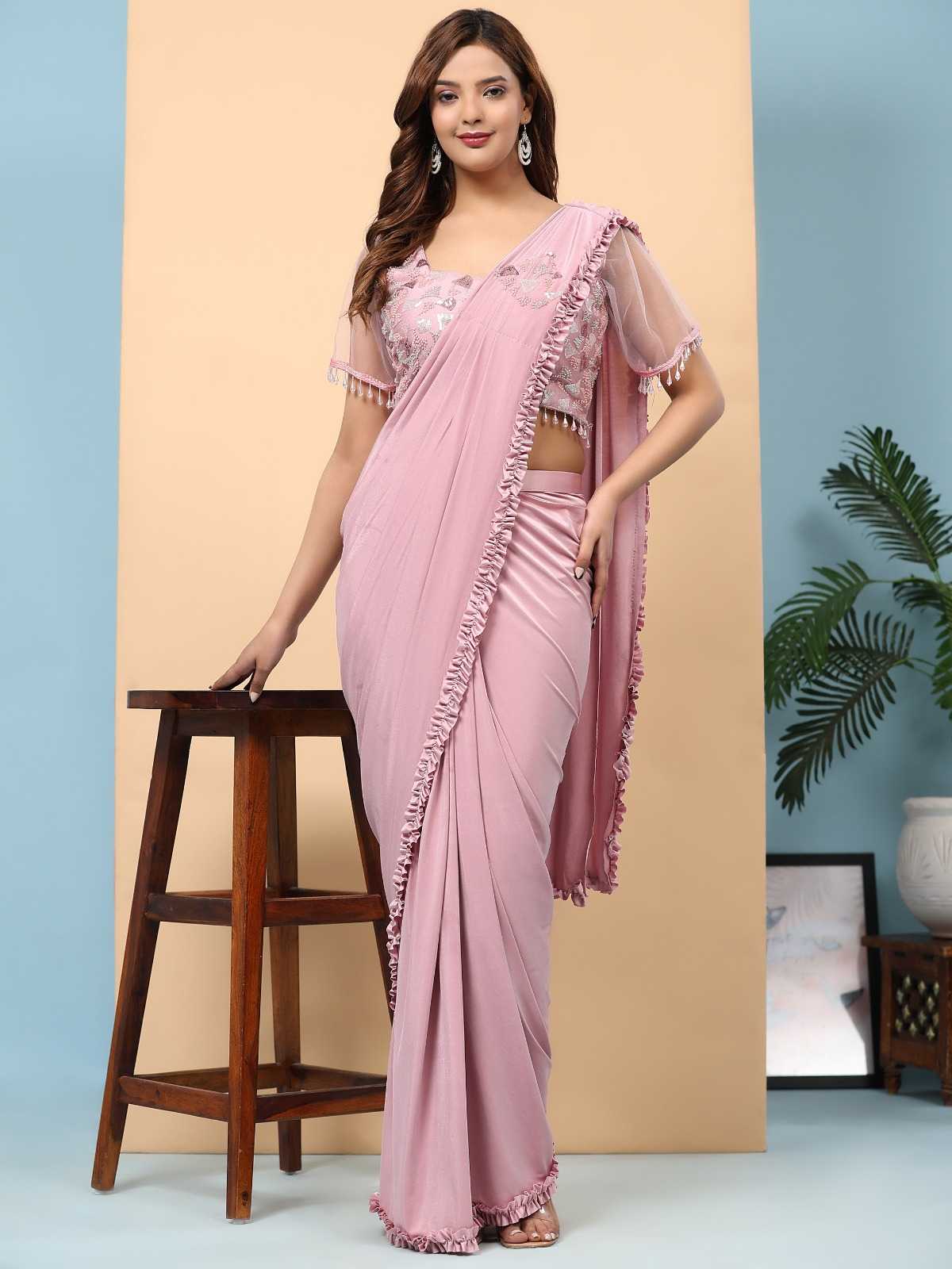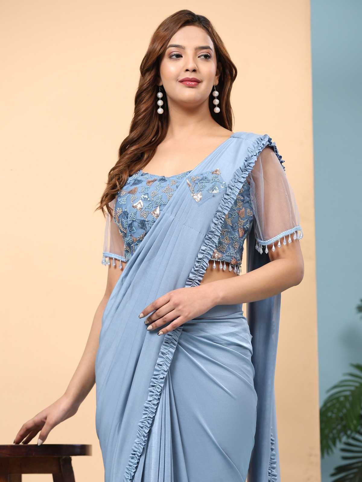 READY TO WEAR SAREES DESIGN NO 102073 BLOUSE DESIGNER HAND EMBROIDERY WORK WITH FANCY SLEEVES SAREE FANCY IMPORTED FABRICS WITH FREEL BORDER SIZE (36 READY) 2 COLOURS AVAIABLE RATE 1645 +5%(GST) |
