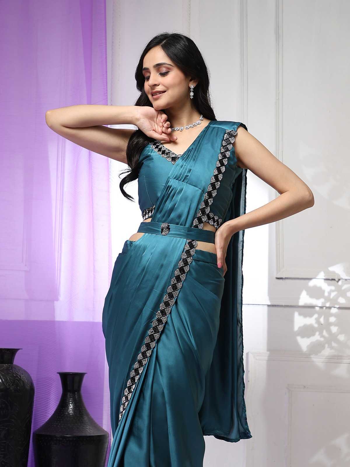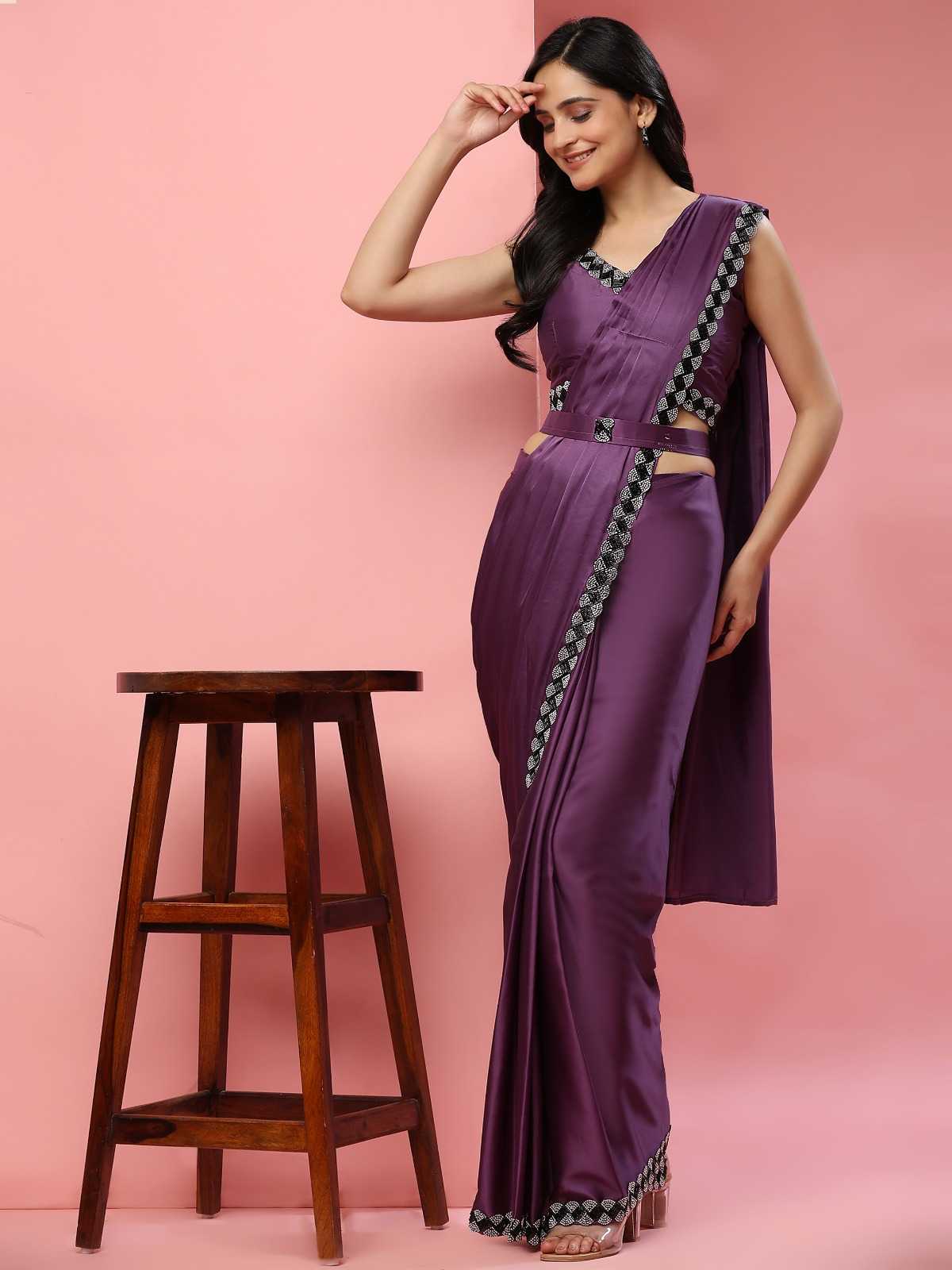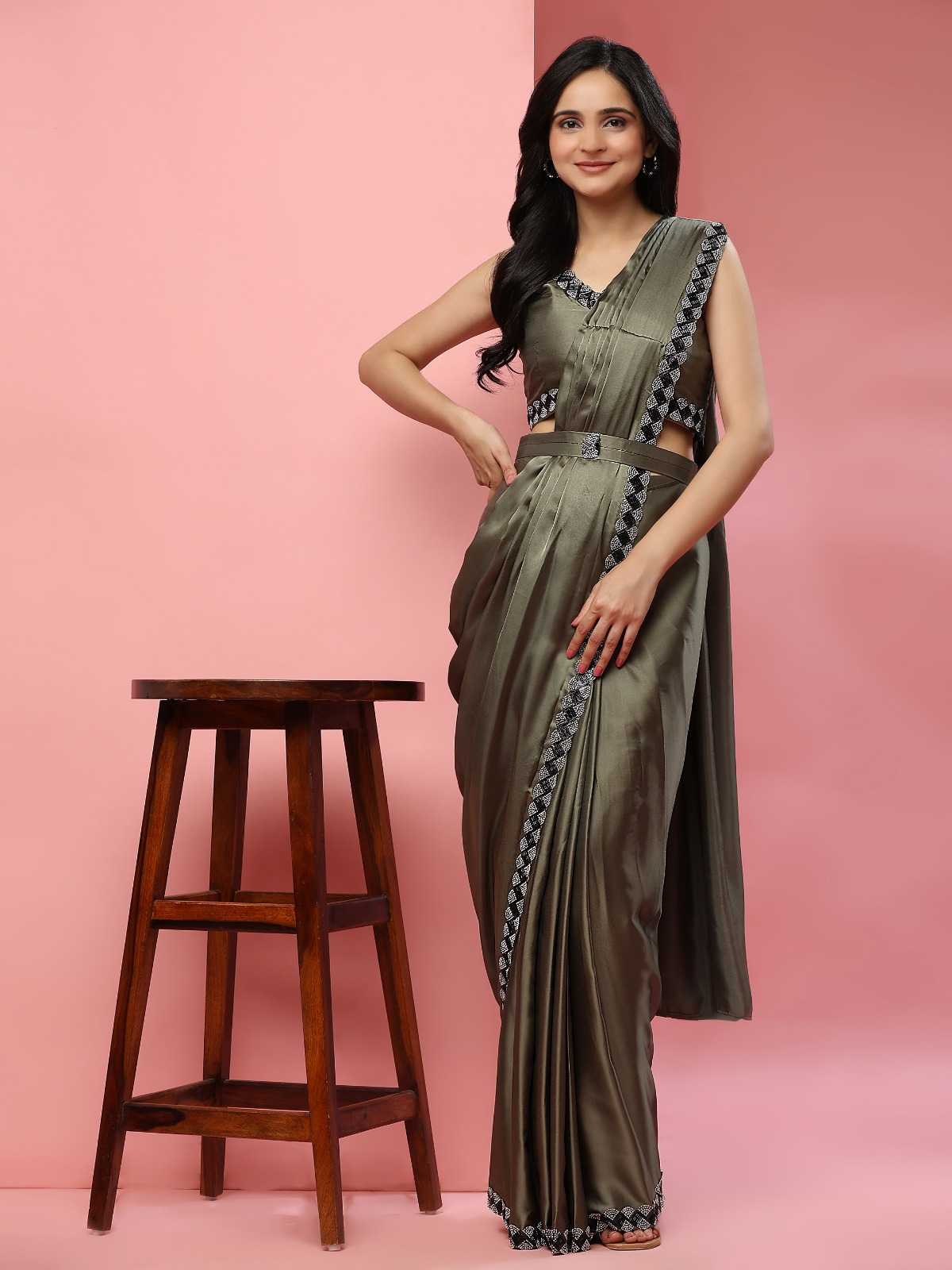 pr 102096 new trendy satin silk with stone border party look fancy ready to wear sarees