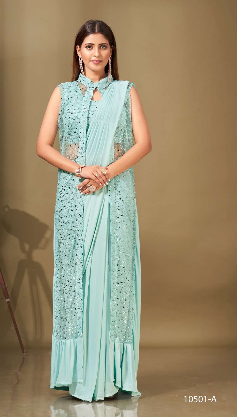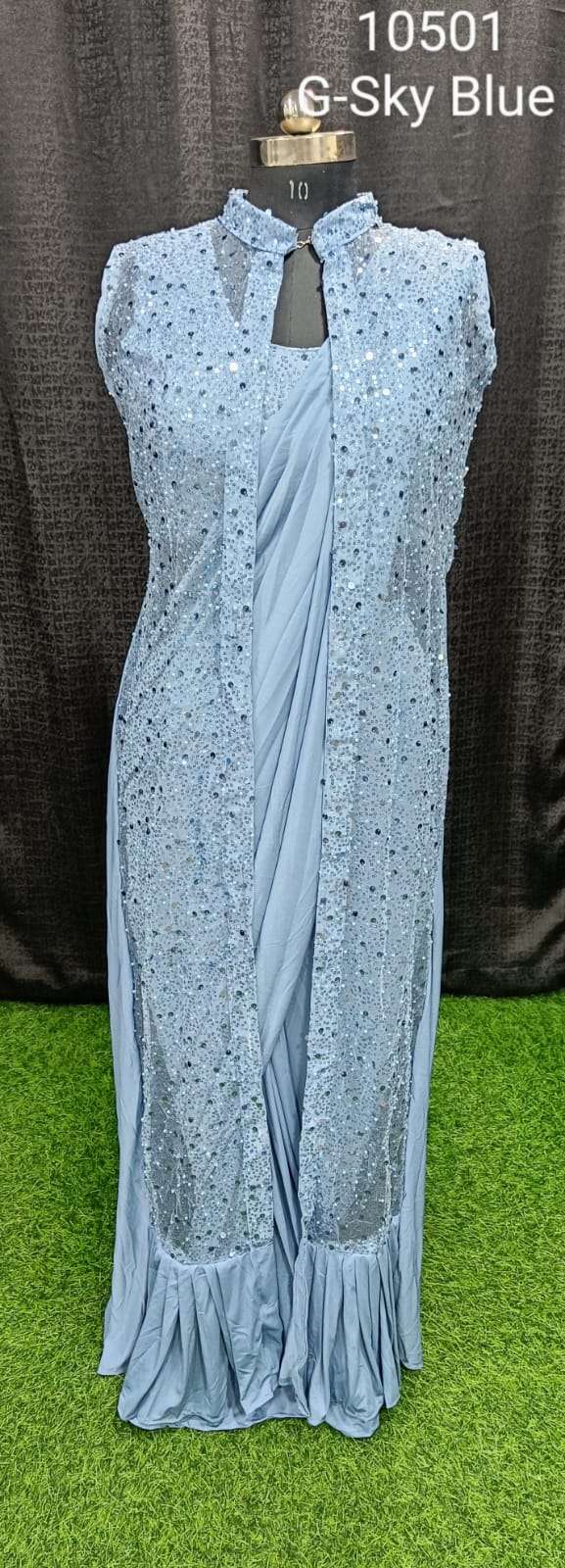 pr 10501 ready to wear amazing fancy sarees with sequin pearl work blouse and shrug