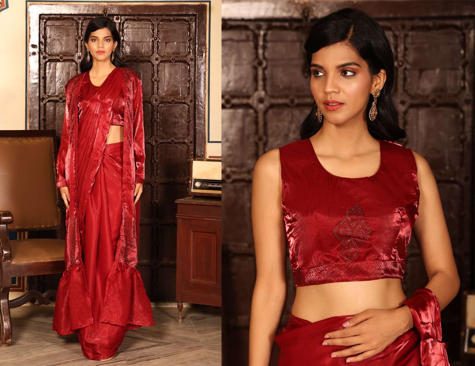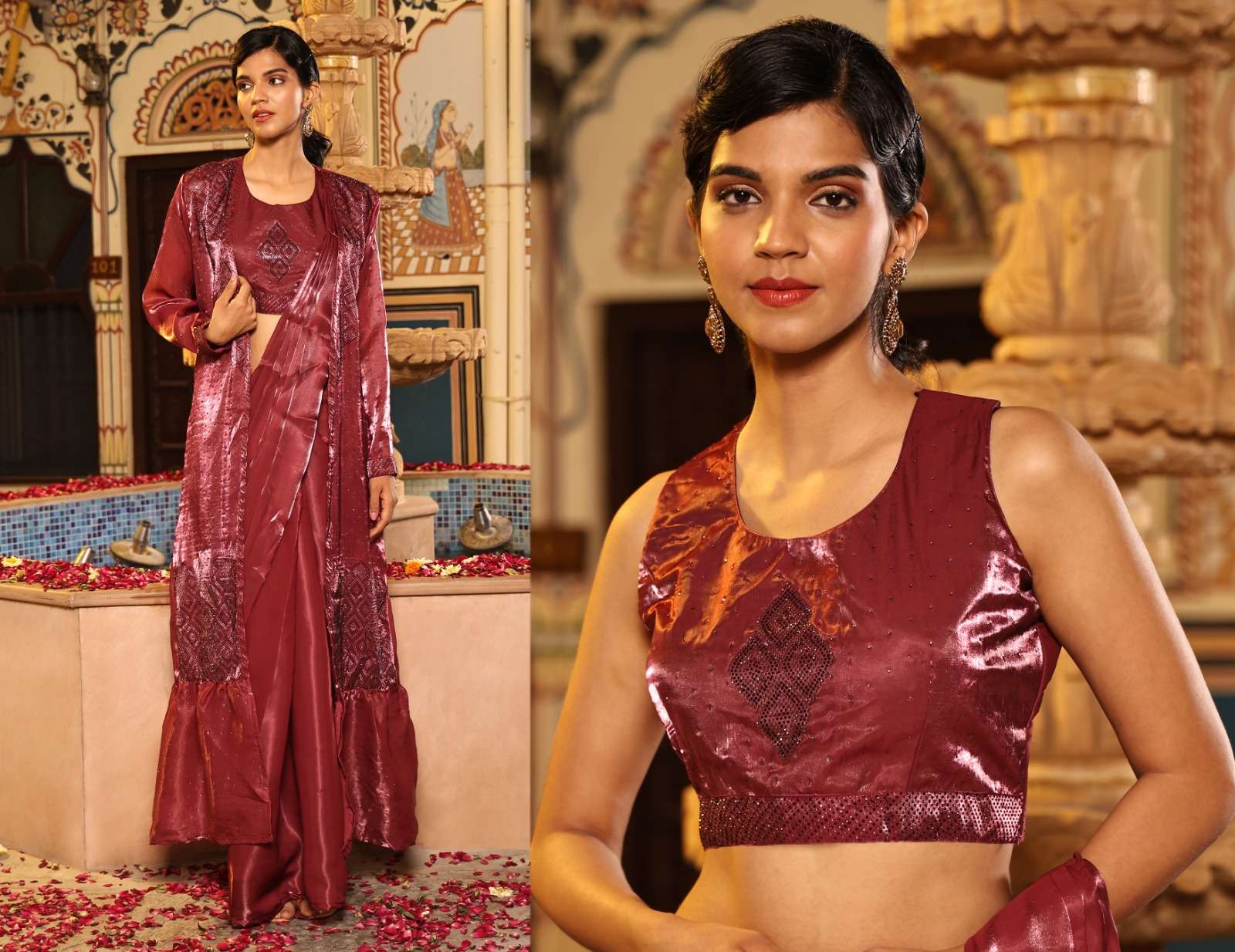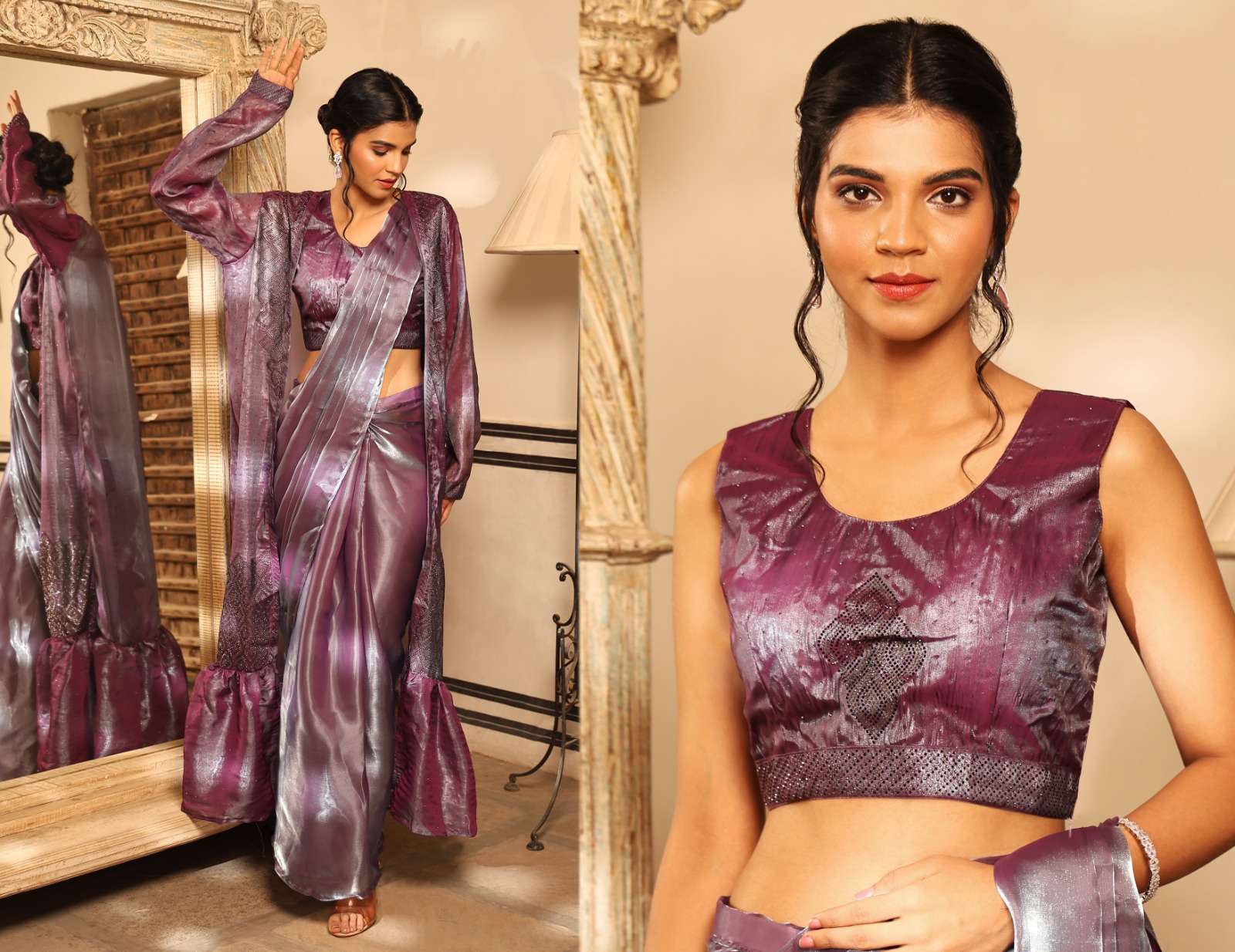 pr 10515 ready to wear fancy saree with swaroski work blouse and beautiful shrug