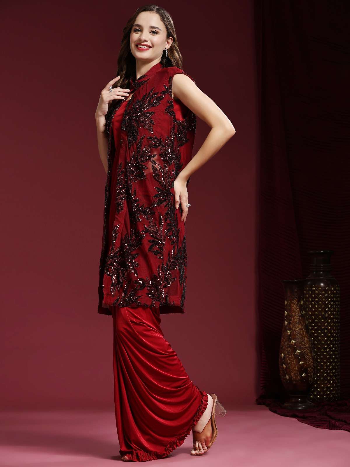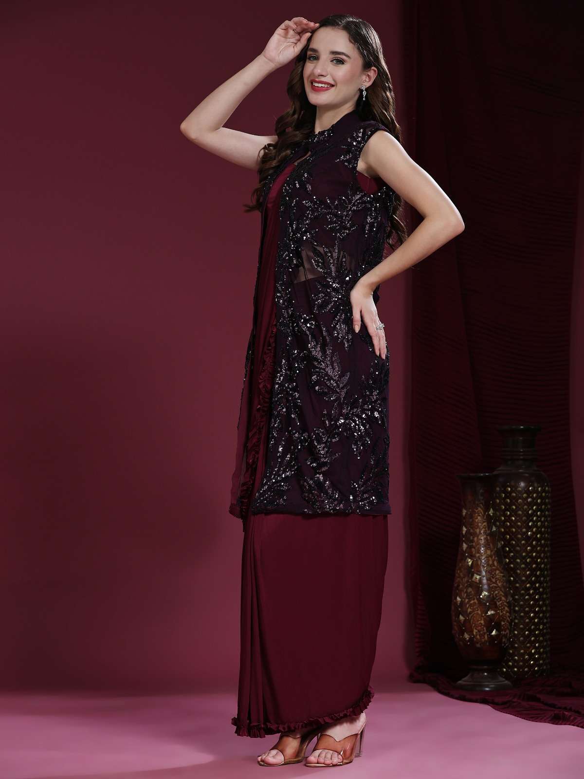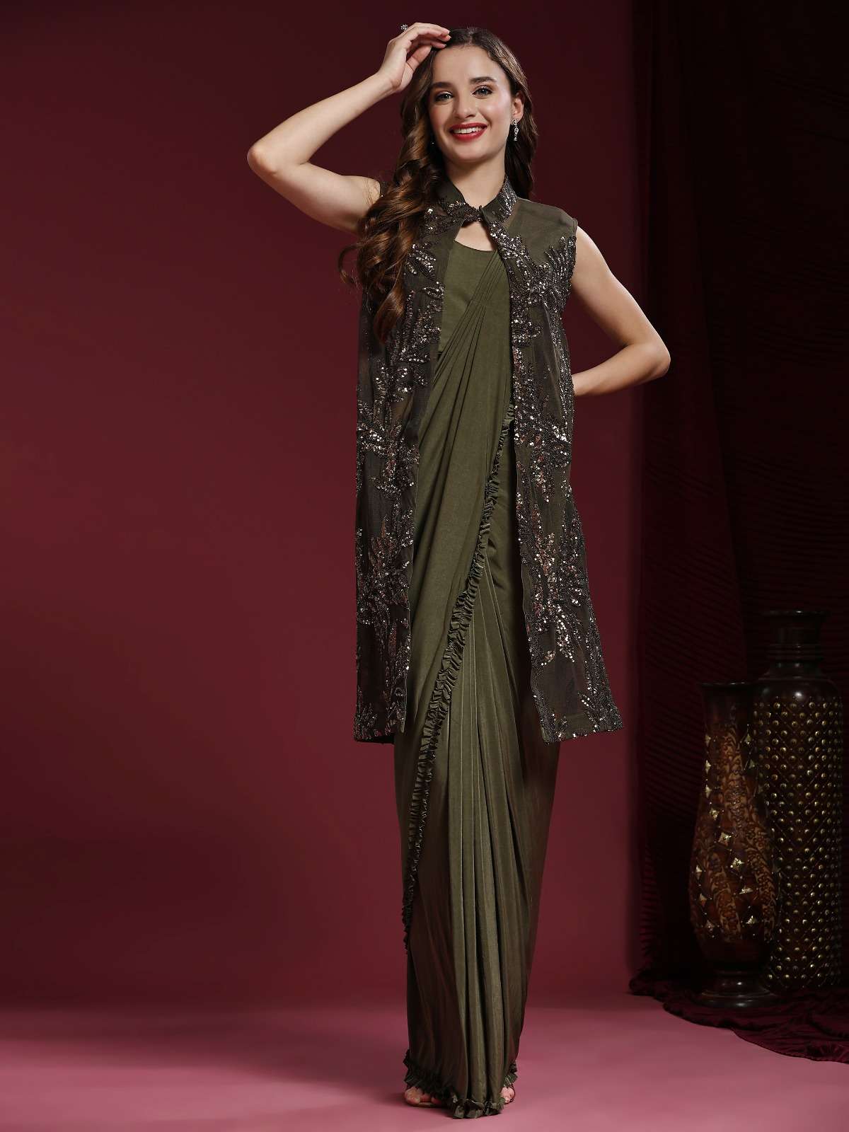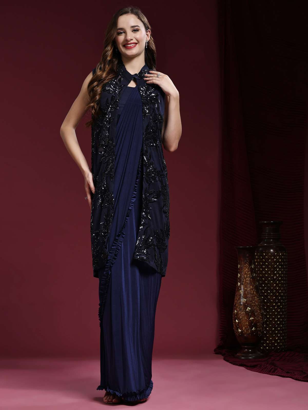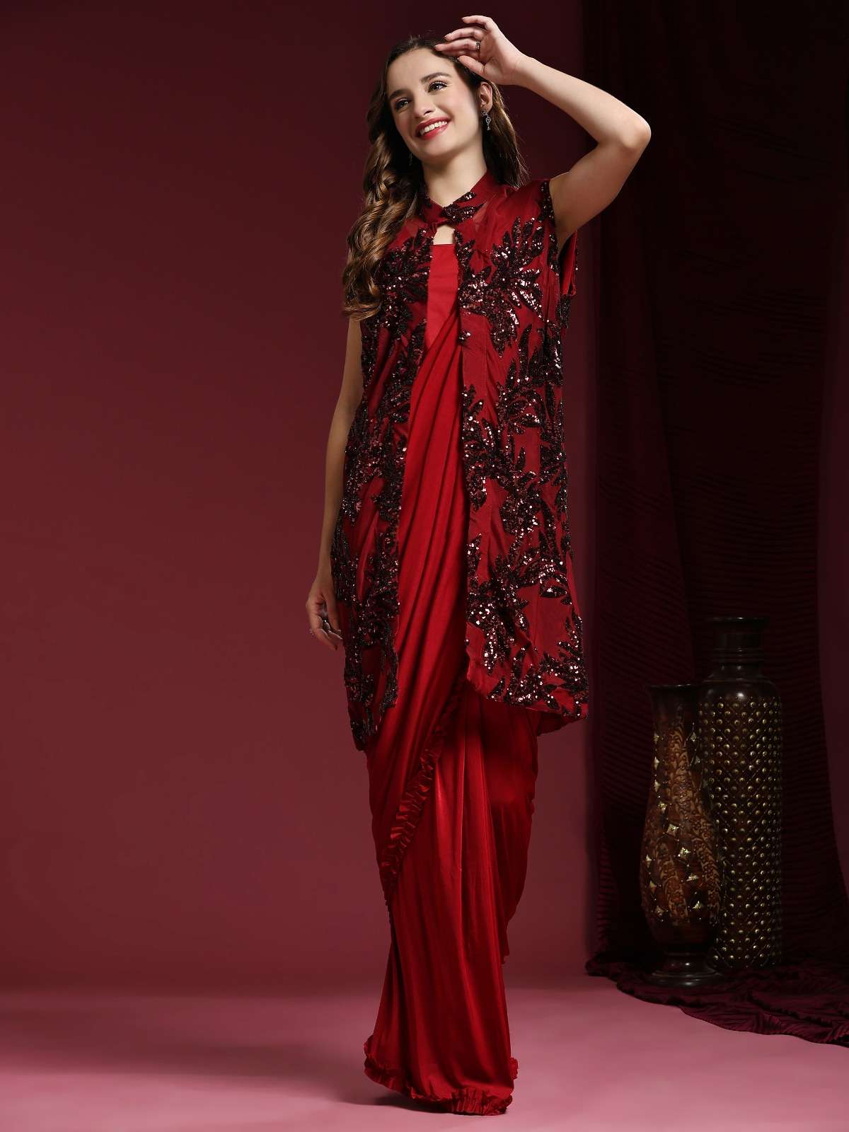pr 10522 ready to wear fancy work saree with blouse and designer shrug