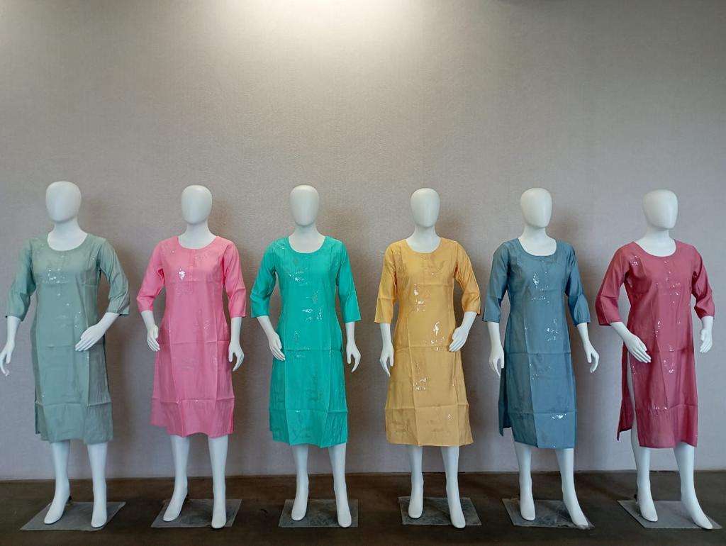- New Launch - Set - Wise - Kurti Designs no - *1374 Only Kurti Fabric- Chanderi 4 pcs set ( M to 2XL) |