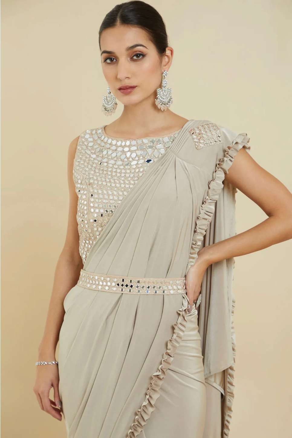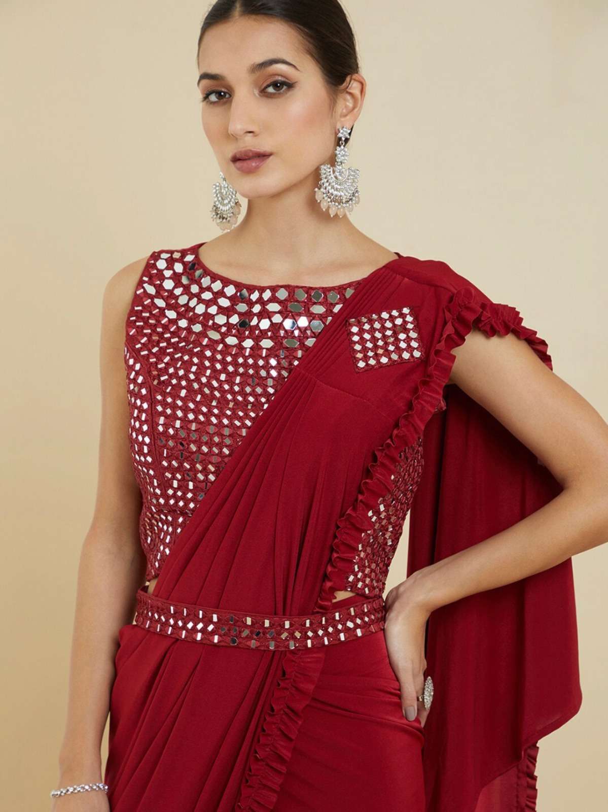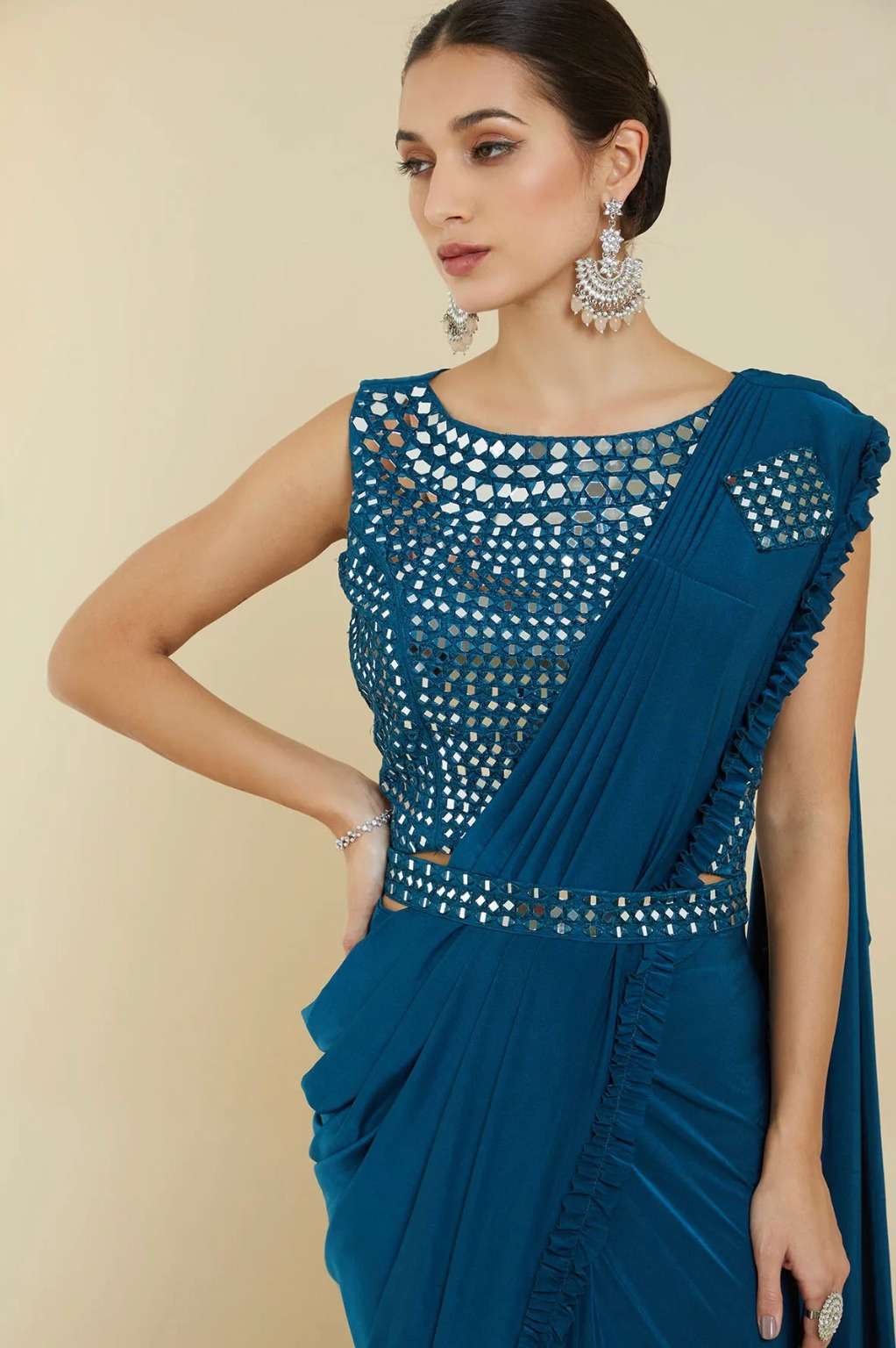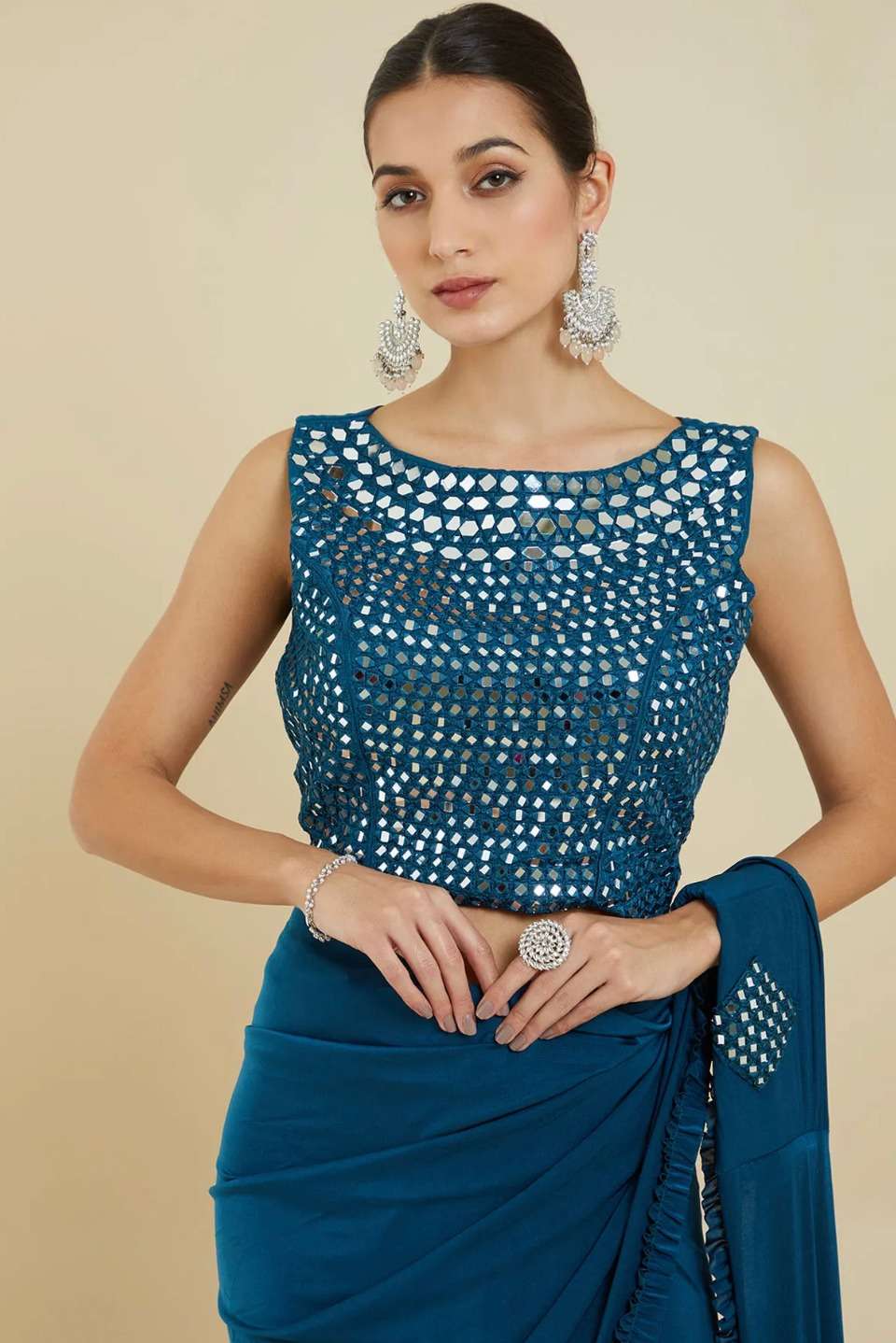 NEW DESIGN ADDED IN DRIVE LINK DESIGN NO 214 BLOUSE EXQUISITE REAL MIRROR WORK SAREE IMPORTED FABRIC WITH MIRROR WORK BELT AND ON PALLU SIZE 36 READY 5 COLOURS AVAILABLE RATE 2195 per pcs plus 5% GST extra |
