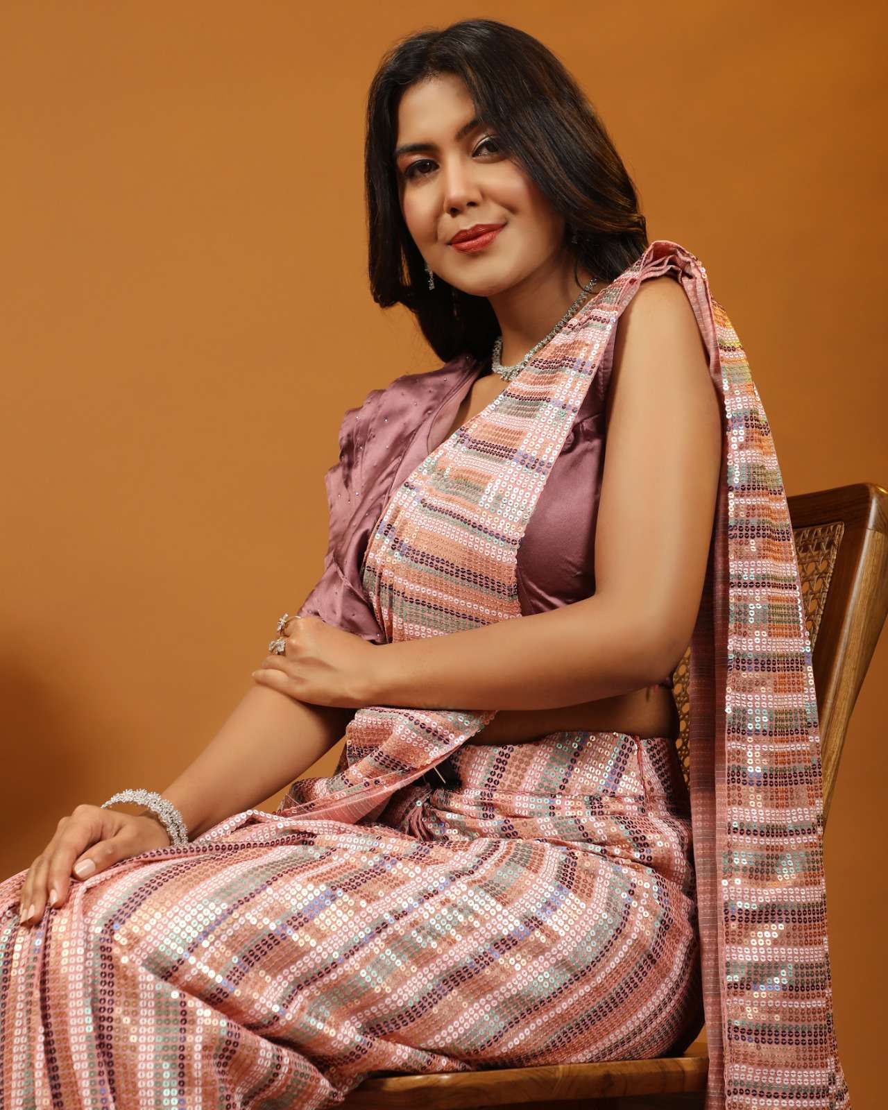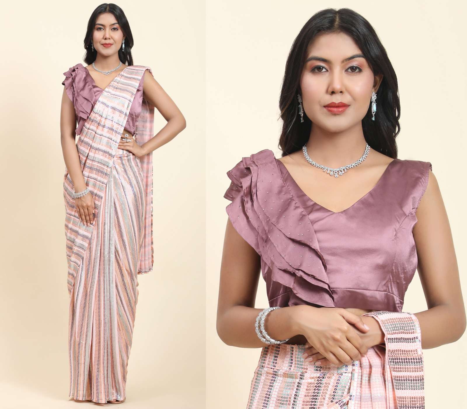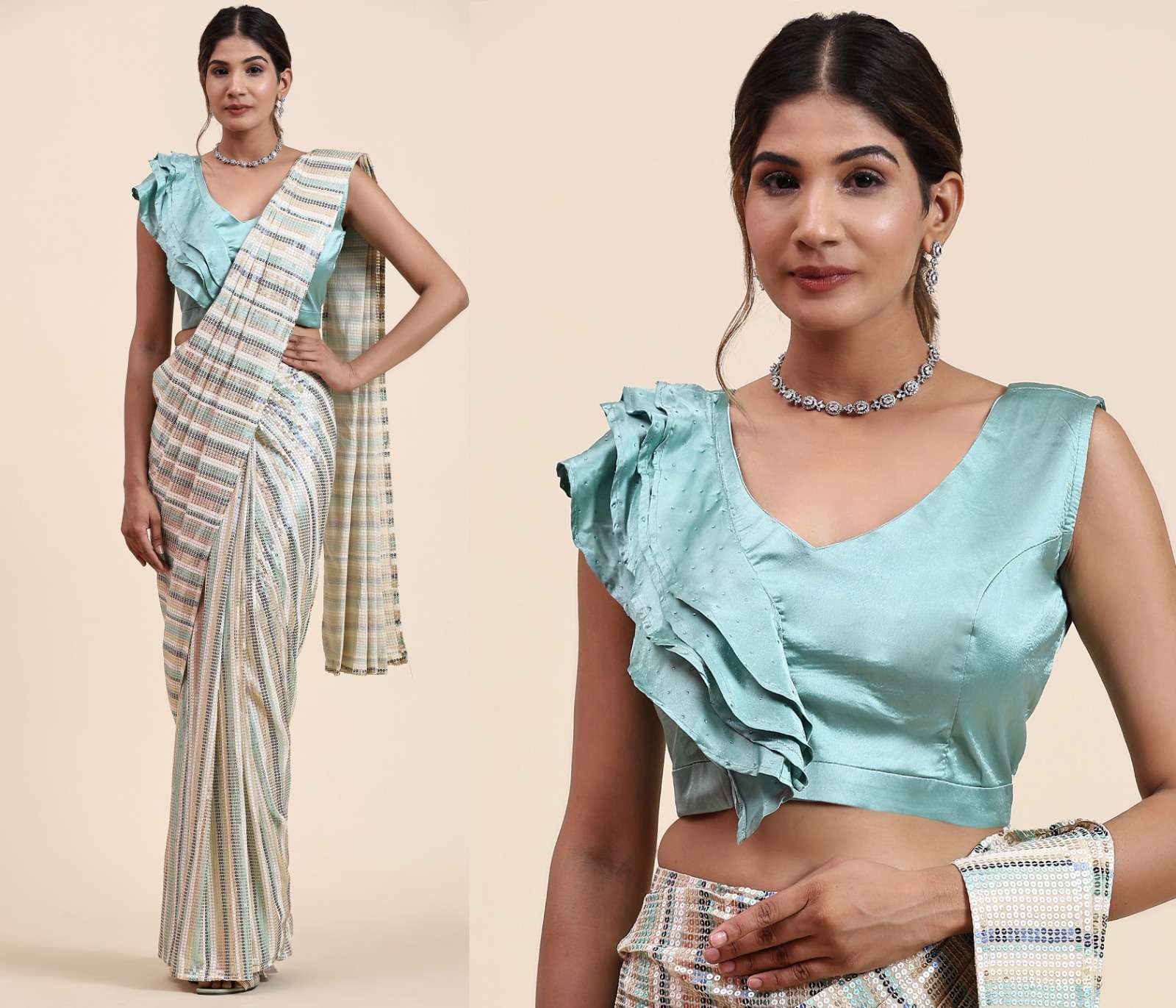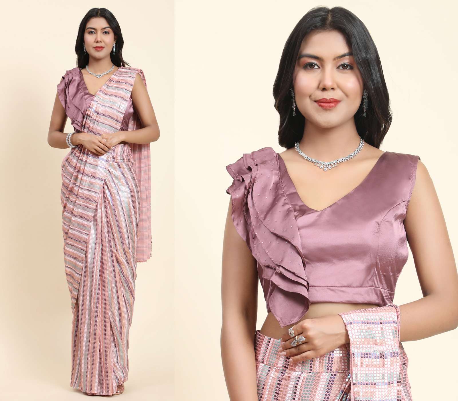 pr 244 ready to wear multi sequin work saree with plain designer plain blouse