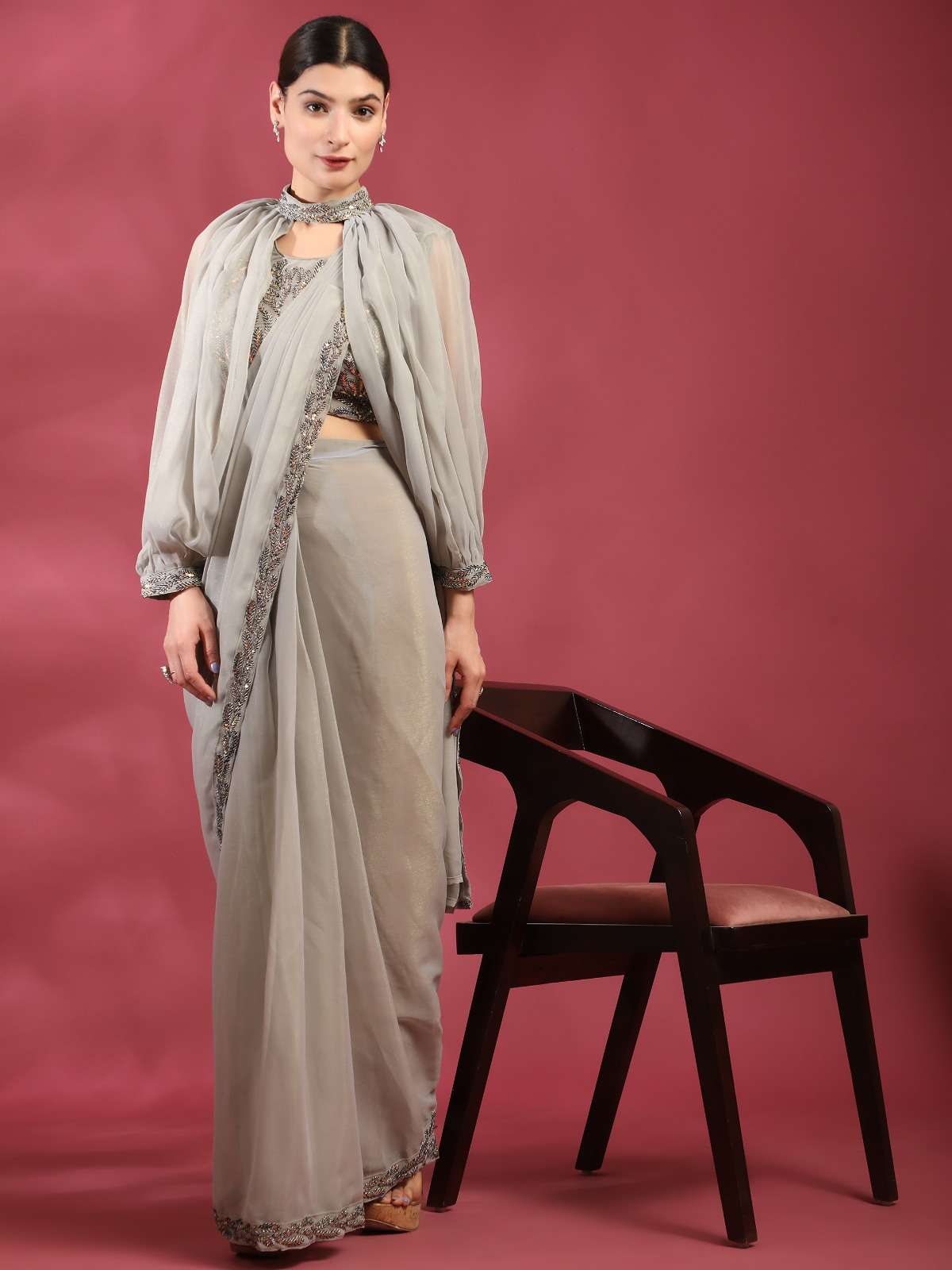pr 246 ready to wear sequin embroidered border fancy sarees with designer blouse collection