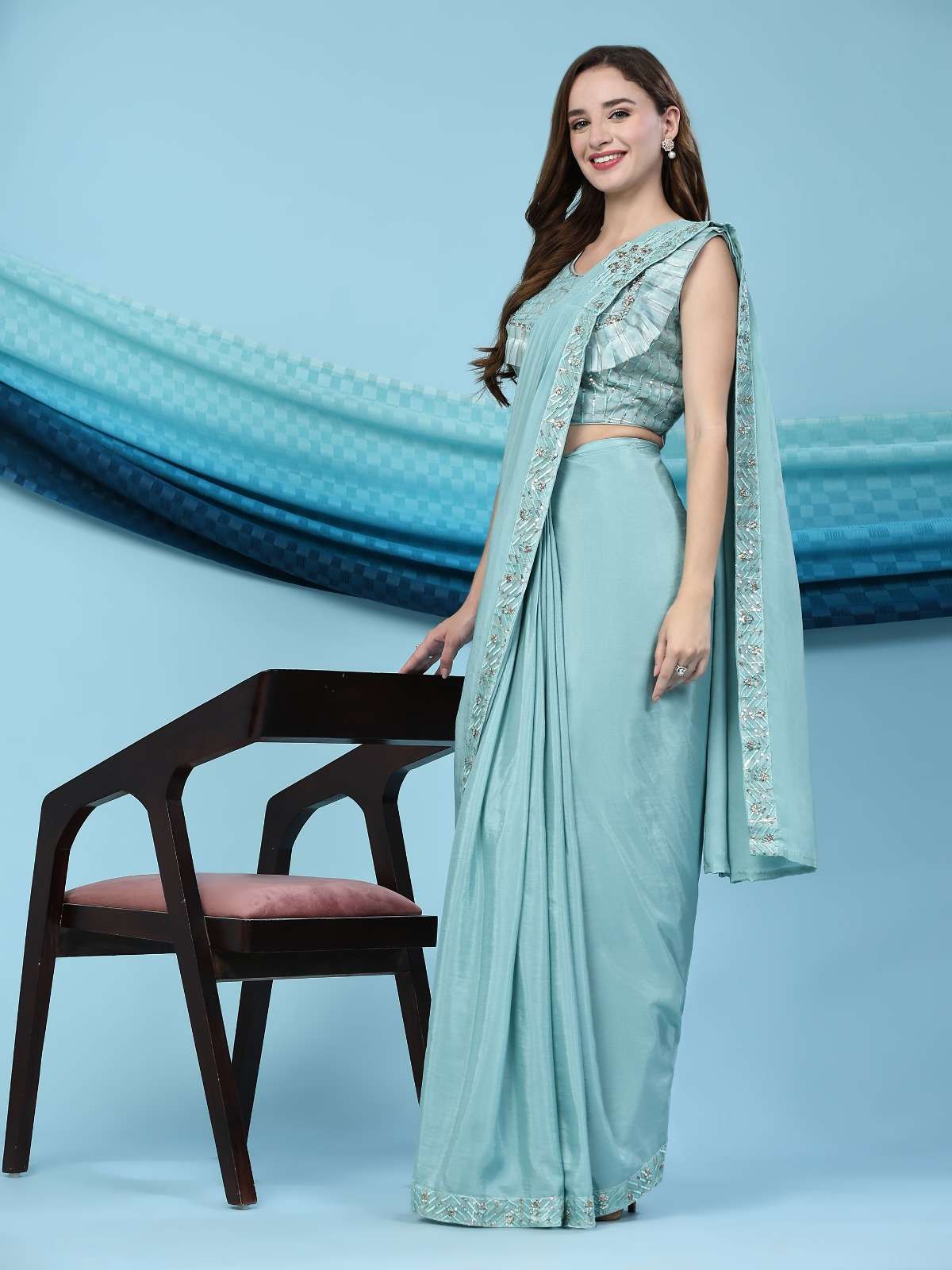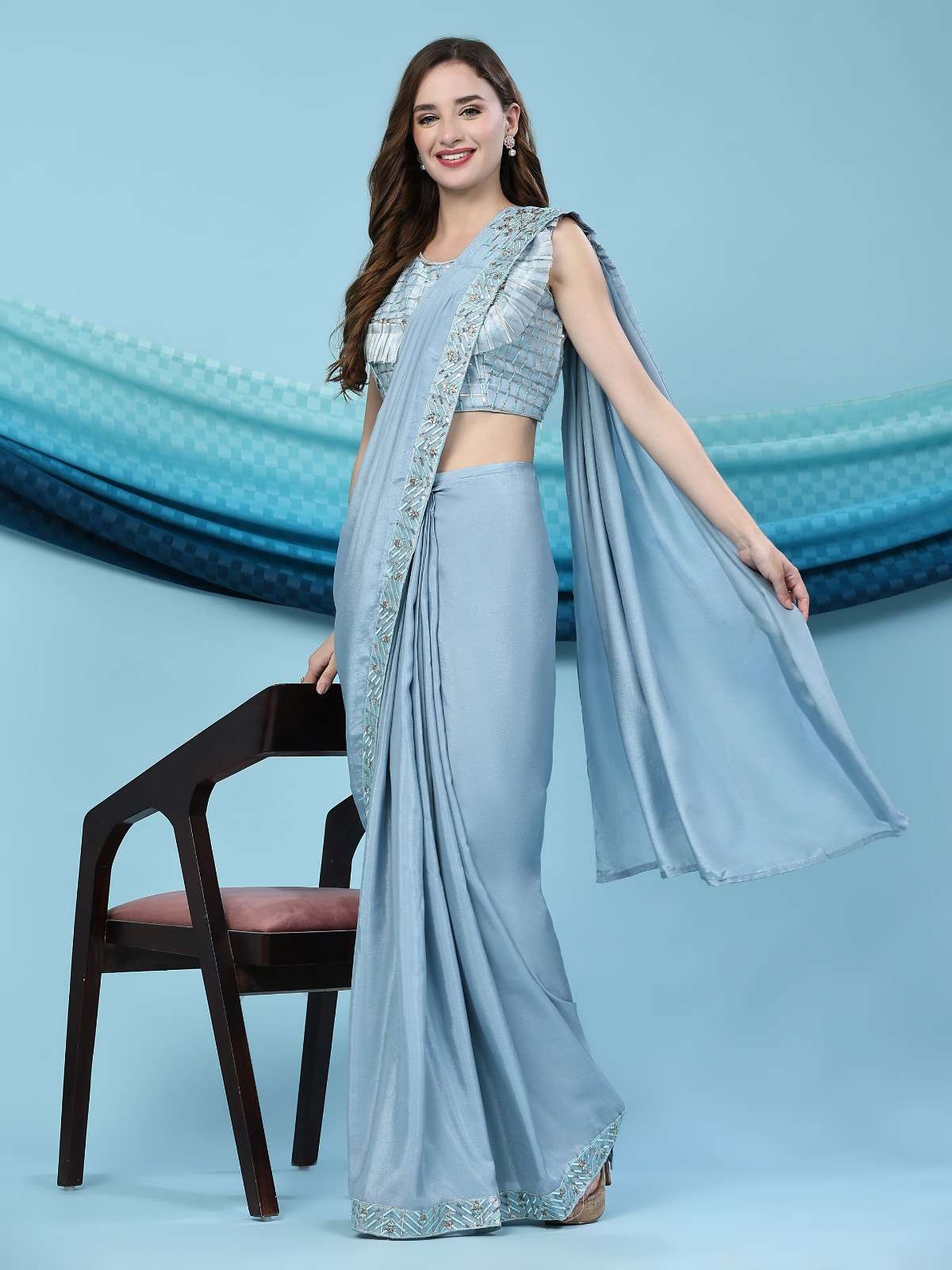 pr 247 ready to wear silk satin fancy saree with designer blouse