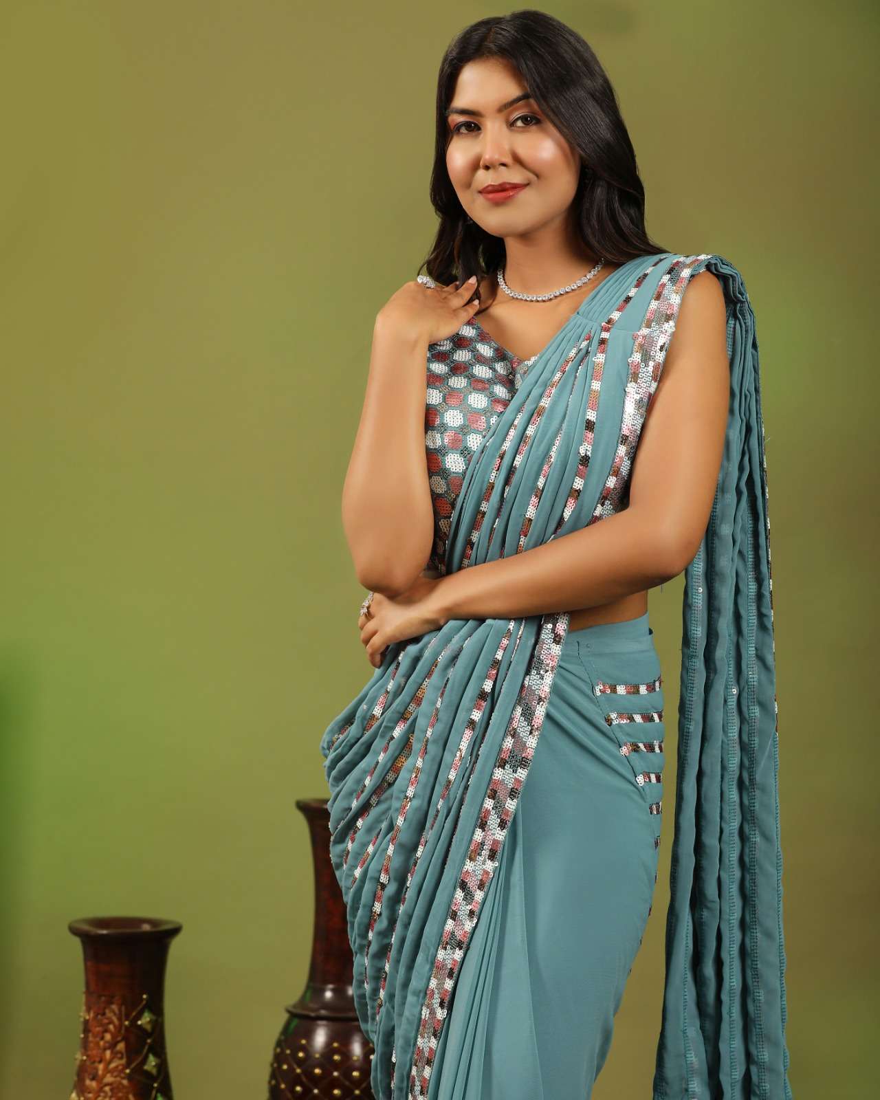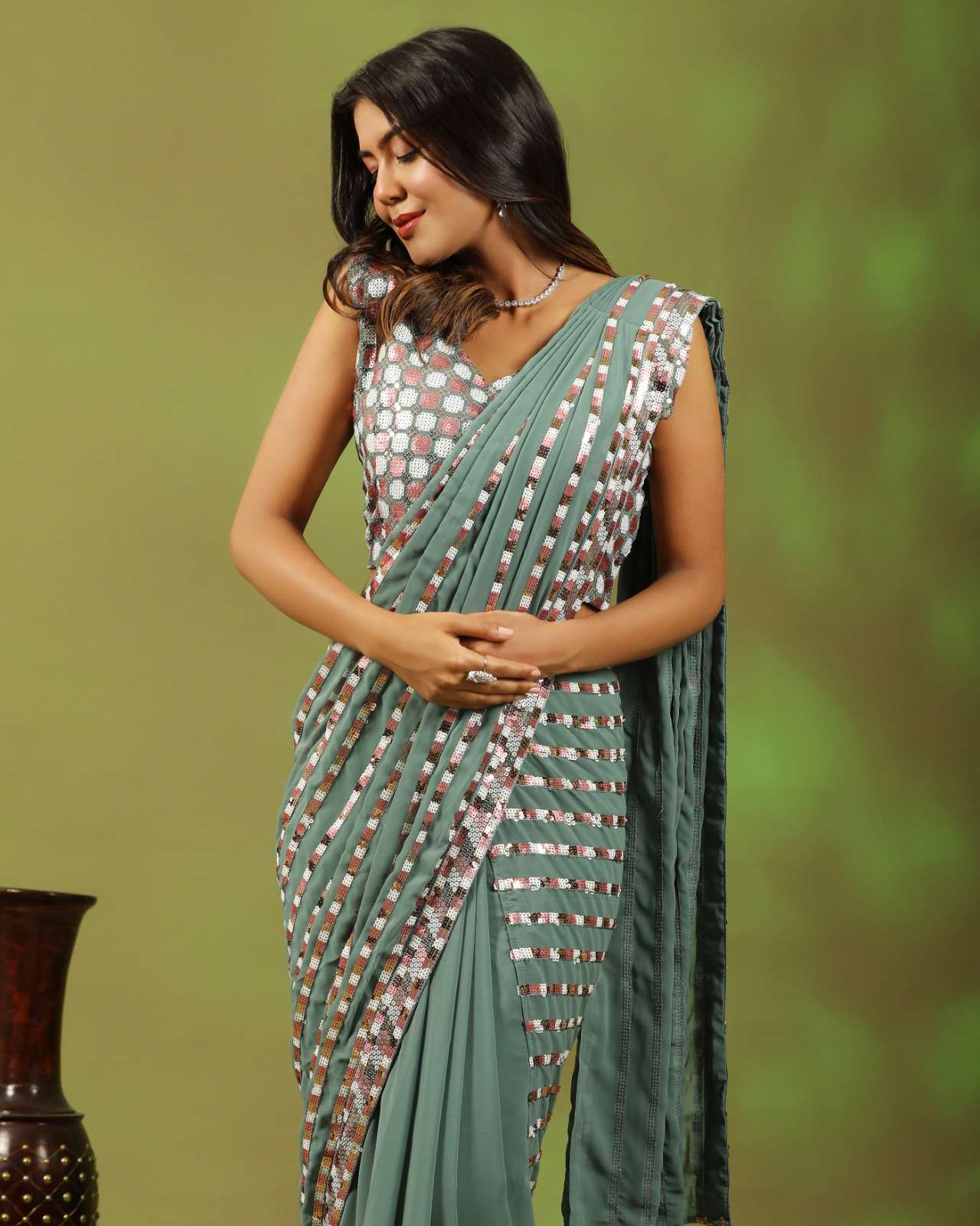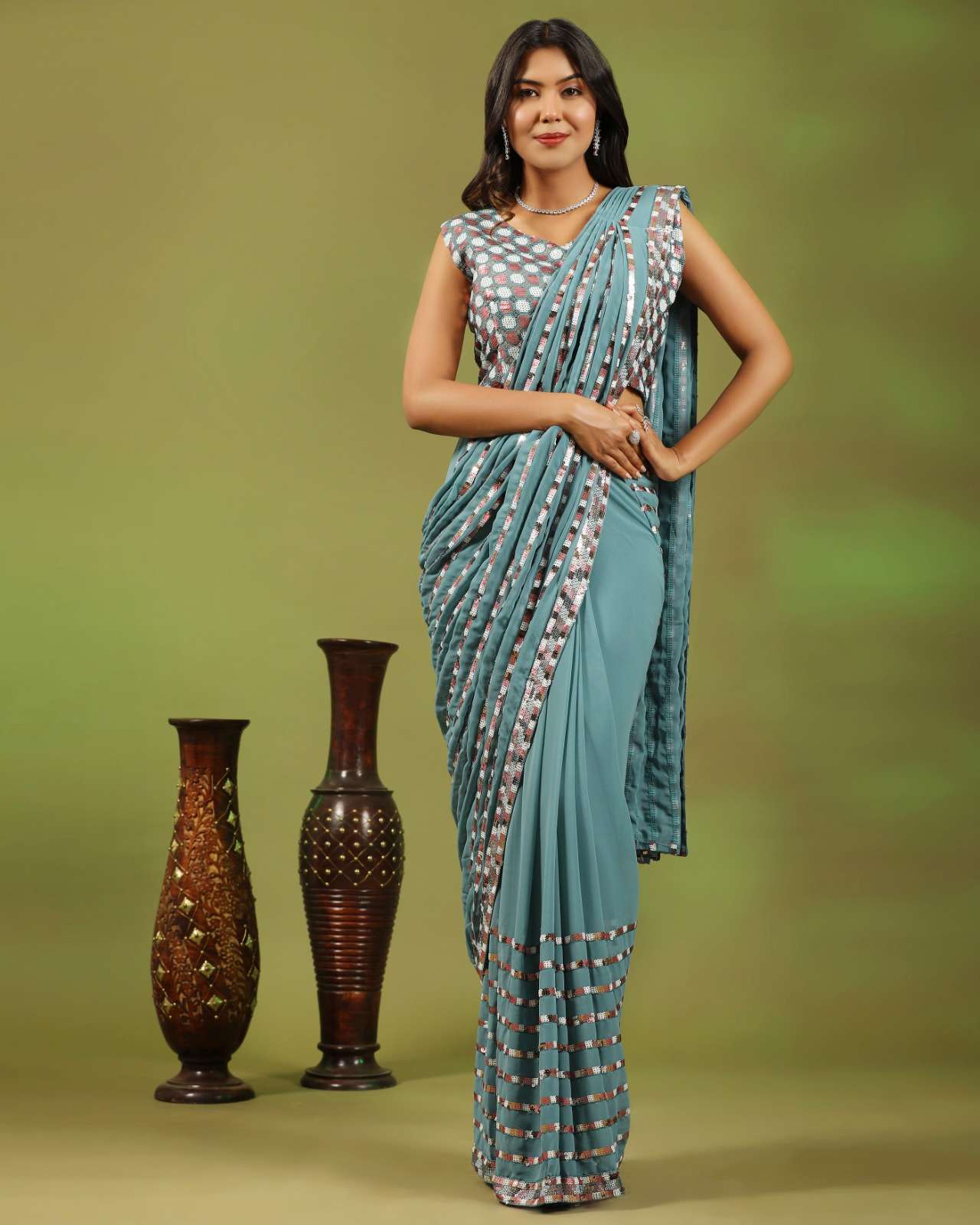 pr 248 ready to wear pure georgette multi sequin work sarees
