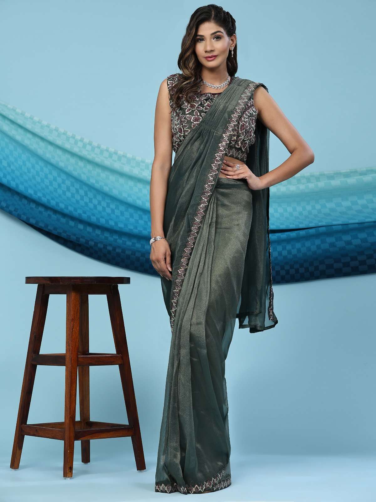 pr 250 party wear readymade fancy shimmer sarees with designer blouse