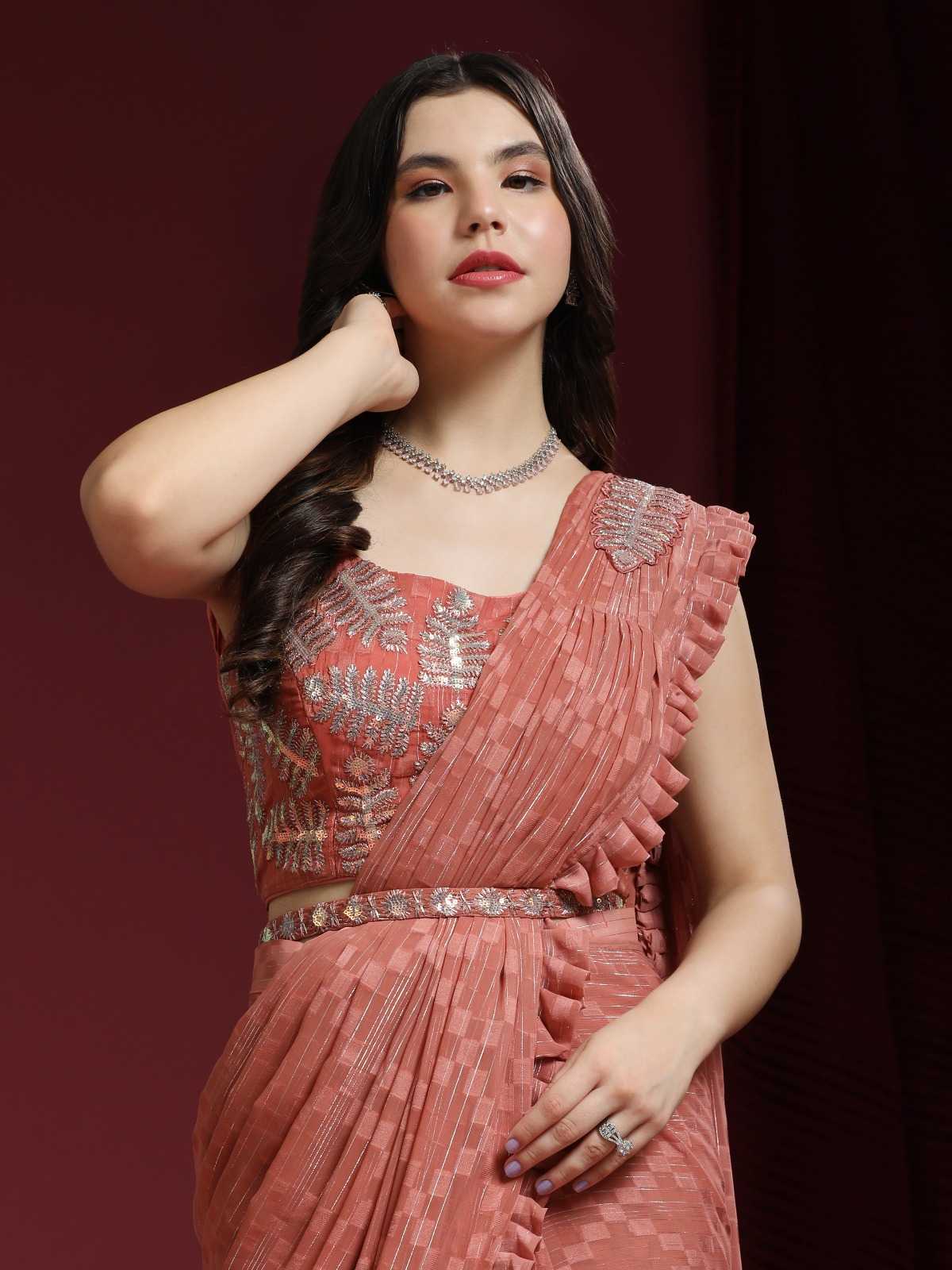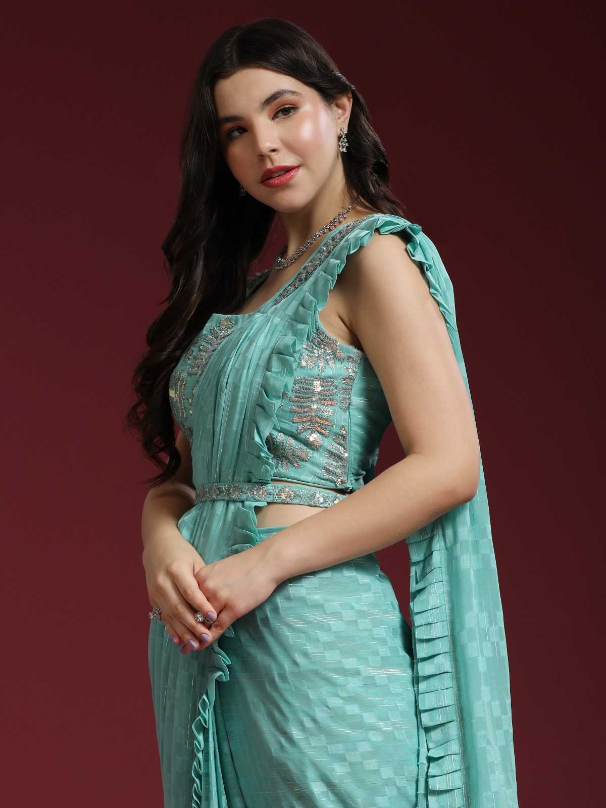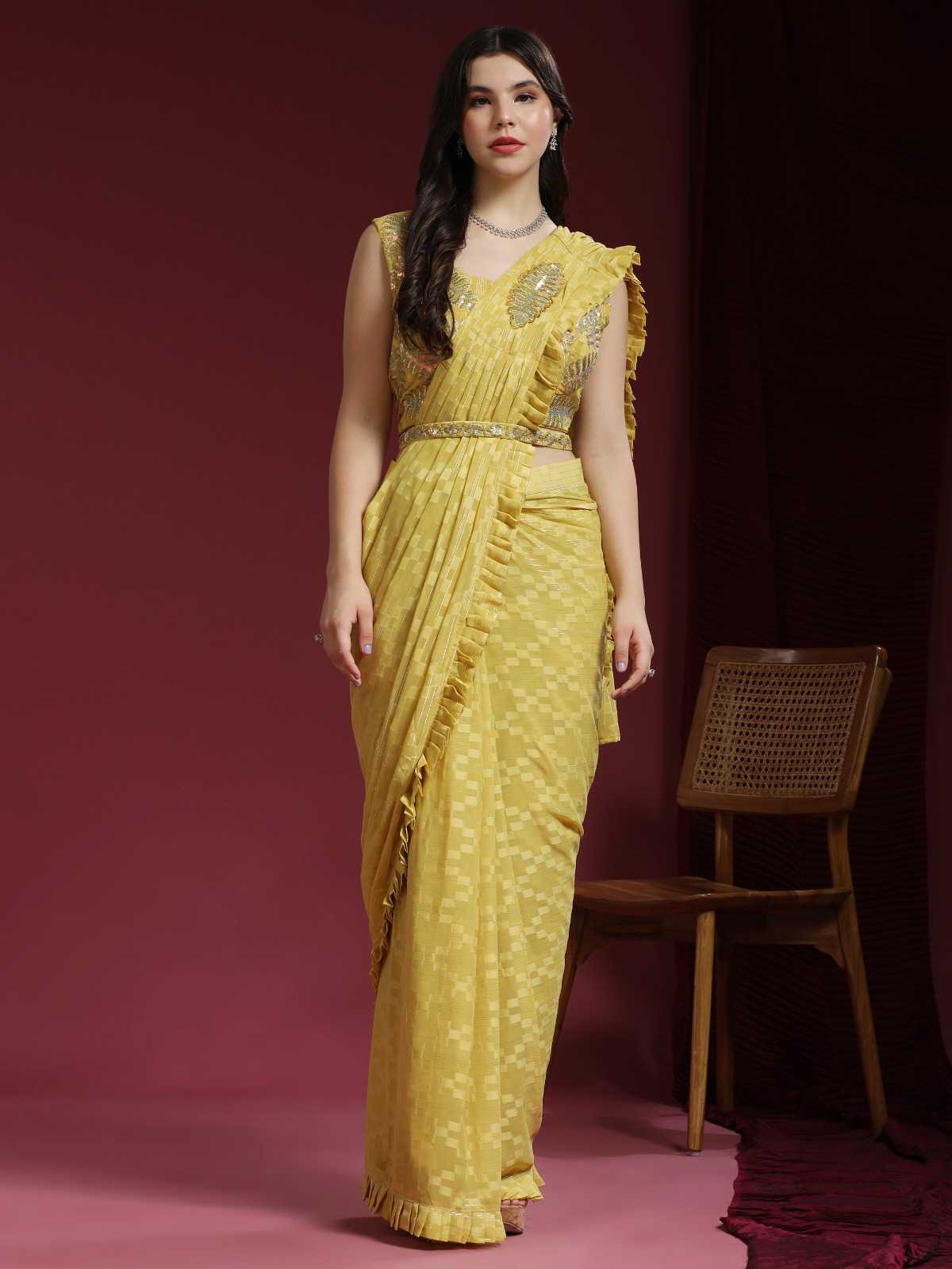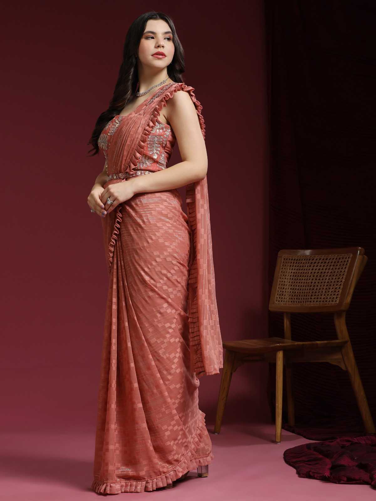 pr 275 party wear designer ready to wear frill shimmer sarees with sequin work blouse
