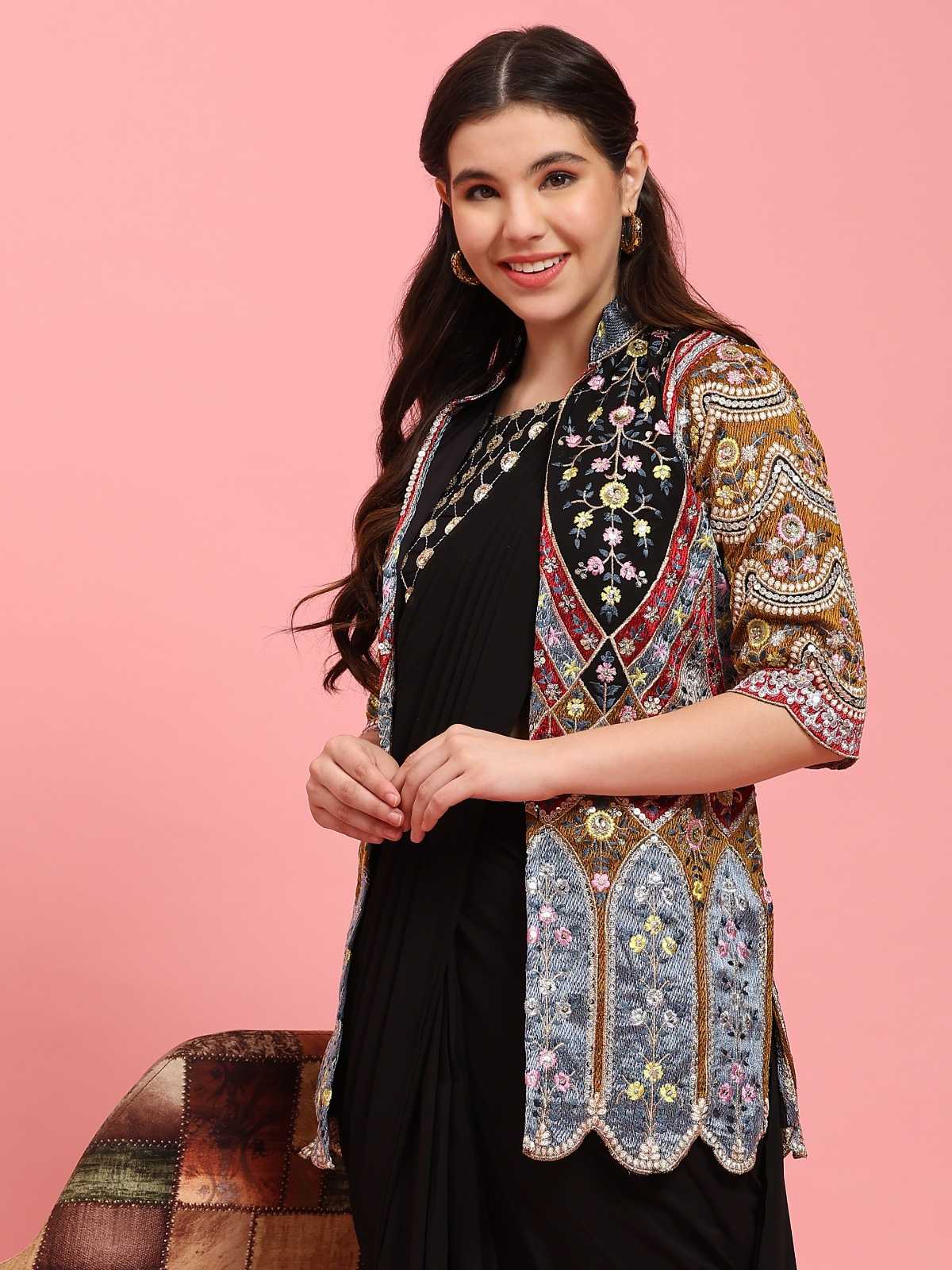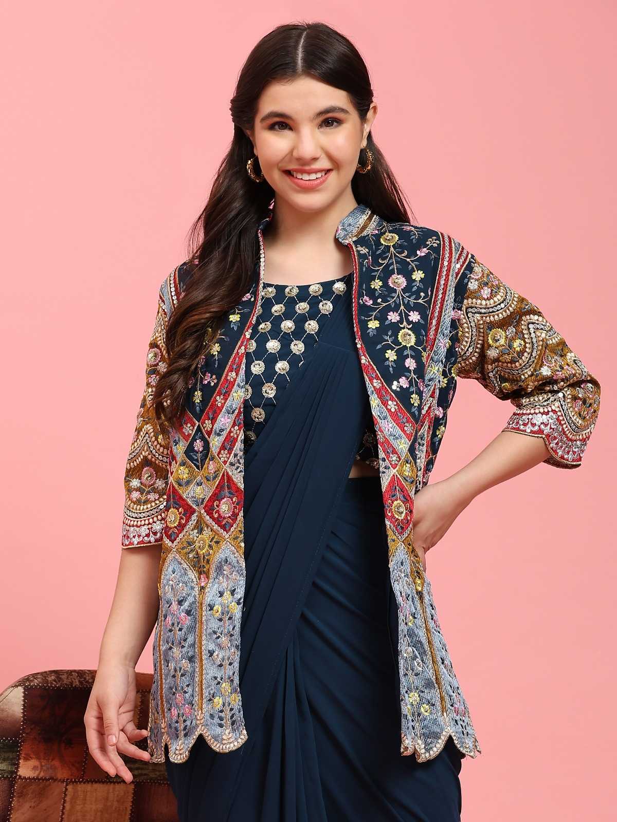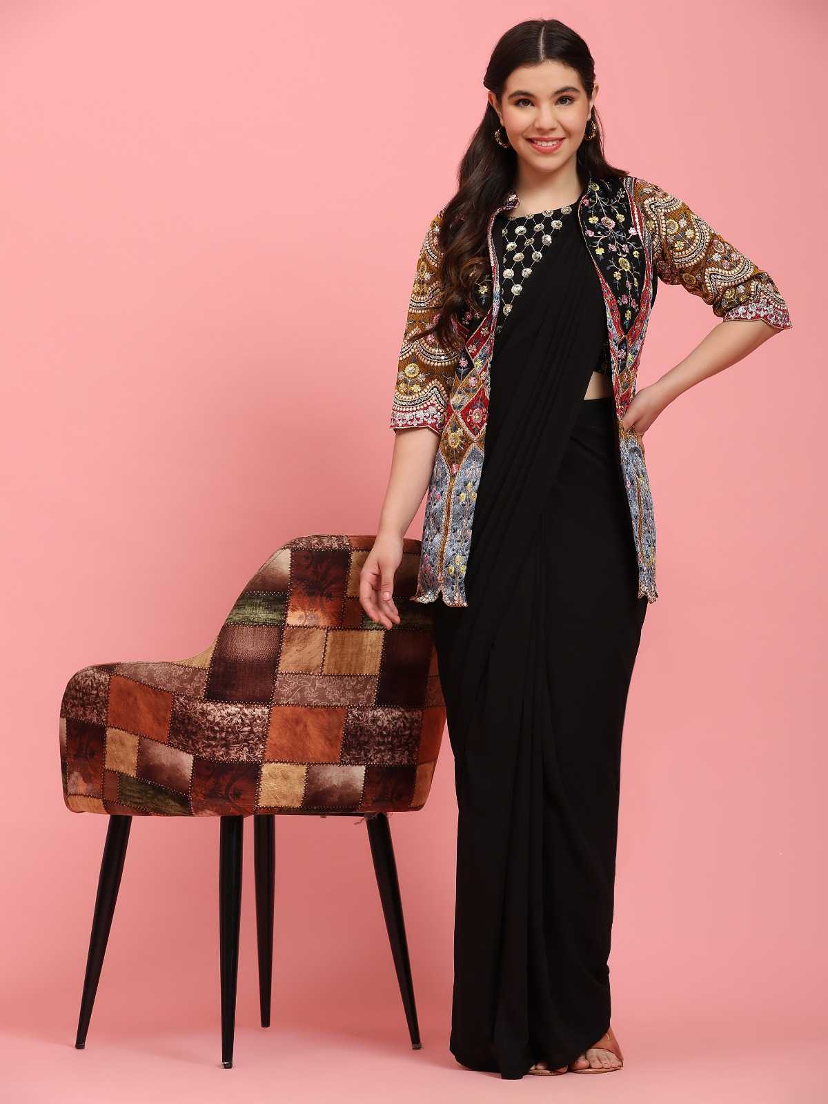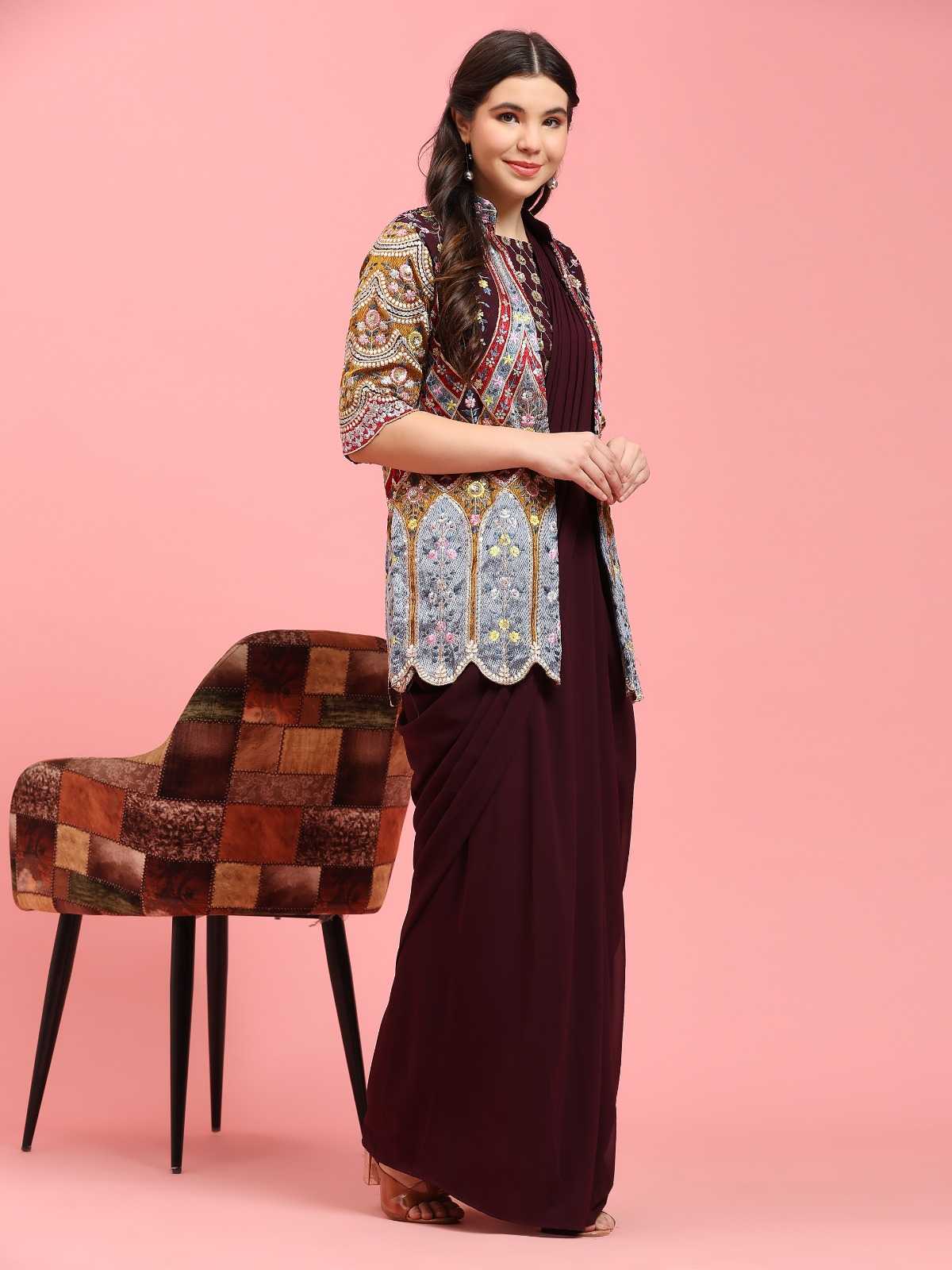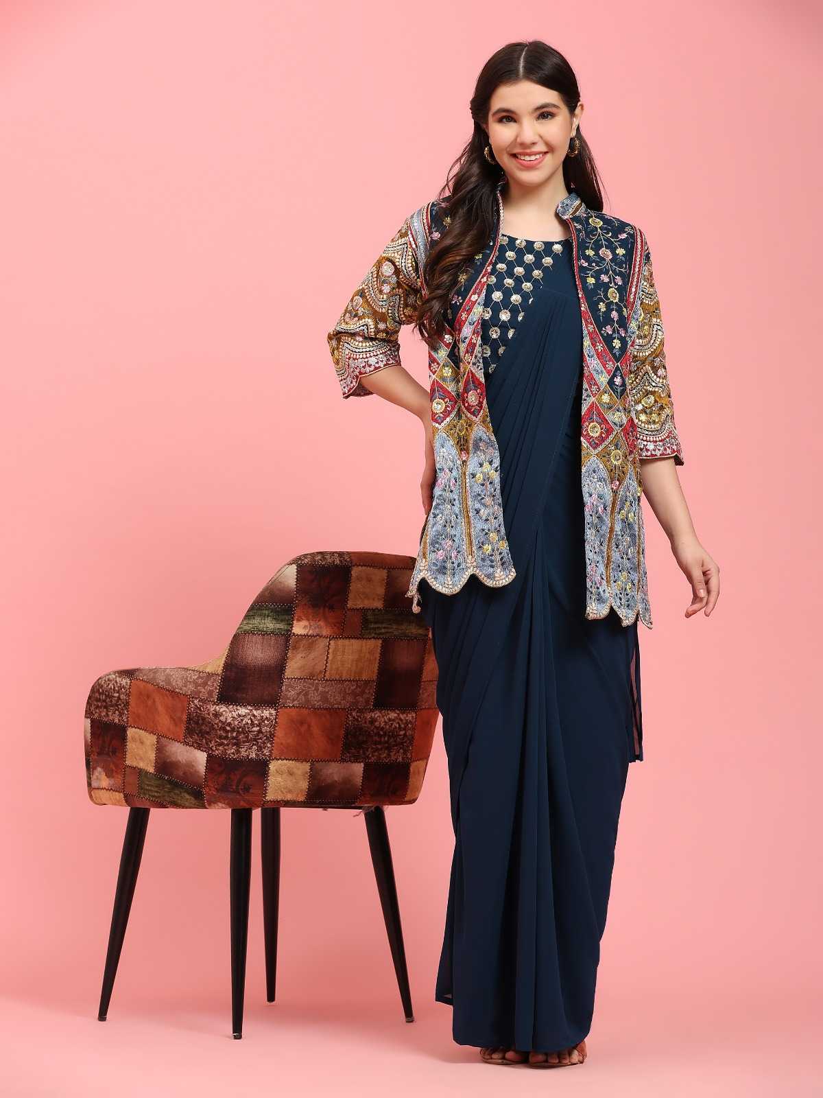 pr 290 ready to wear designer occasion wear saree embroidery work in blouse and shrug