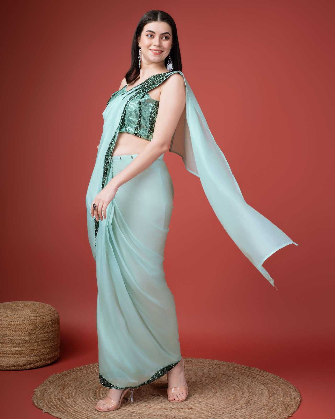 READY TO WEAR SAREE DESIGN NO 313 BLOUSE EXQUSITE SEQUIN WORK WITH FANCY DESIGN SAREE SILK SATIN FABRICE WITH SEQUIN BORDER SIZE 36(READY) 4 COLOURS AVAILABLE RATE 1995+5%(GST) |