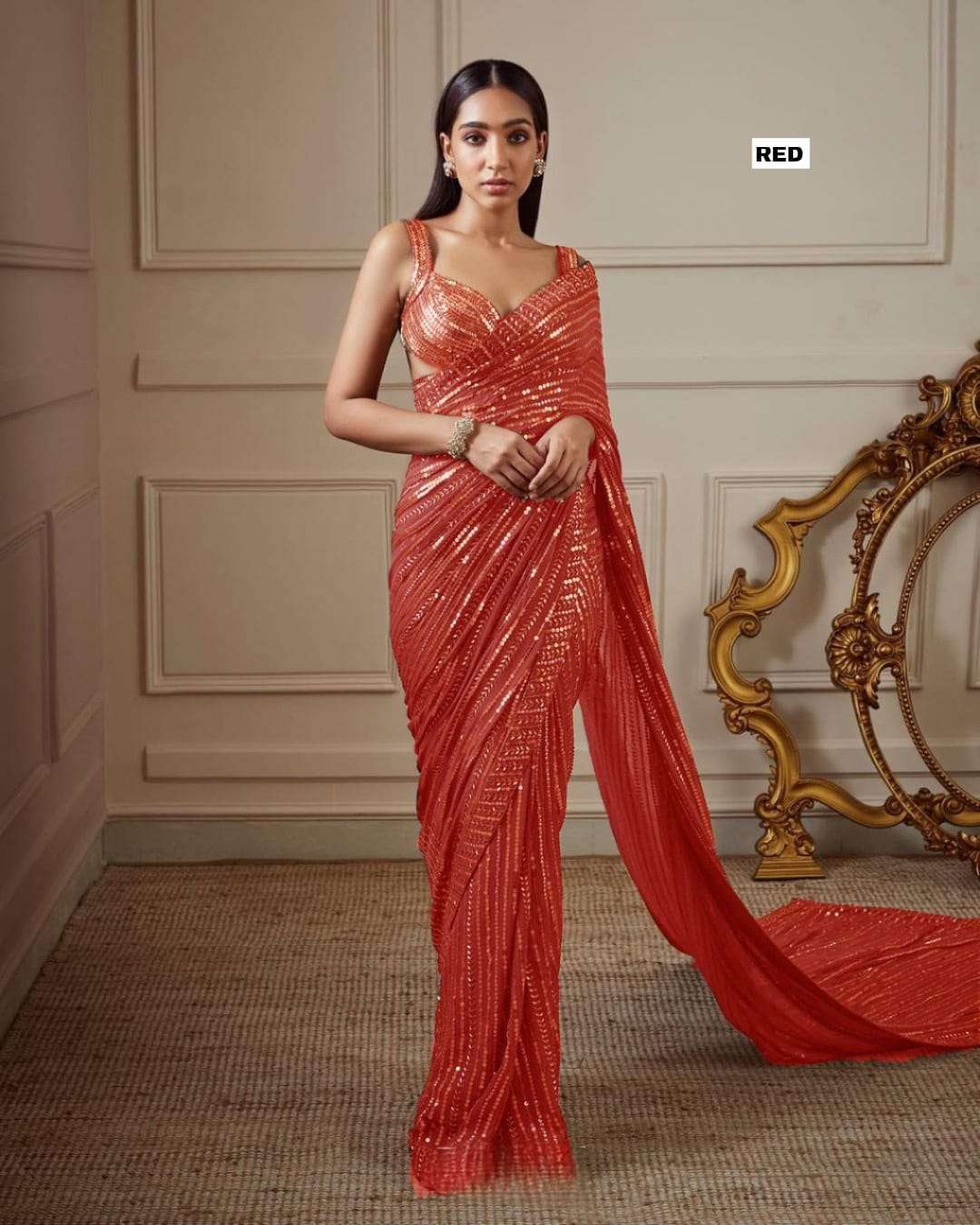 New BlockBuster 5MM Sequins Design Launching CODE-PR 3299 Fabric Details Full Saree Of Georgette With Heavy 5MM Sequence Embrodery Work Embrodery Details BLOUSE OF GEORGETTE WITH HEAVY EMBROIDERY BOTH FRONT & BACK SIDE WORK Beautiful EMBRODERY LACE BORDER & Piping Done On Border Premium Quality |