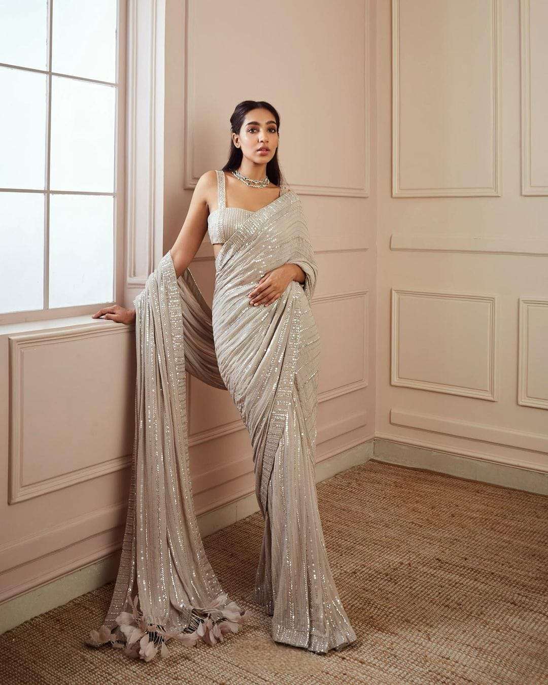 New BlockBuster 5MM Sequins Design Launching CODE-PR 3311 Fabric Details Full Saree Of Georgette With Heavy 5MM Sequence Embrodery Work Embrodery Details BLOUSE OF GEORGETTE WITH HEAVY EMBROIDERY SEQUINS BOTH FRONT & BACK SIDE WORK Beautiful EMBRODERY LACE BORDER & Piping Done On Border BEAUTIFUL FEATHER ATTACHED ON PALLU Premium Quality |
