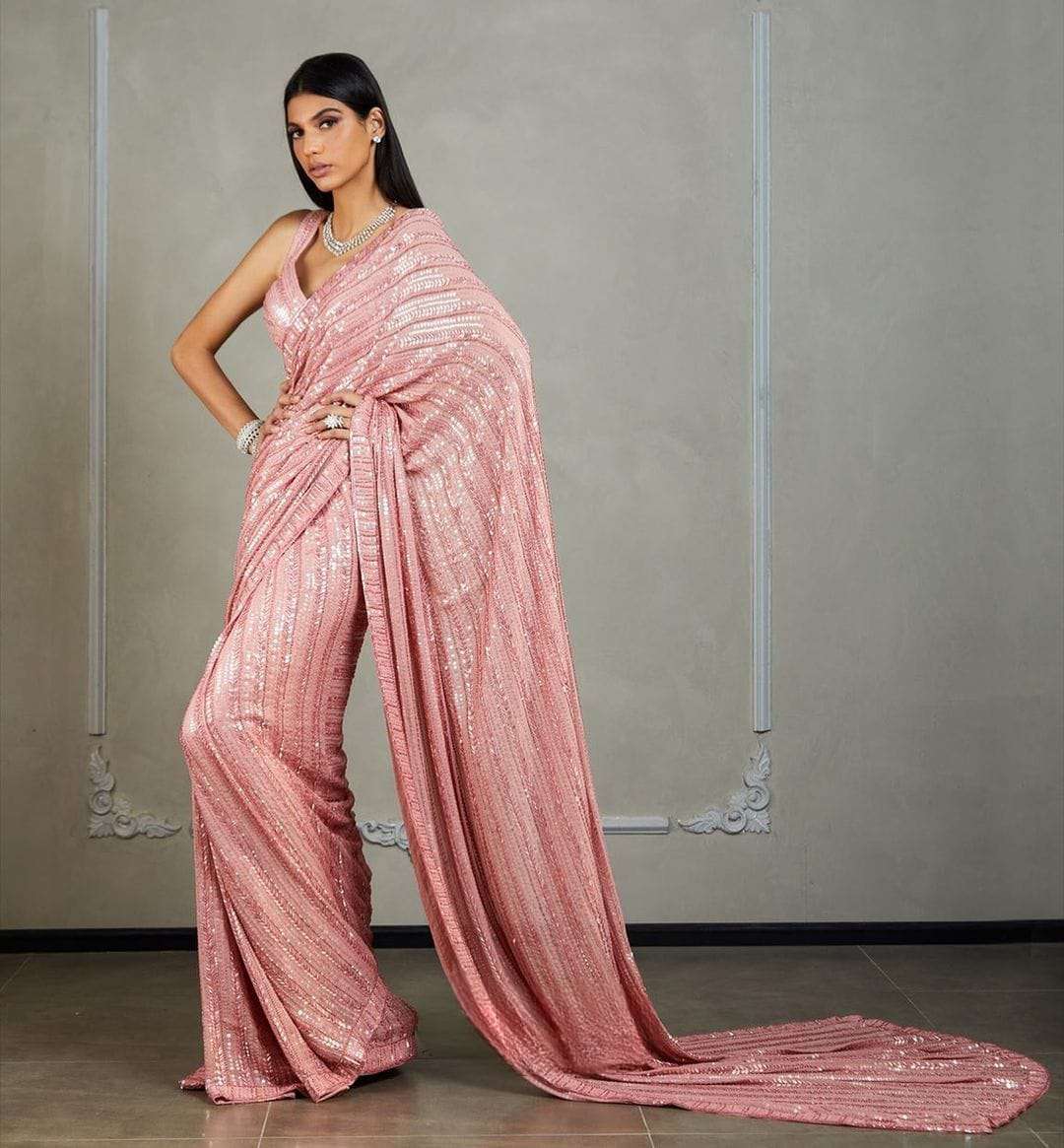 pr 3330 design Full Saree Of Georgette With Heavy 5MM Sequence Embrodery Work